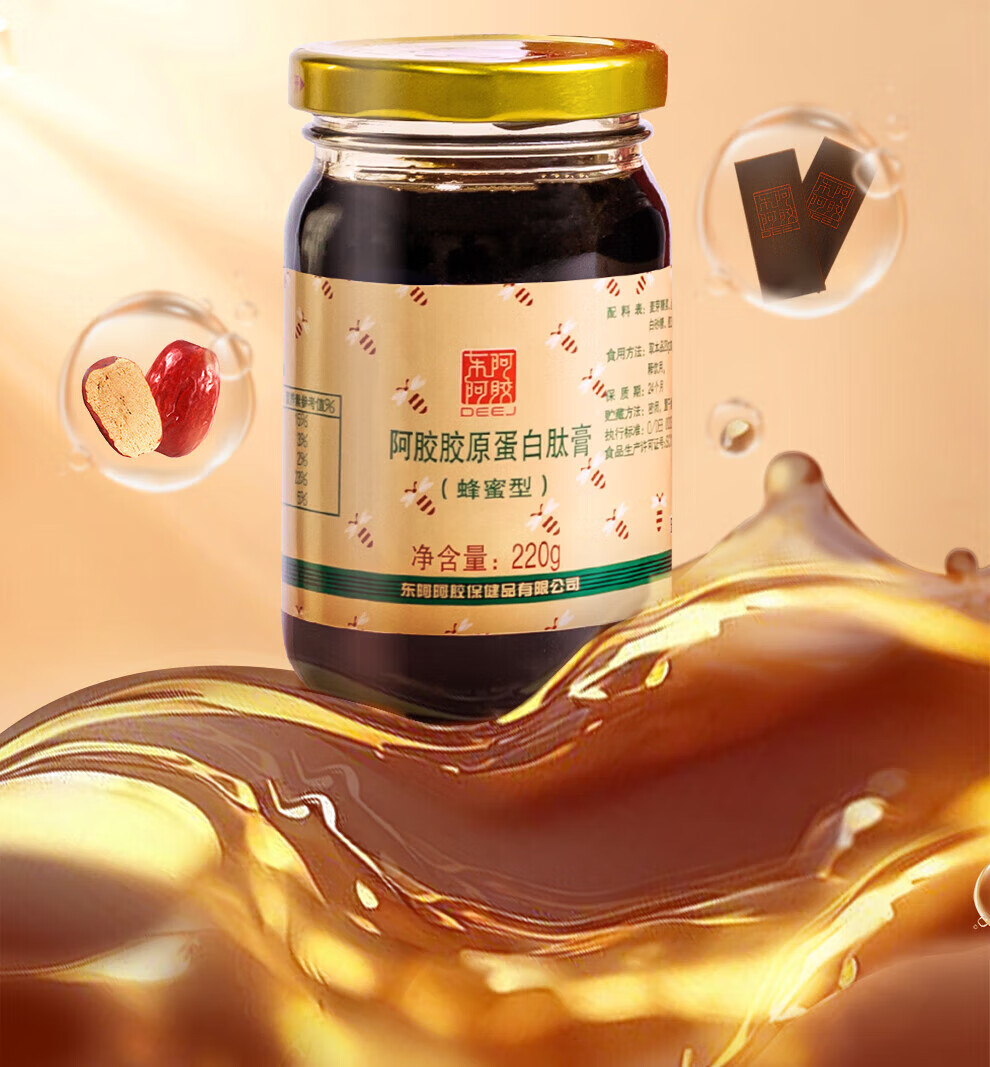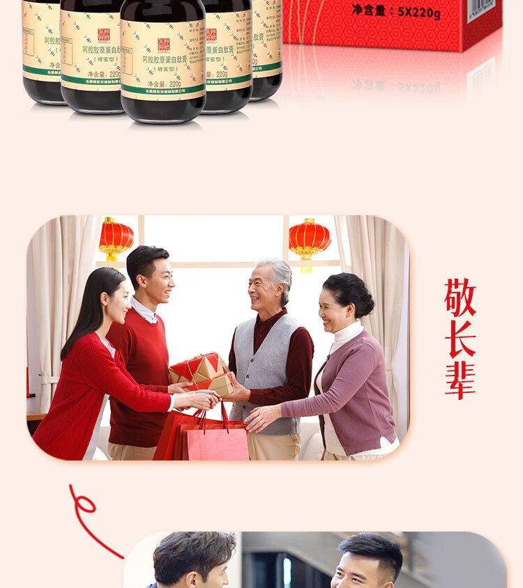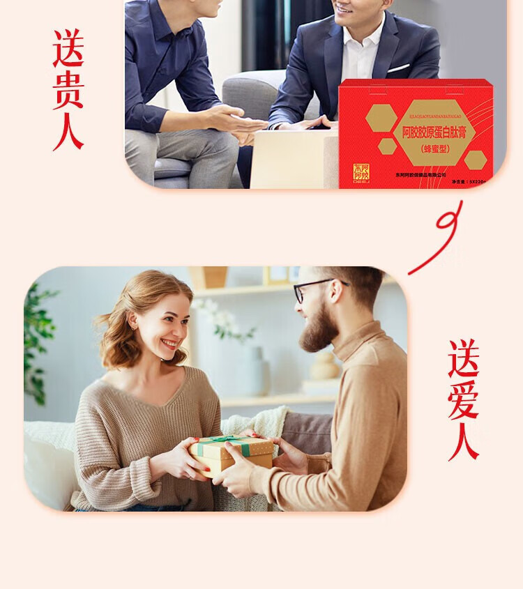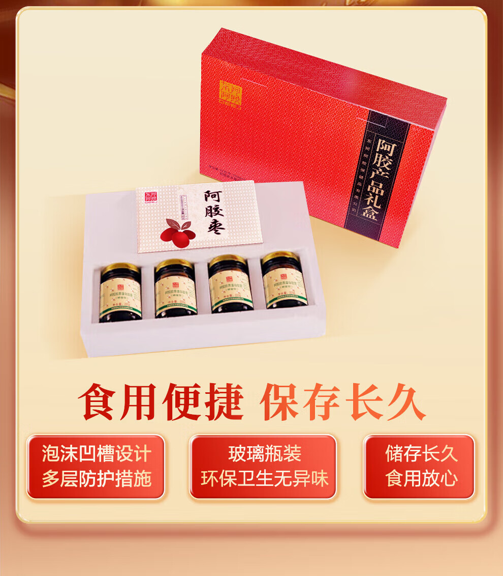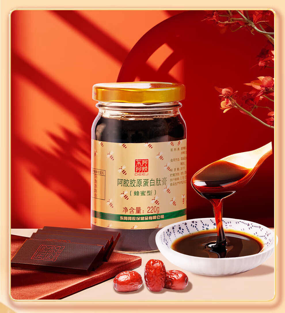 东阿阿胶 官方授权 新年礼物 过年礼盒 年货节 送女生 阿胶胶原肽膏220g*4+阿胶金丝枣100g*2
