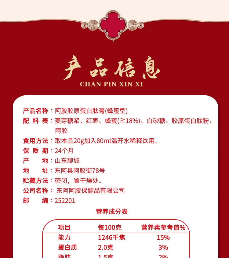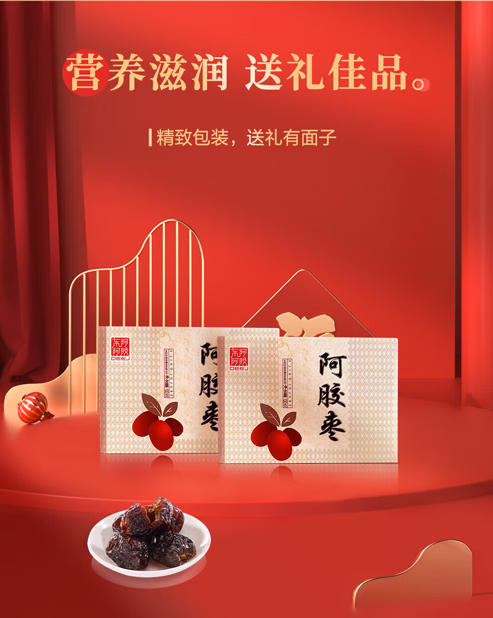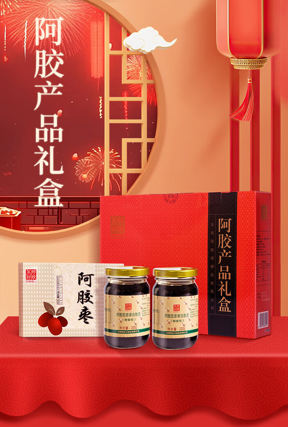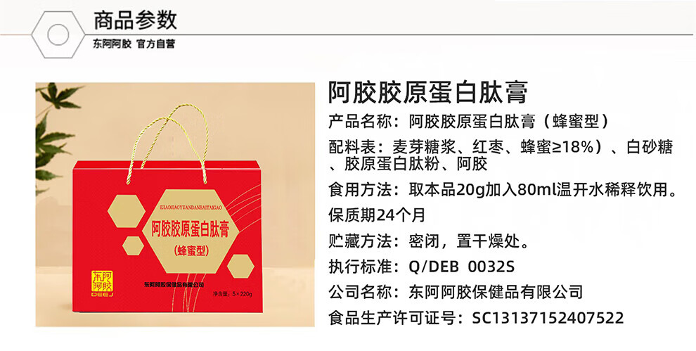 东阿阿胶 官方授权 新年礼物 过年礼盒 年货节 送女生 阿胶胶原肽膏220g*4+阿胶金丝枣100g*2