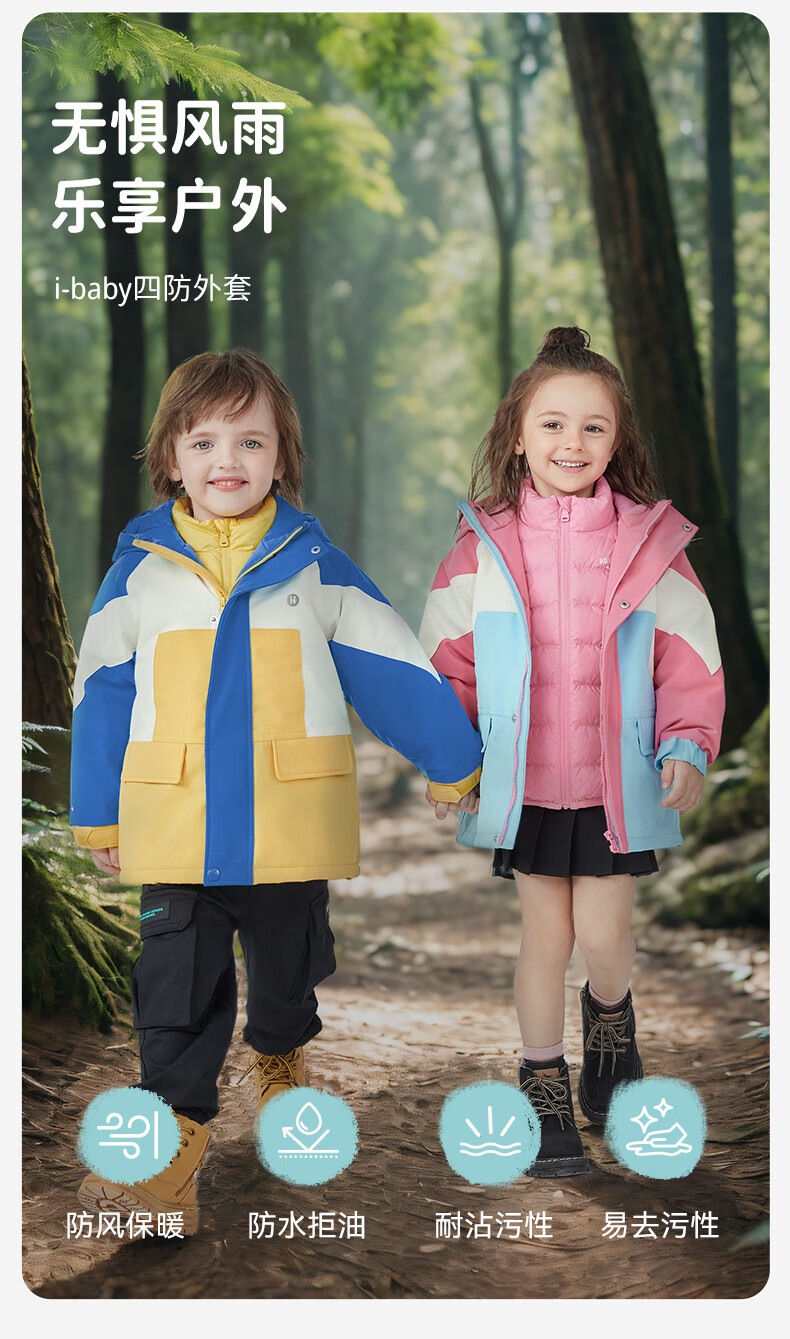 ibaby儿童外套男女宝宝防水防风外套中大童秋冬童装上衣连帽外出服 花样年华 120 码