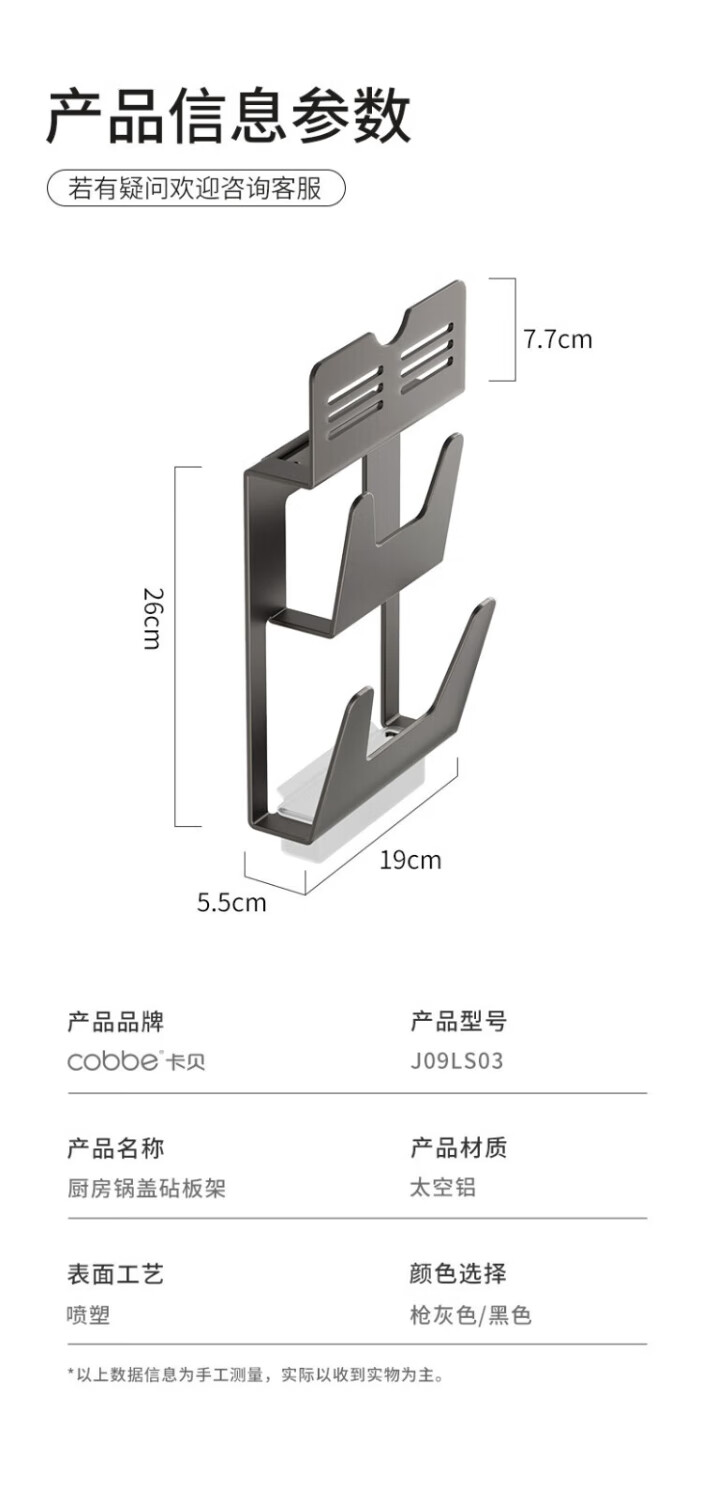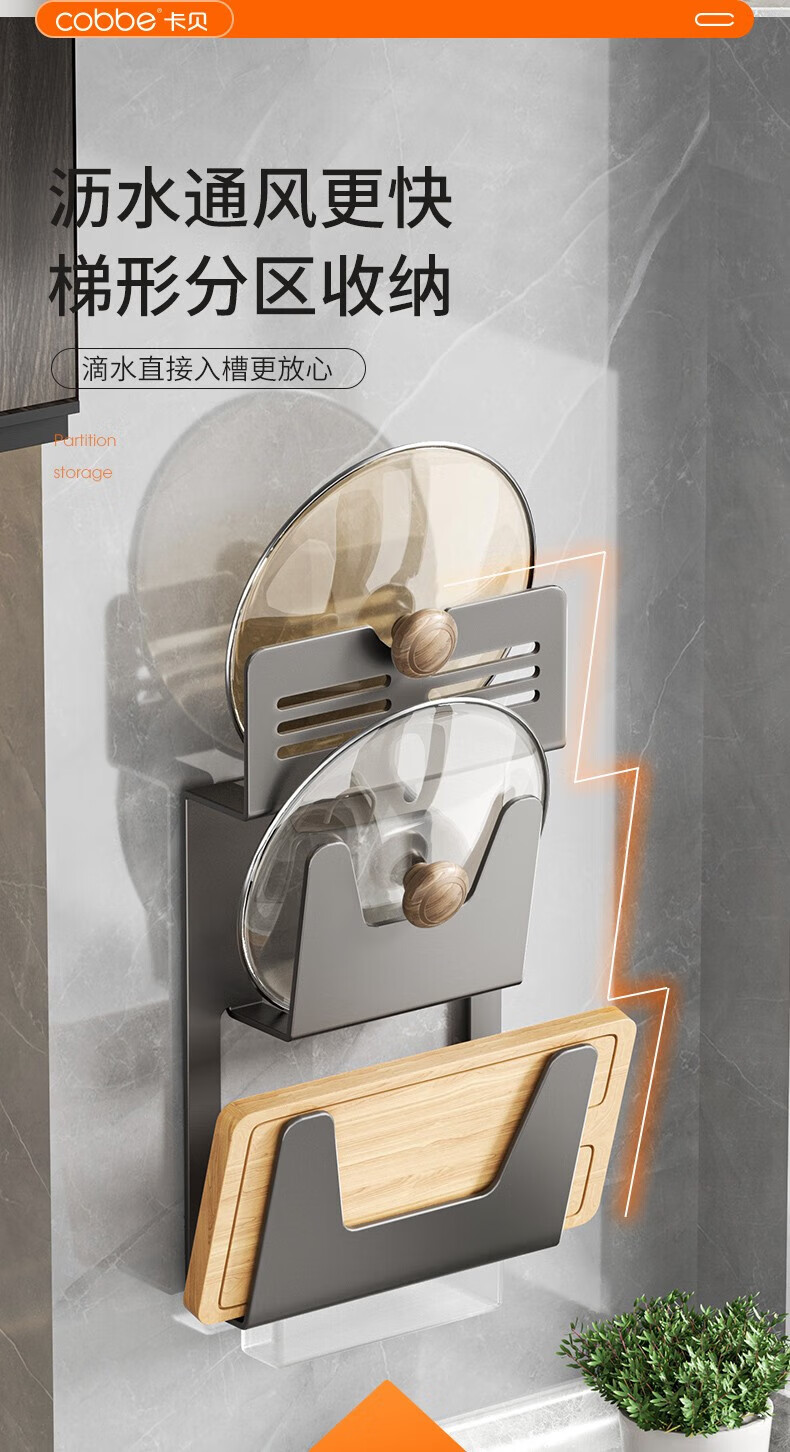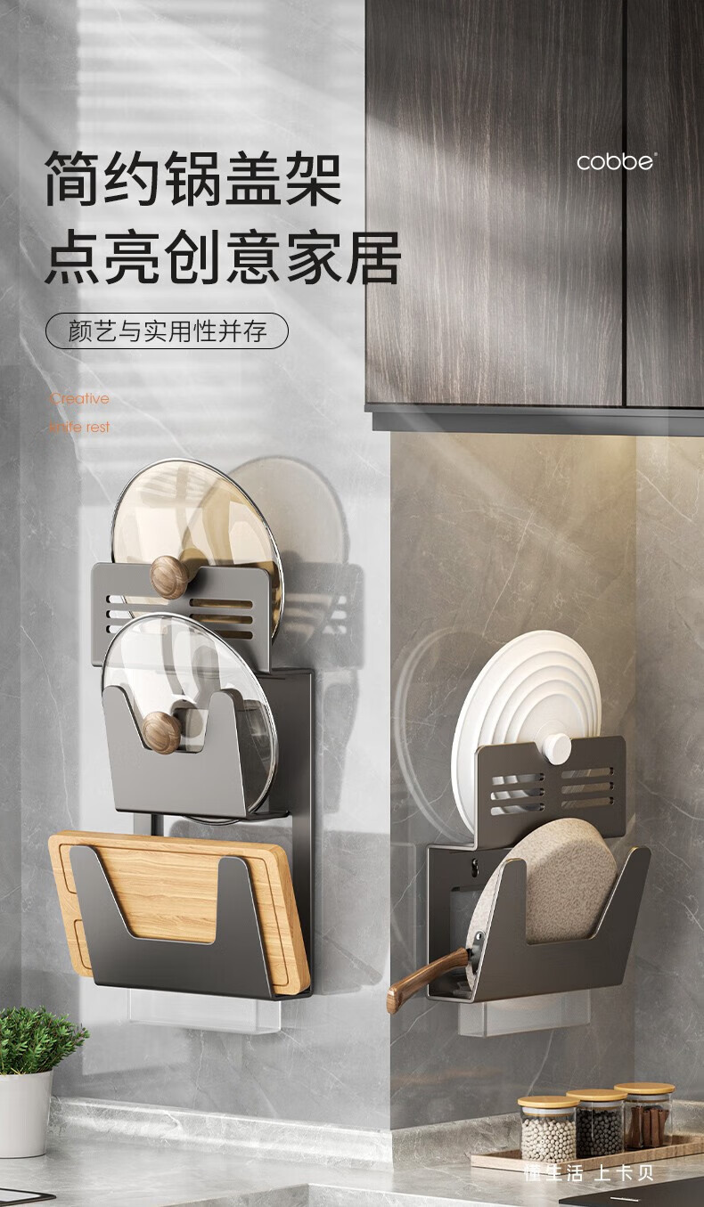 卡贝(cobbe)厨房置物架锅盖架壁挂式免打孔案板架可拆卸收纳厨房砧板菜板架 双菜板【枪灰不锈钢】