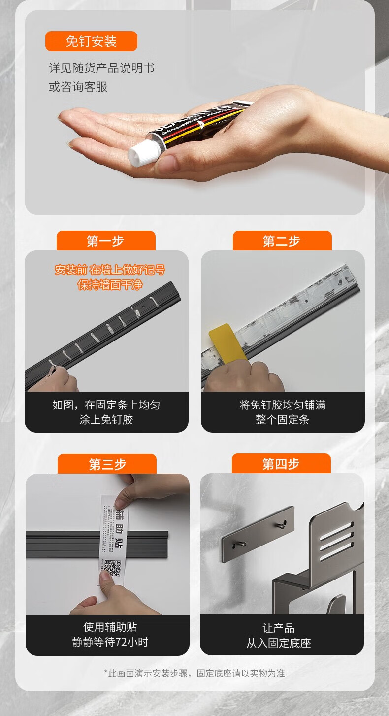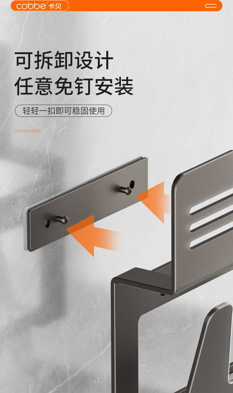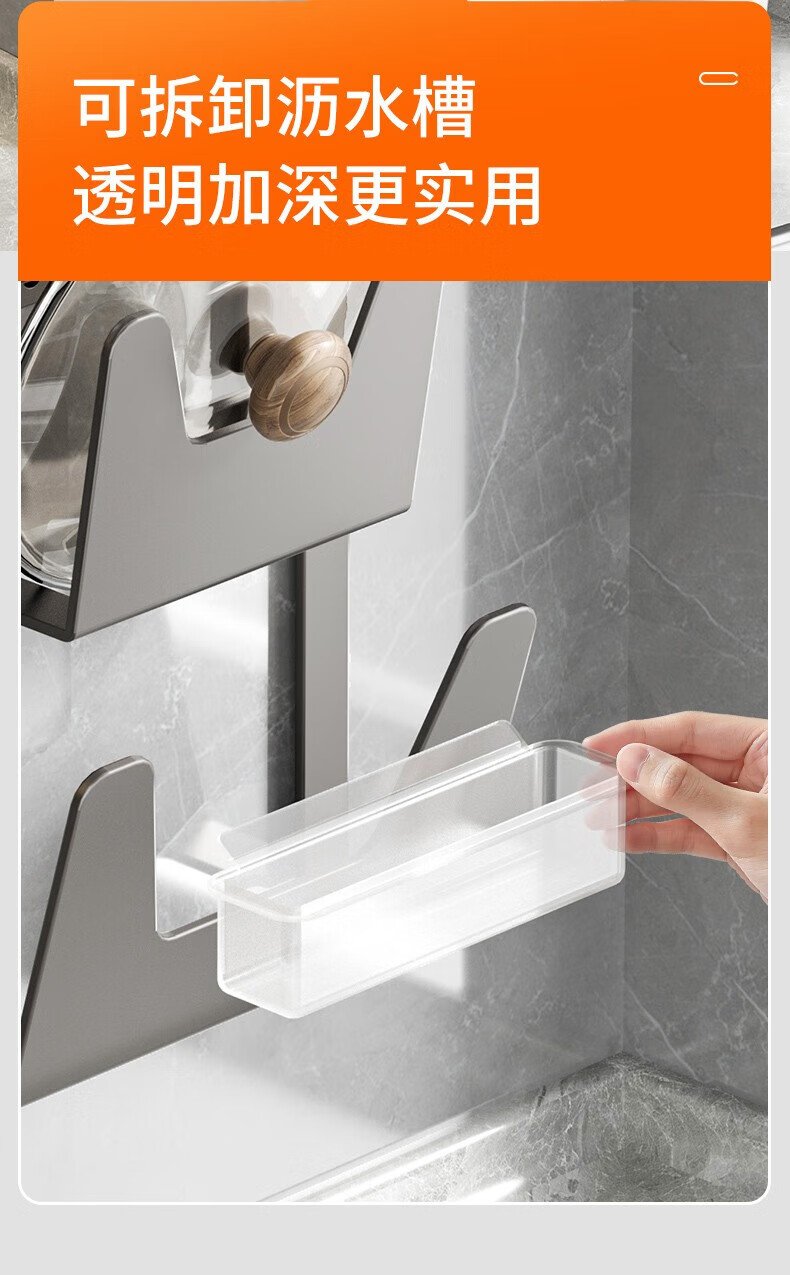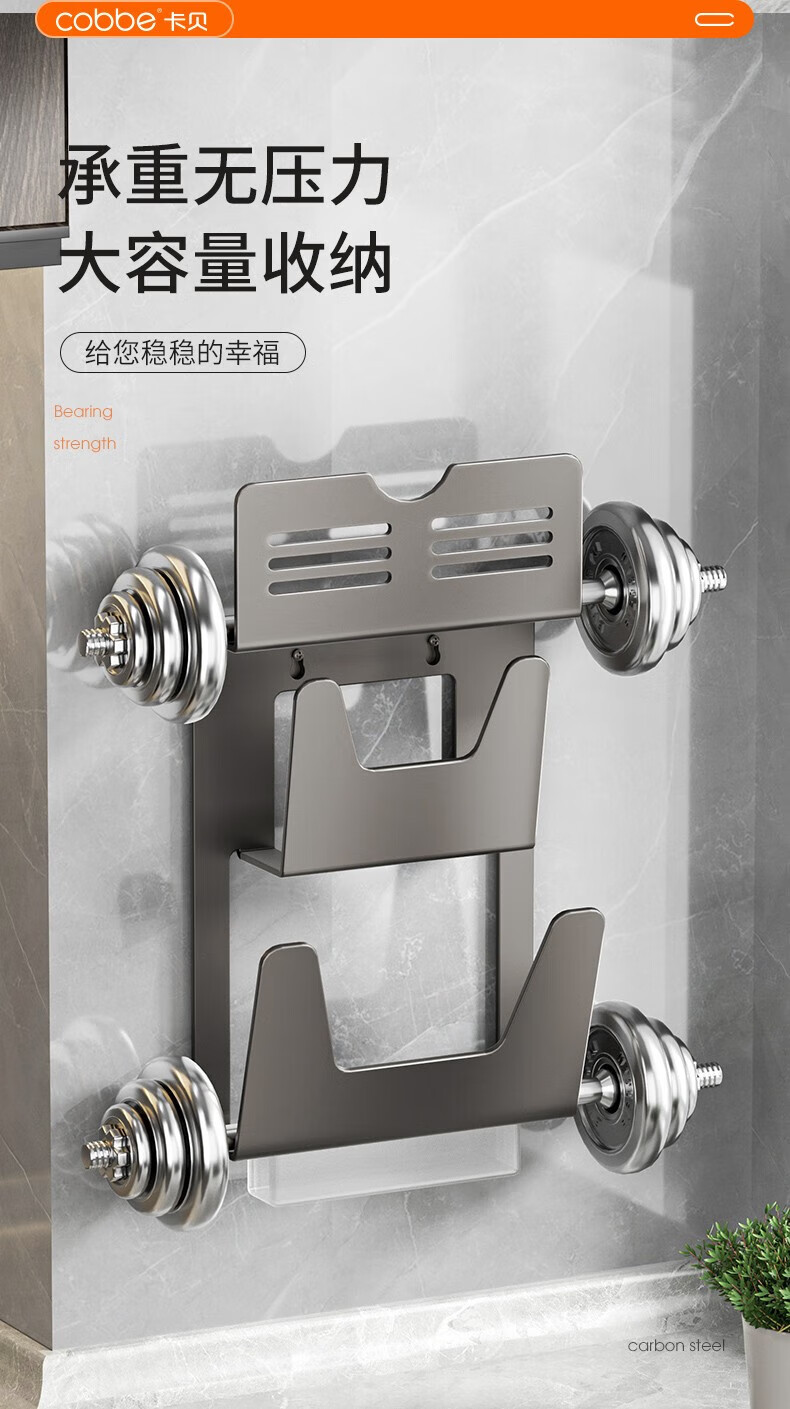卡贝(cobbe)厨房置物架锅盖架壁挂式免打孔案板架可拆卸收纳厨房砧板菜板架 双菜板【枪灰不锈钢】