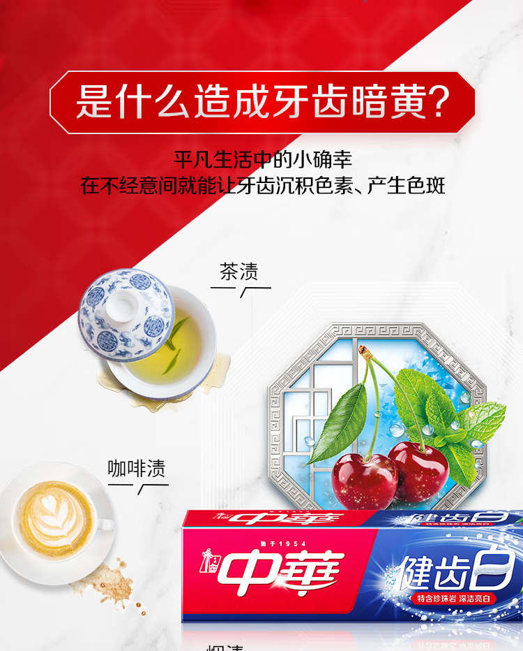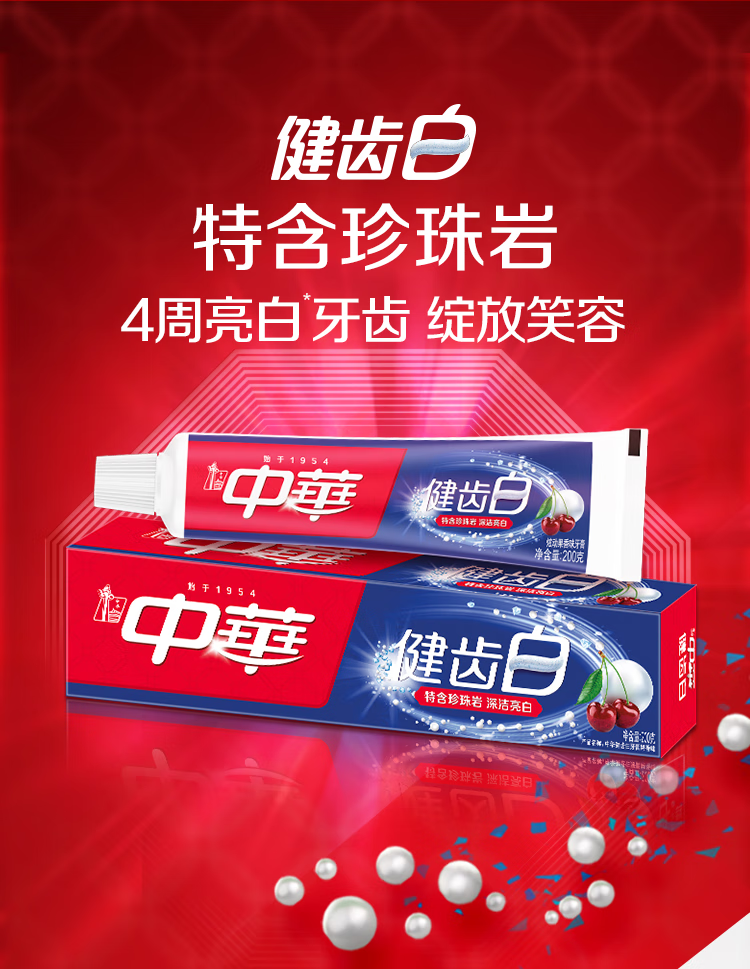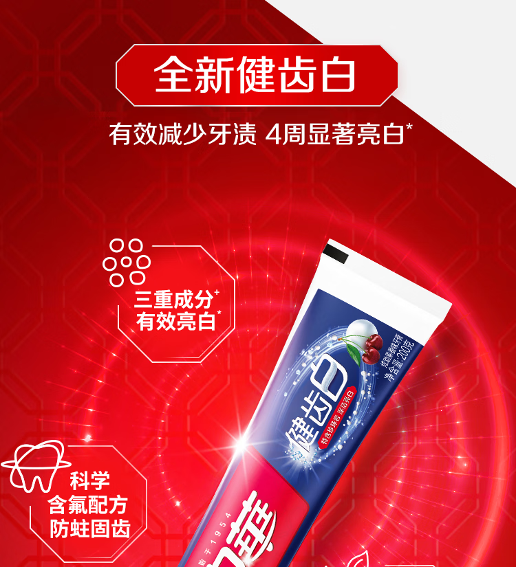 中华健齿白小苏打牙膏亮白去黄清新口气套装家庭装果香味200g*3支