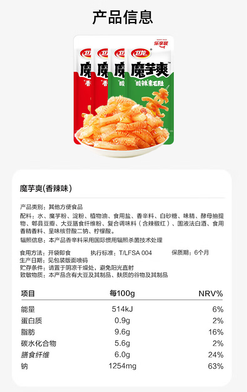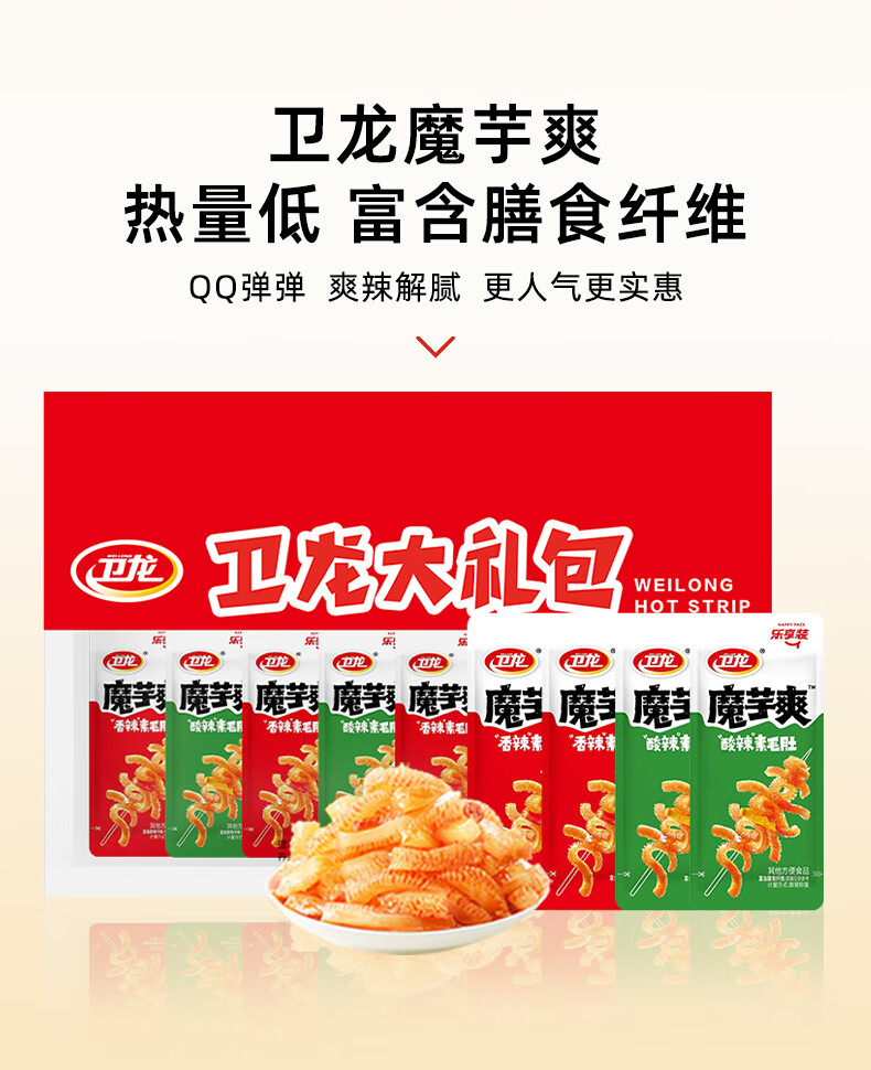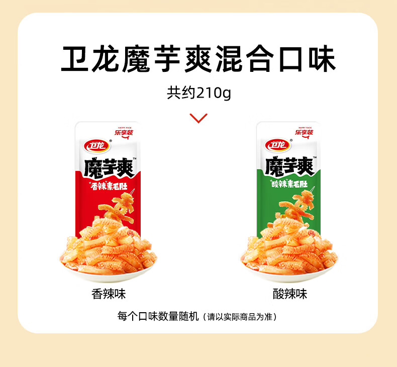 卫龙魔芋爽辣条休闲小零食混合装素毛肚魔芋爽大礼包210g便携约12包