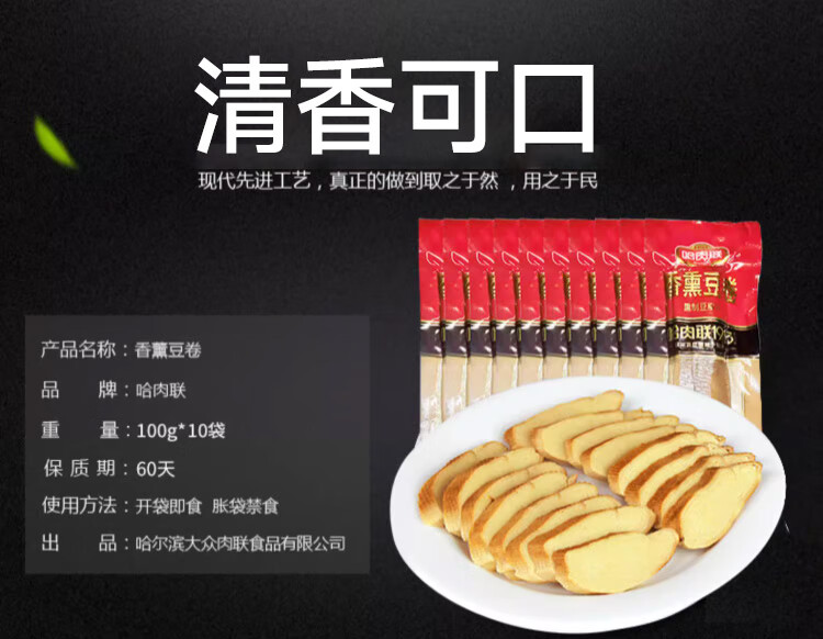 哈肉联香薰豆腐卷 东北特产 五香熏豆干卷 开袋即食 香熏豆卷100g*10袋