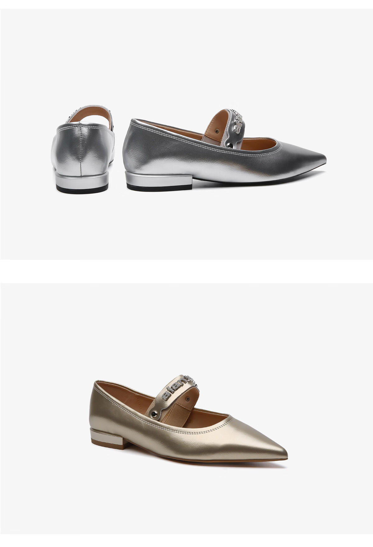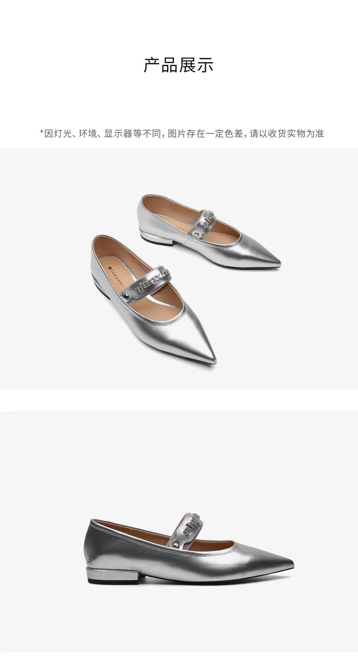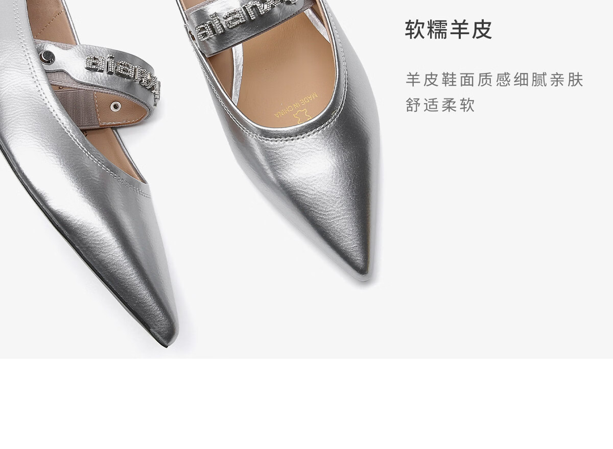 月芽儿2025年冬季季新款尖头玛丽珍鞋女浅口一脚蹬优雅单鞋金属色 金色08S 34