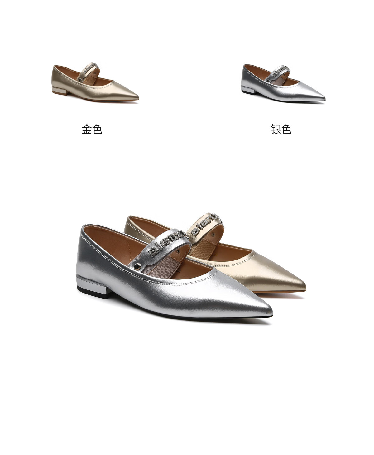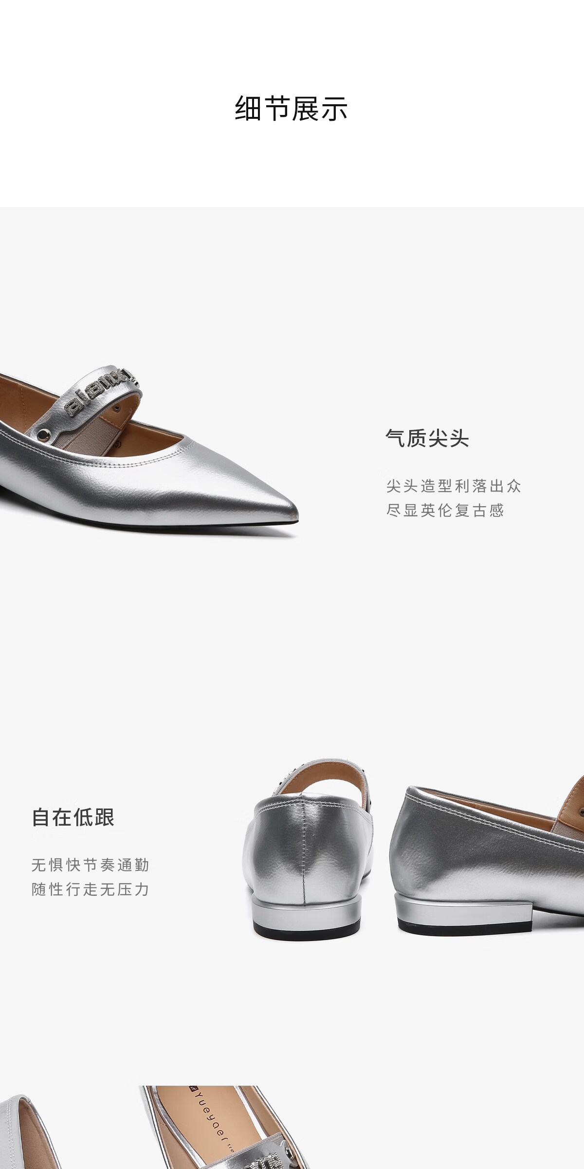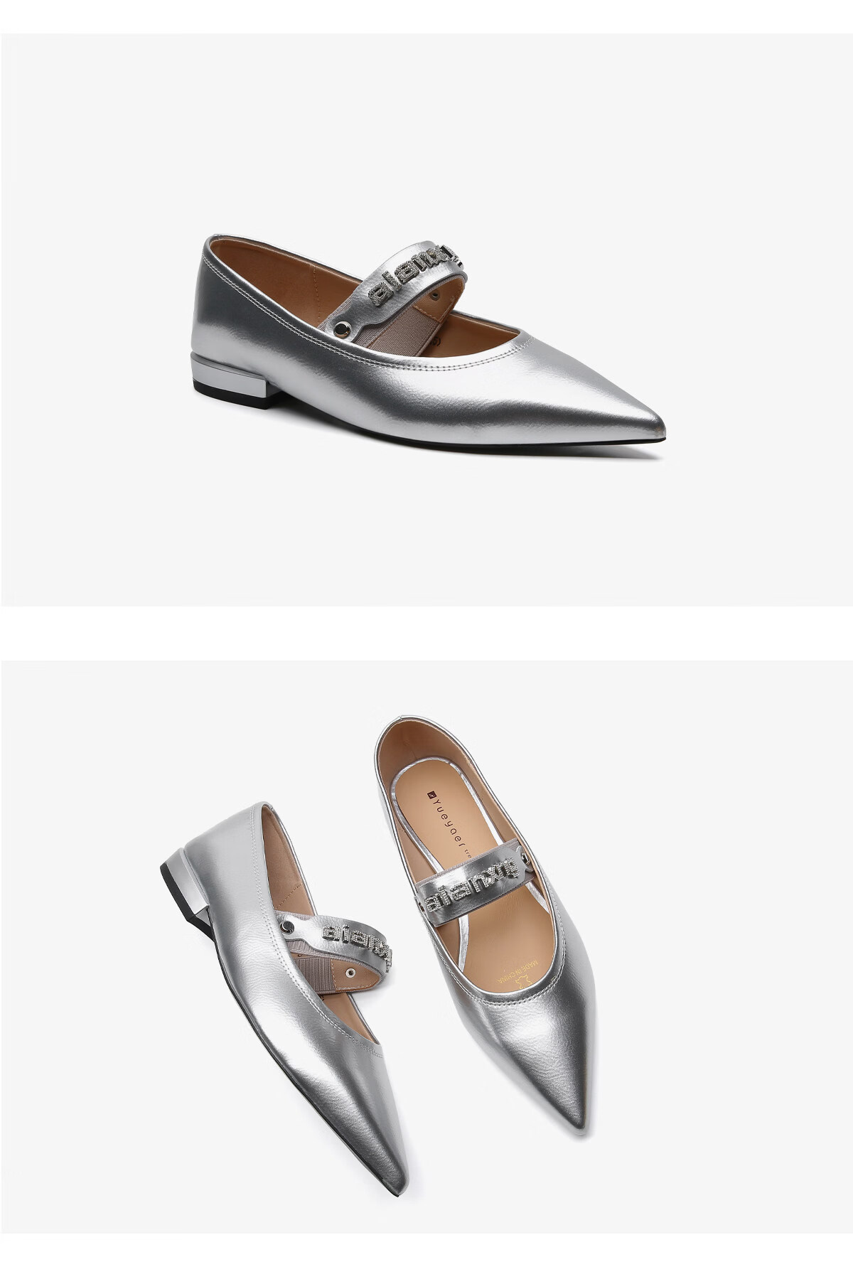 月芽儿2025年冬季季新款尖头玛丽珍鞋女浅口一脚蹬优雅单鞋金属色 金色08S 34