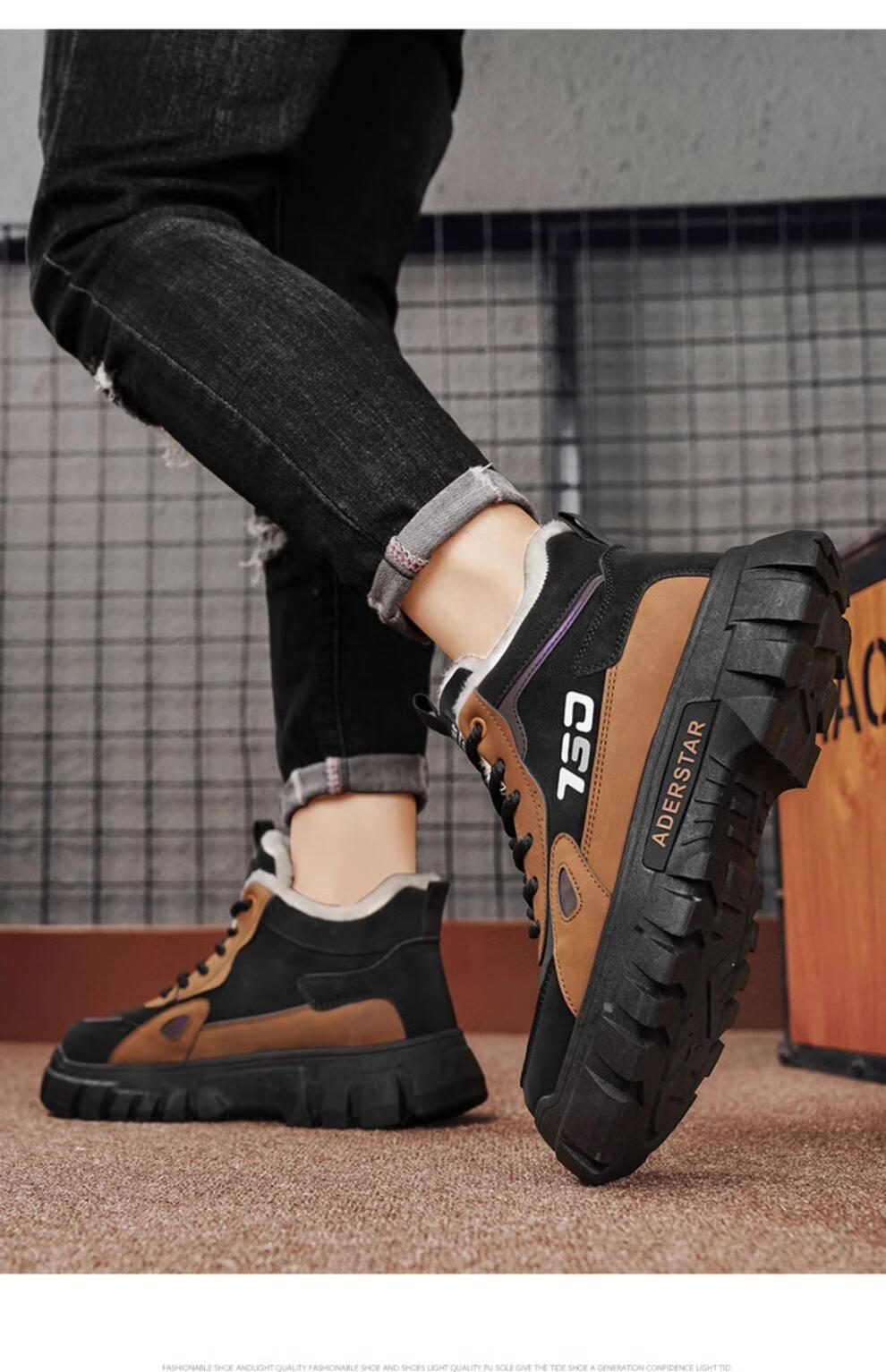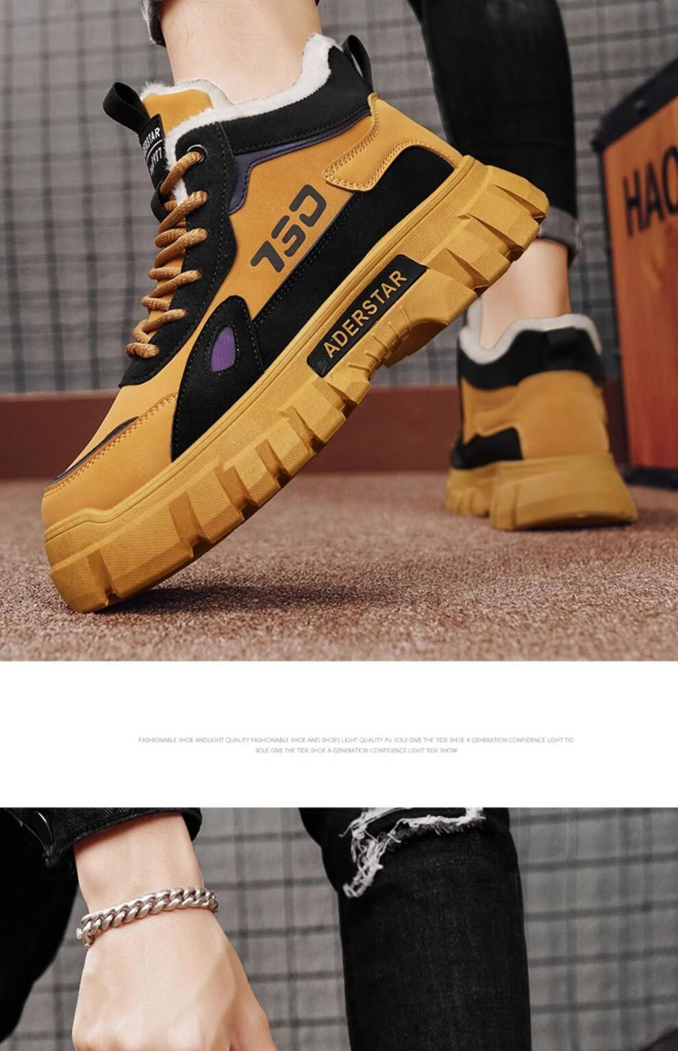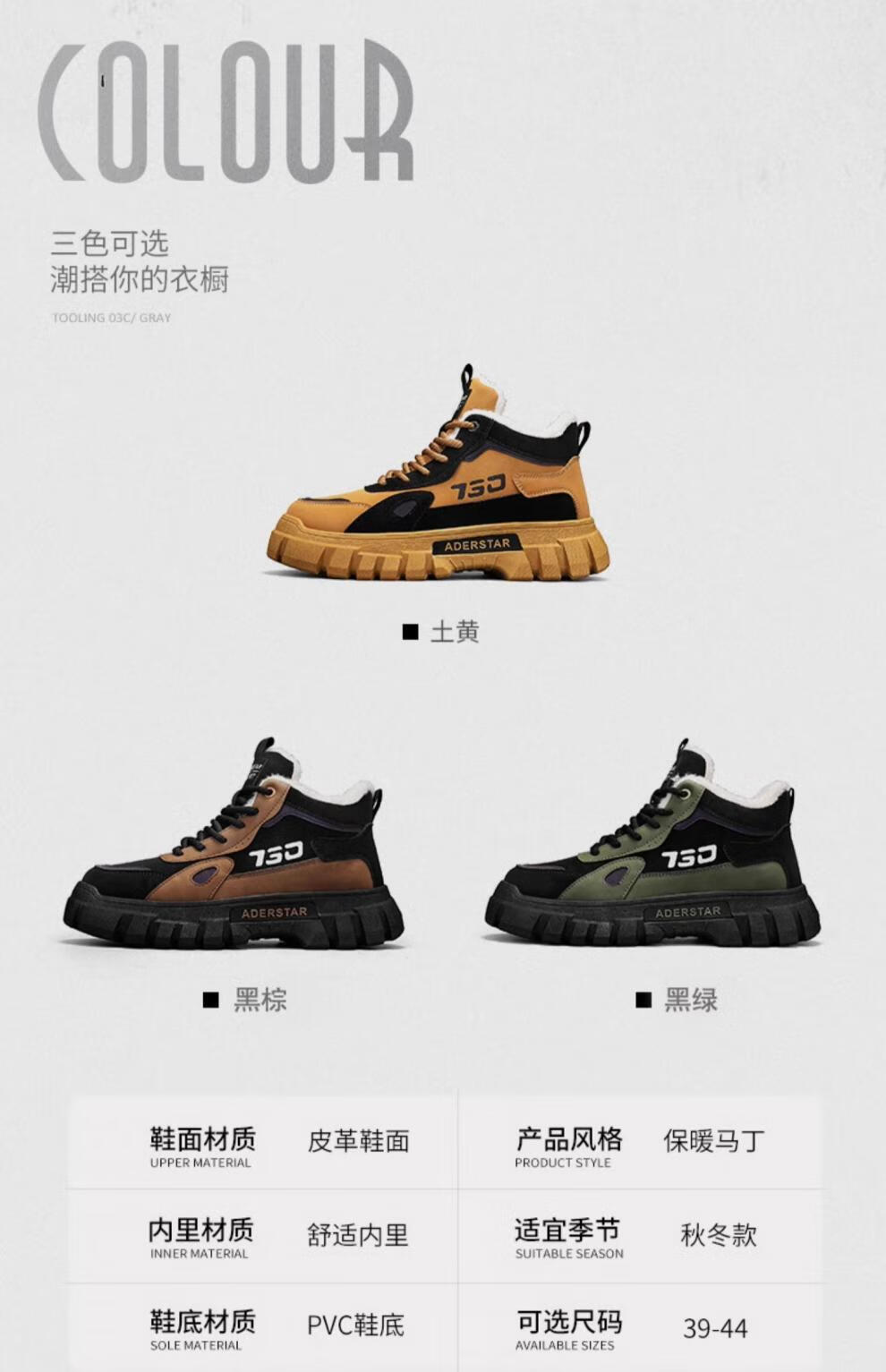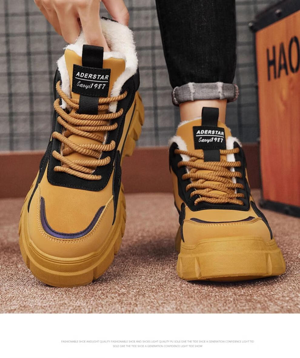 稻草人(MEXICAN)高帮男鞋冬季加绒棉鞋户外登山防水防滑工作劳保鞋运动马丁靴潮流 土黄(升级款) 42 标准运动码