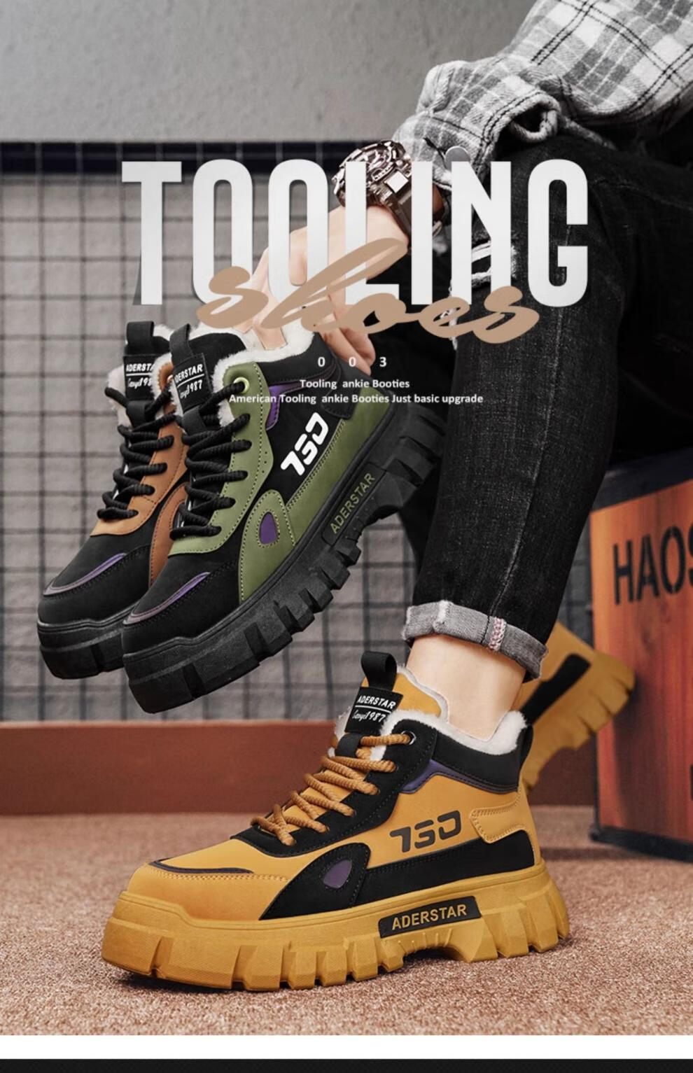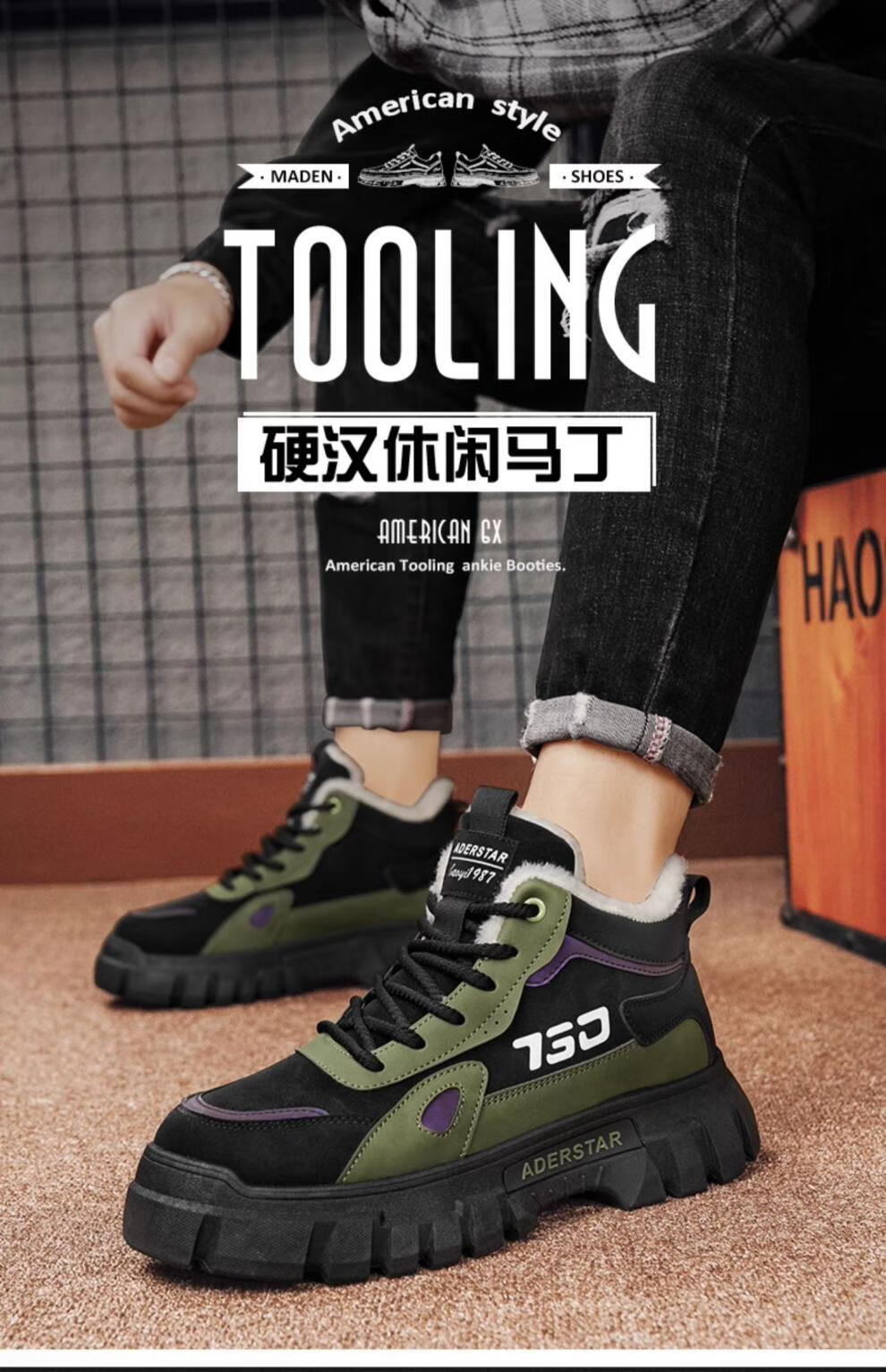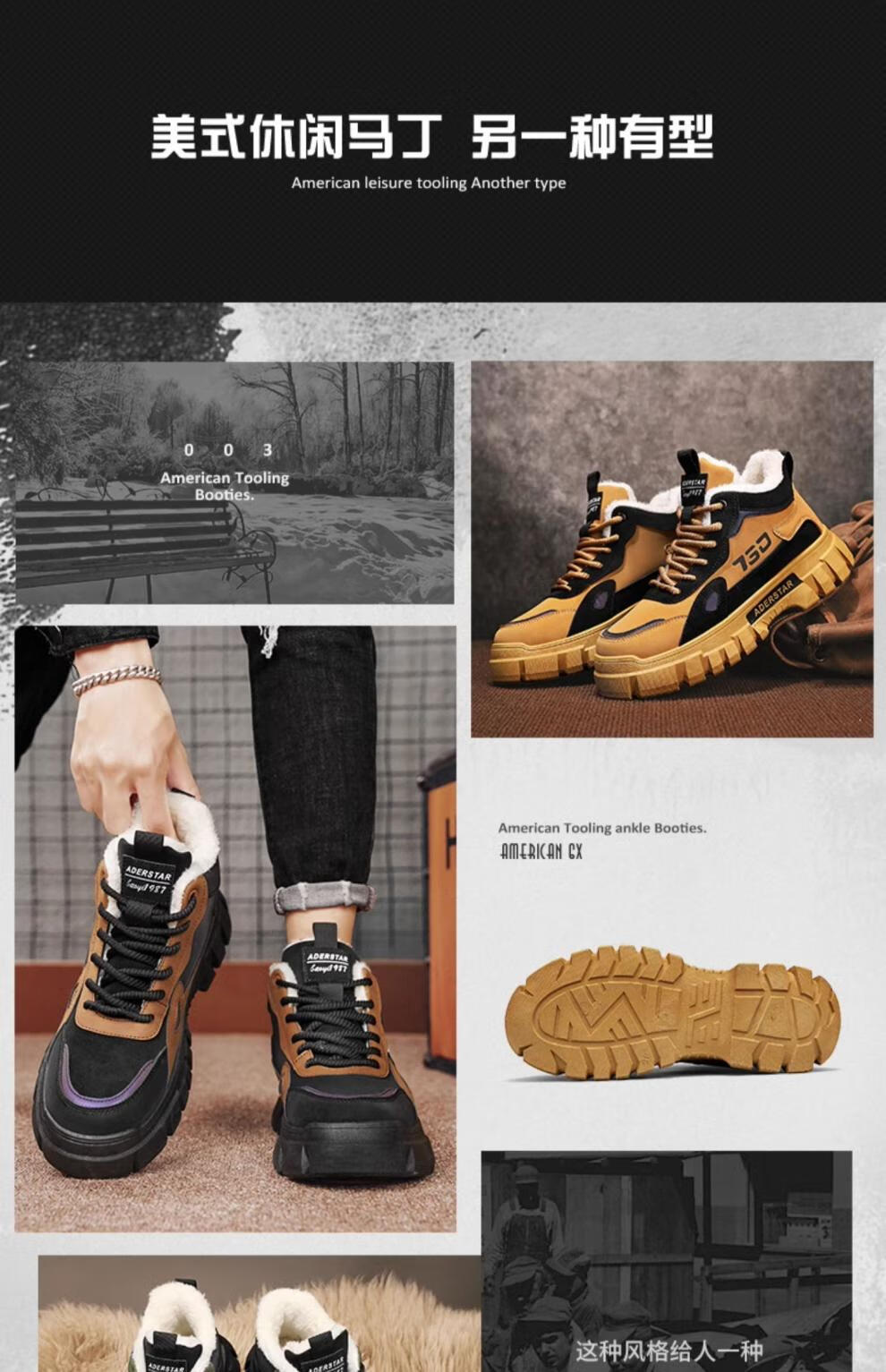稻草人(MEXICAN)高帮男鞋冬季加绒棉鞋户外登山防水防滑工作劳保鞋运动马丁靴潮流 土黄(升级款) 42 标准运动码