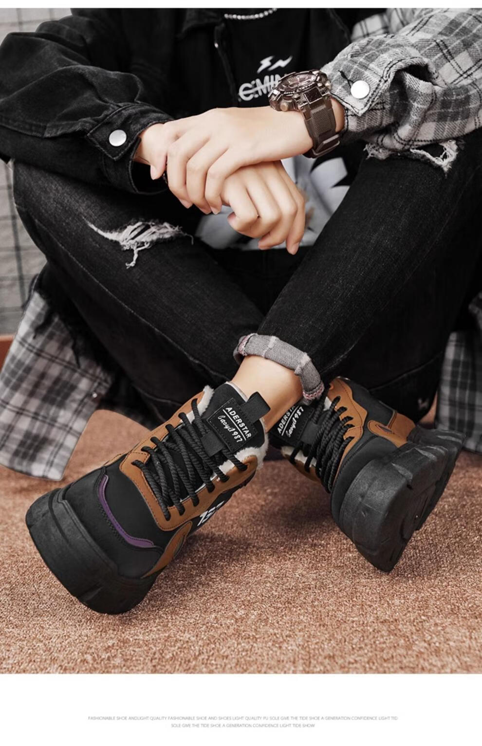沙驰(SATCHI)男鞋【羊毛皮】防寒保暖雪地靴秋冬棉鞋舒适轻底休闲鞋男靴 卡其(H12A9G0320) 加绒 38 欧码(选小一码)