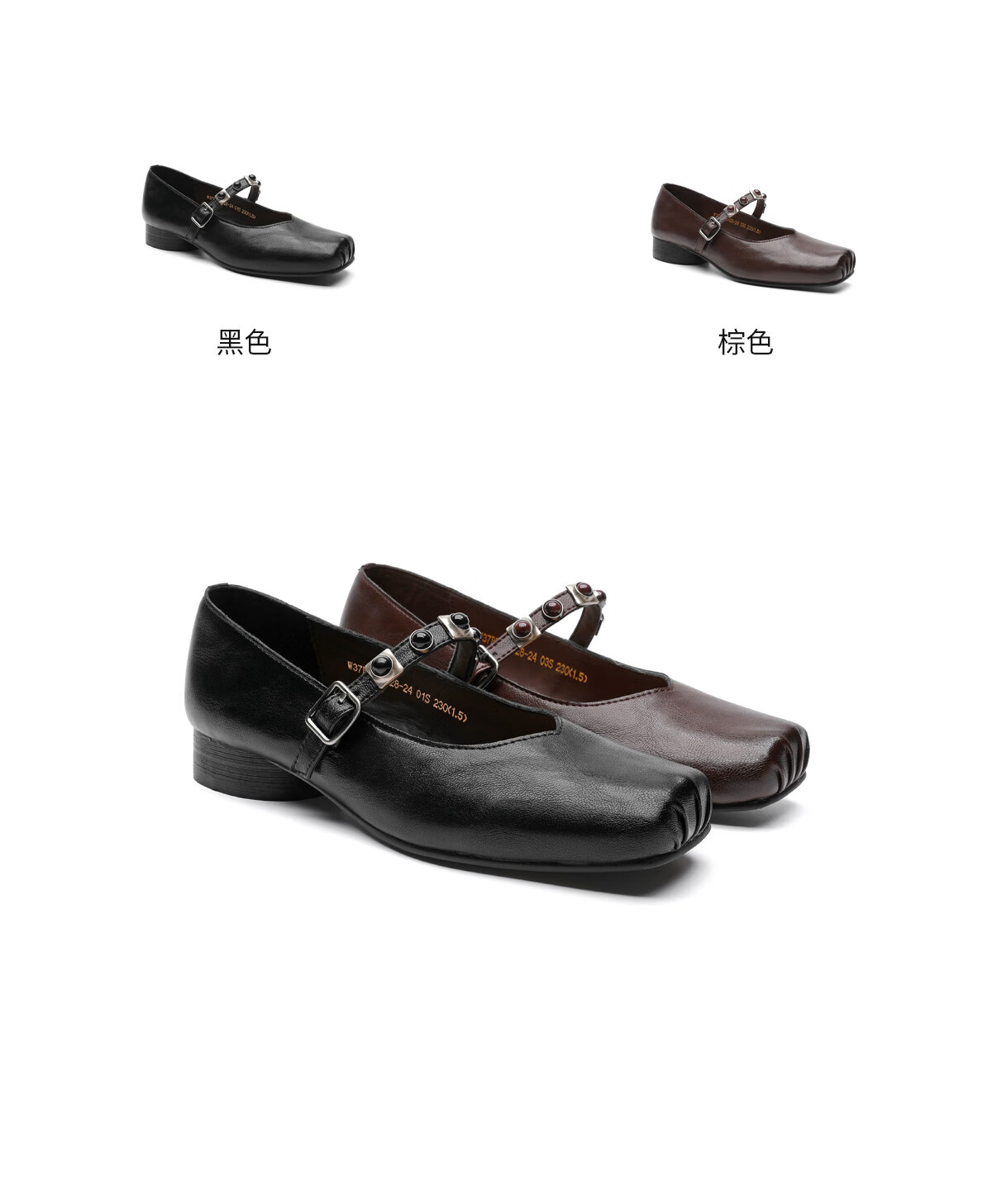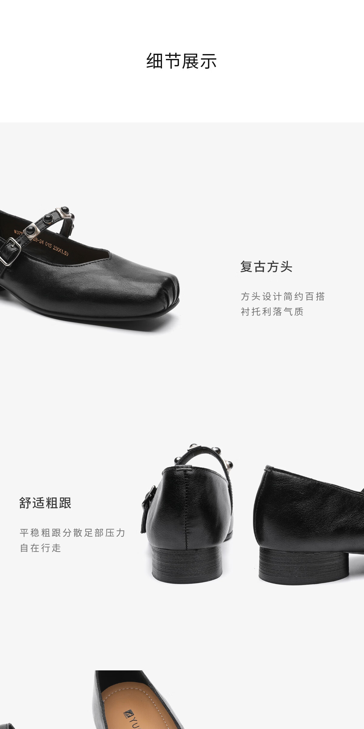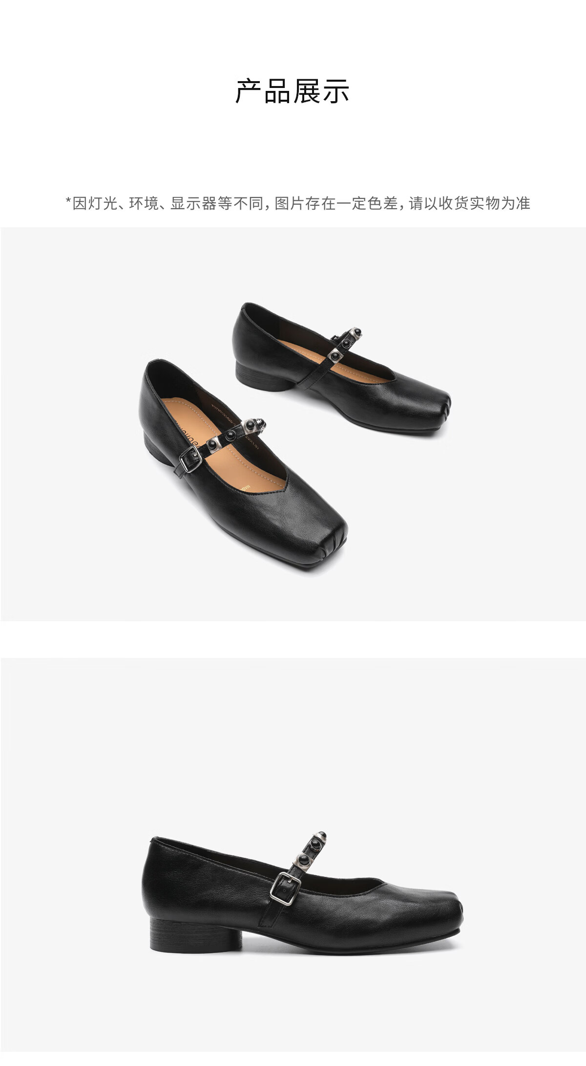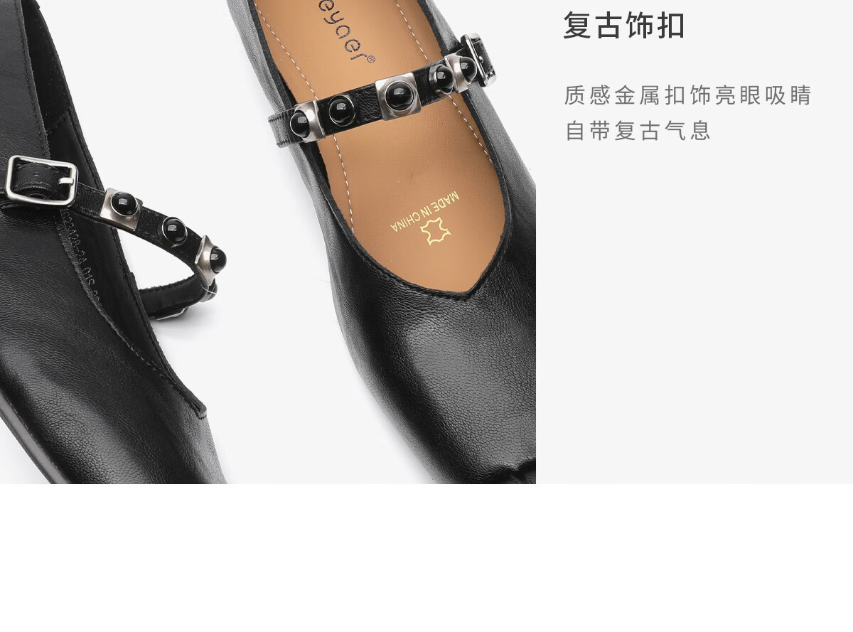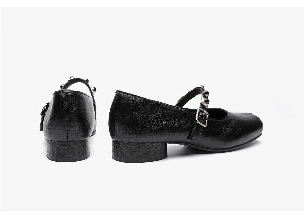 月芽儿方头浅口单鞋女2026新款春秋季法式玛丽珍女鞋子小皮鞋 黑色01S 34