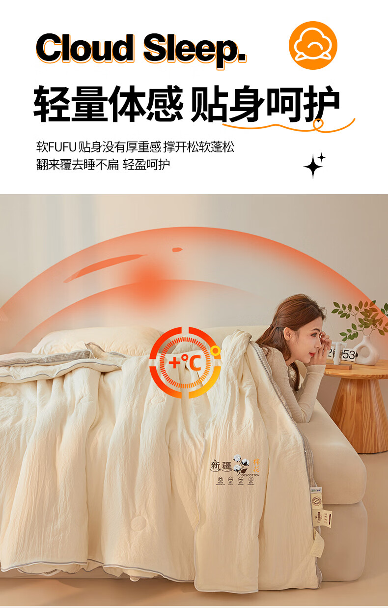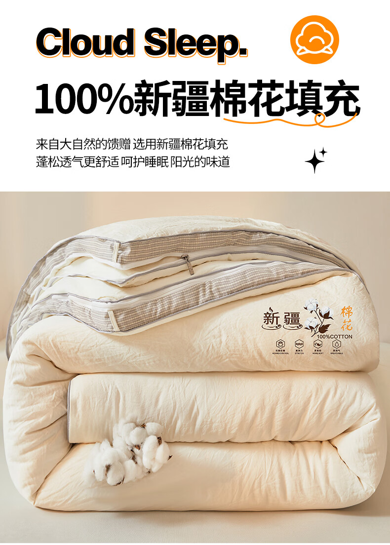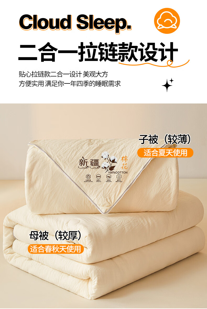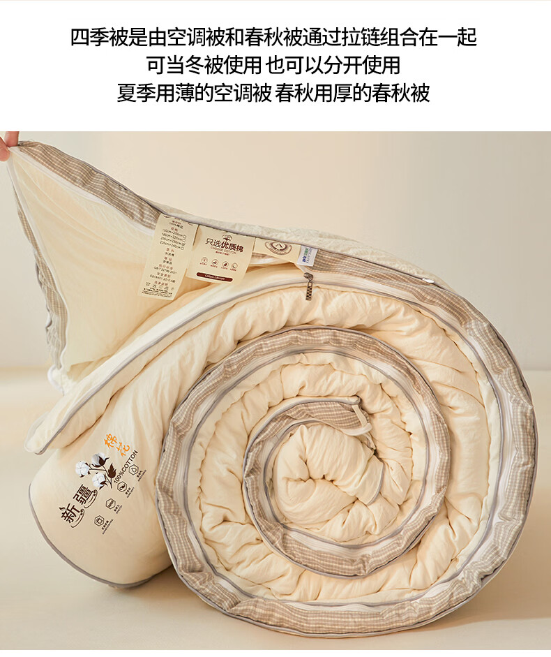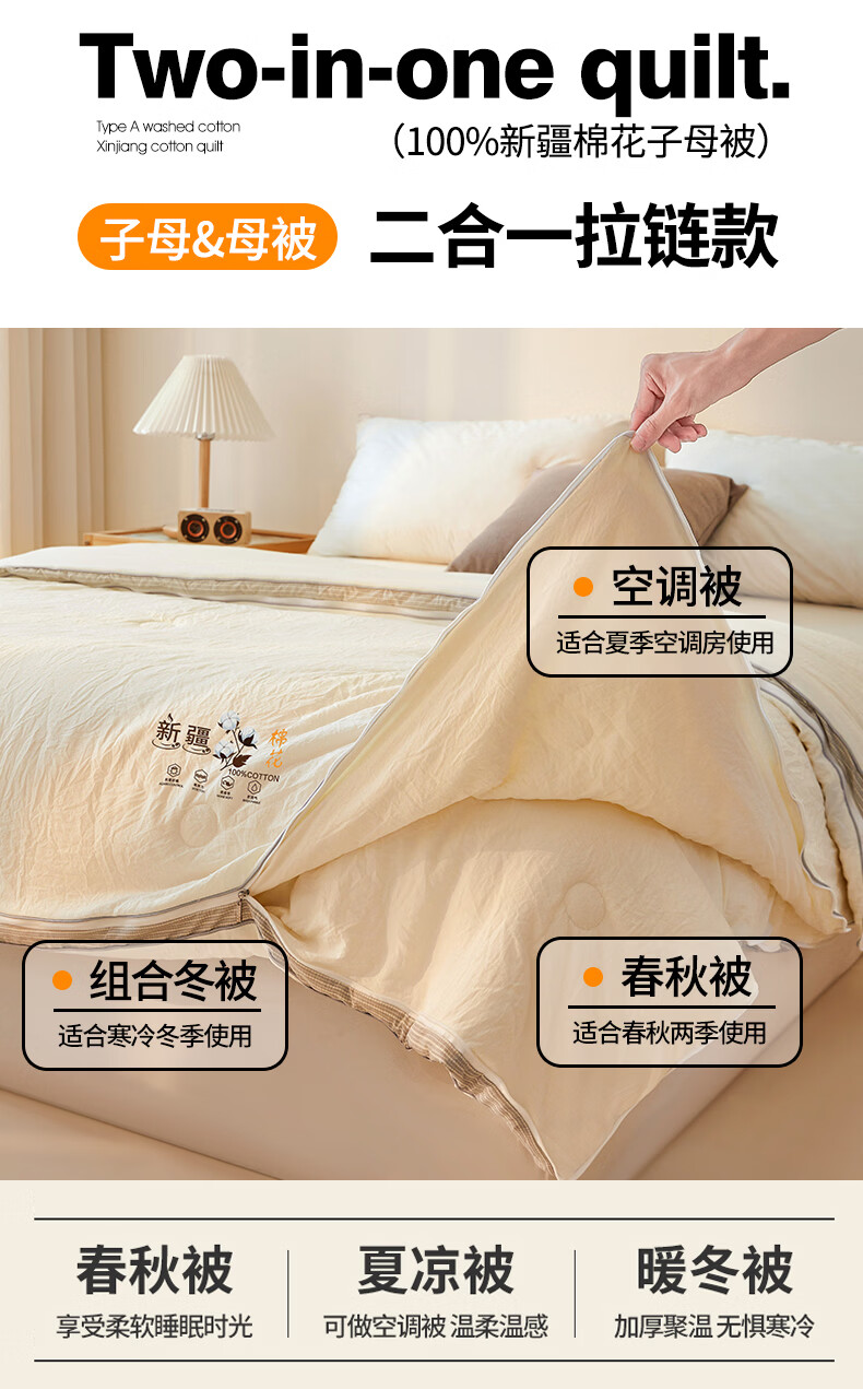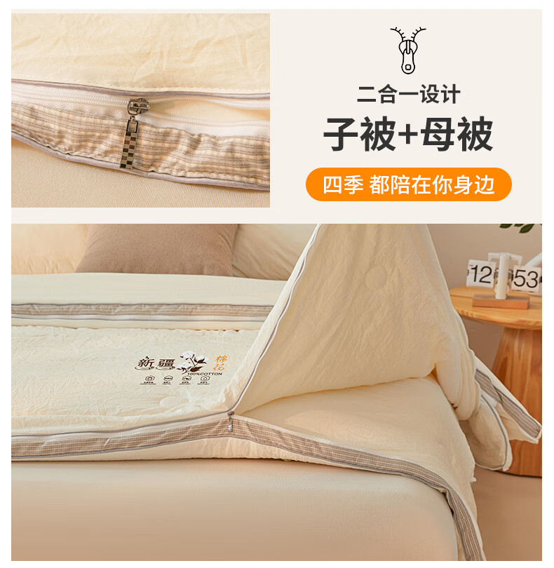 猫人(MiiOW)棉花被子被芯子母被二合一拉链款春秋被冬被加厚棉被 新疆棉-立体白 150*200cm拉链款【子被约重3斤+母被约重6斤】