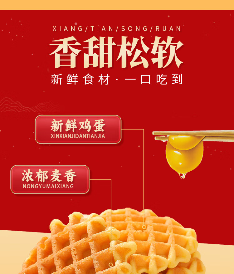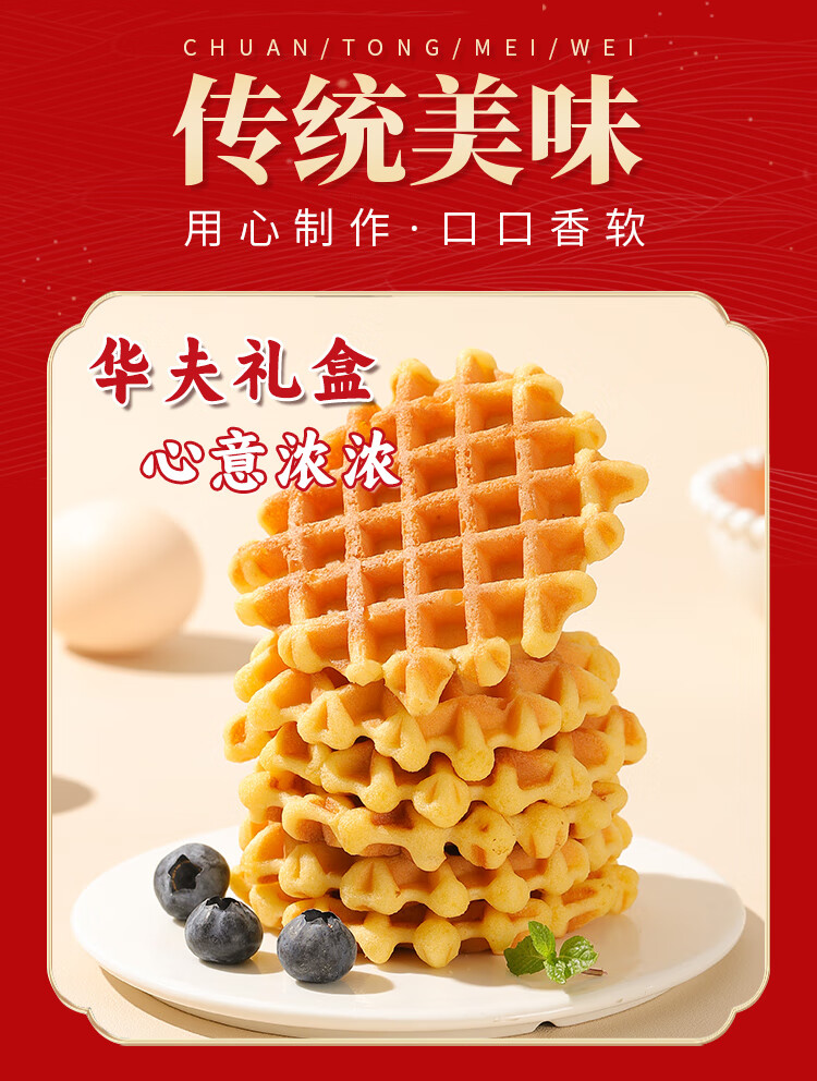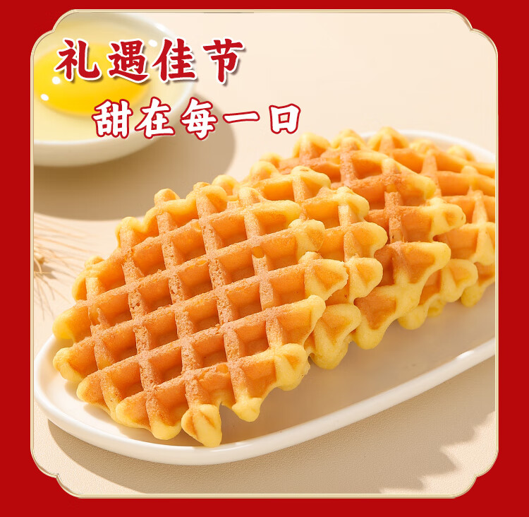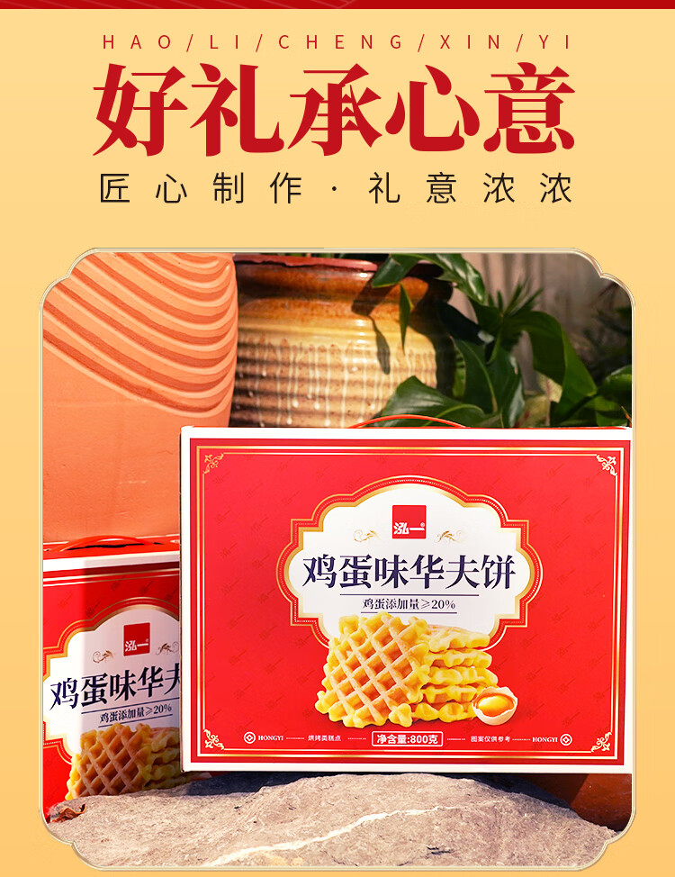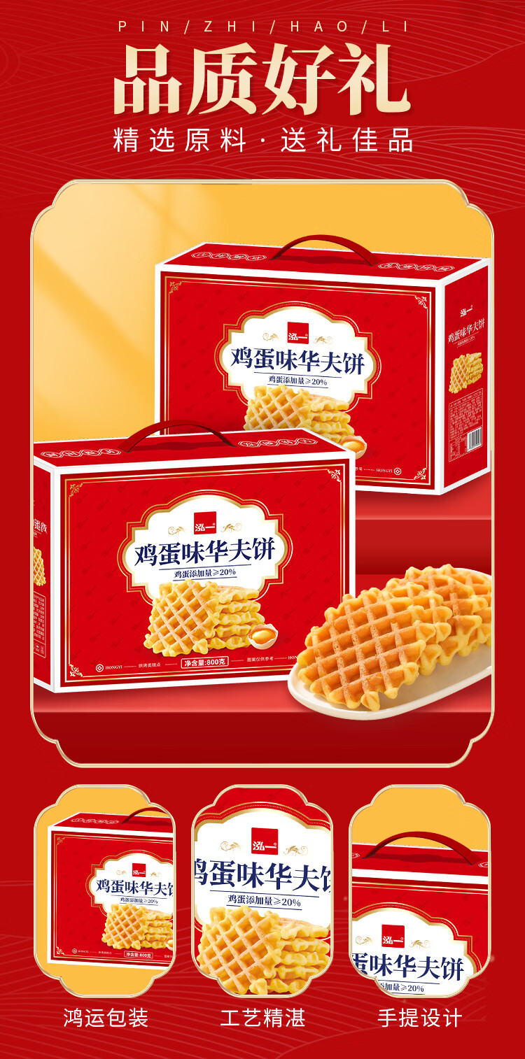 泓一华夫饼年货礼盒750g 早餐面包休闲零食饼干代餐下午茶新年送礼品