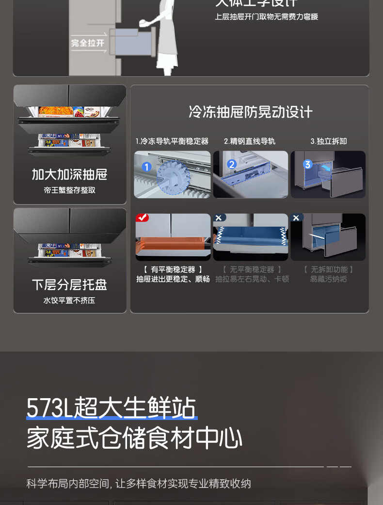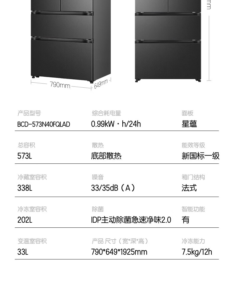 容声【526升级款】战神573L法式多门冰箱大容量双系统超薄零嵌入式一级能效灰BCD-573N40FQLAD国家补贴