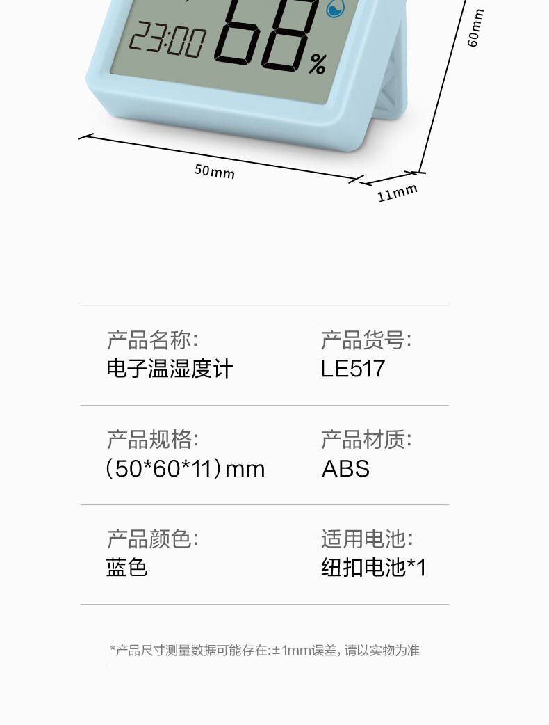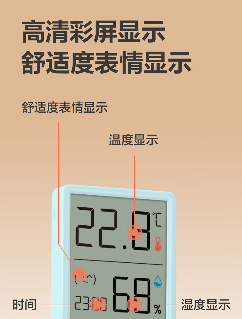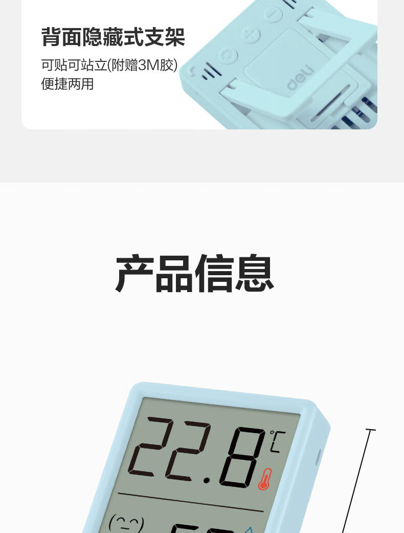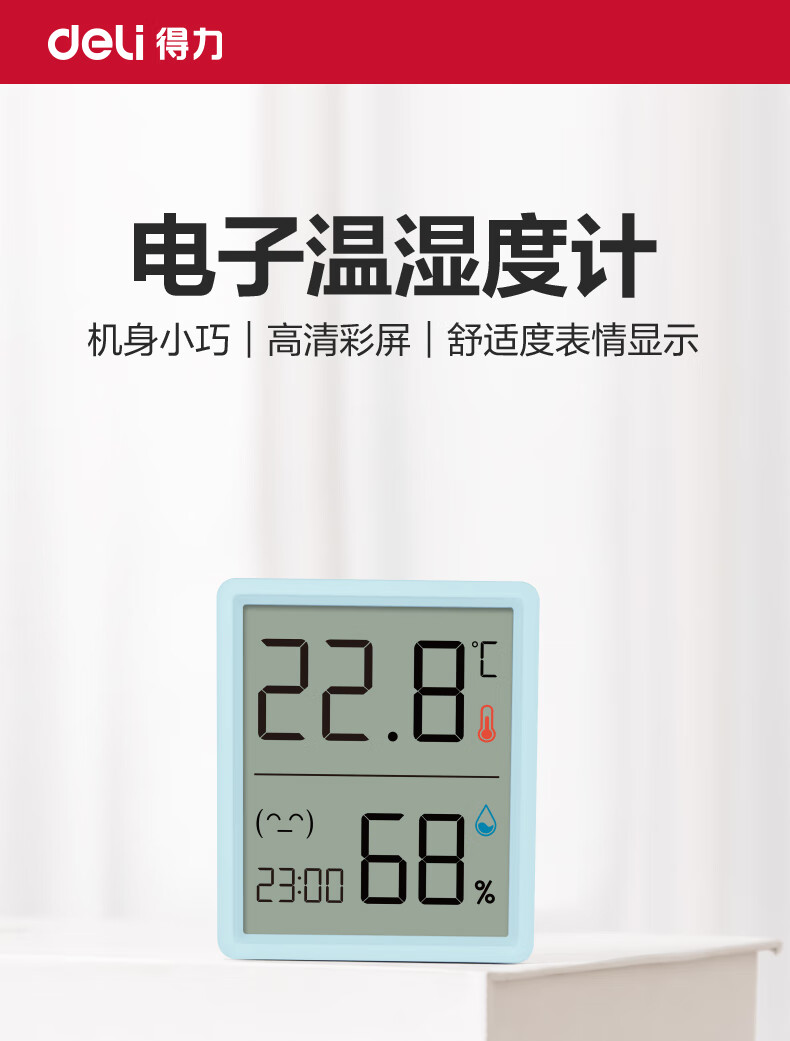 得力(deli)(deli)室内电子温湿度计/表办公家用壁挂桌面婴儿房儿童办公用品生日礼物 带时间+表情显示LE517