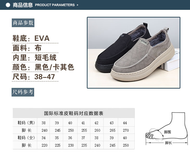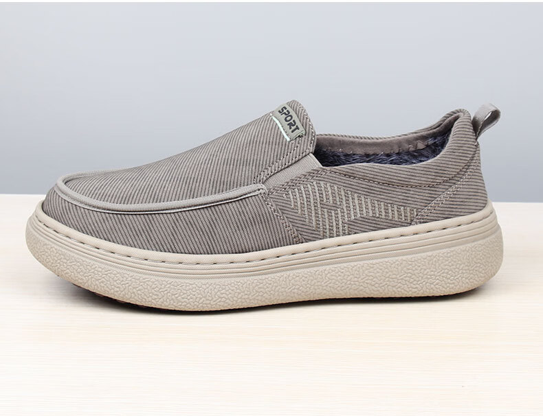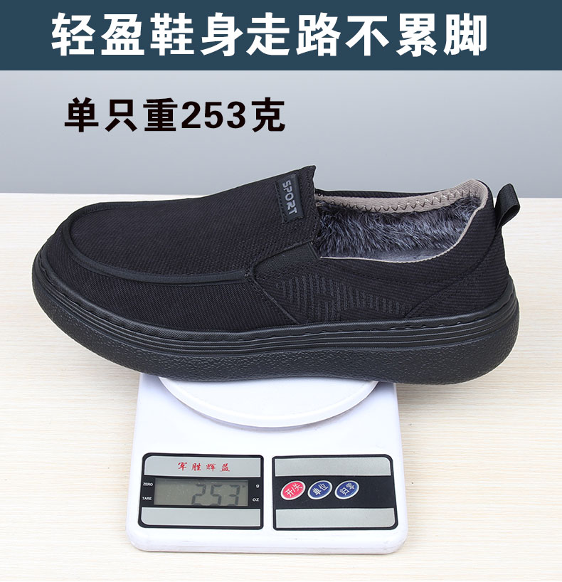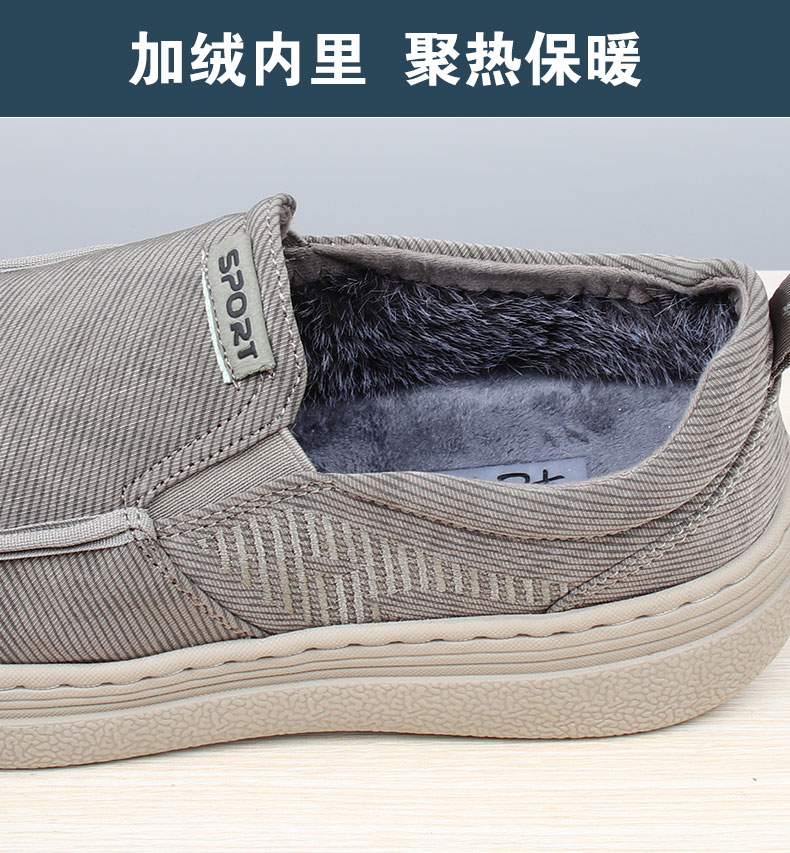 稻草人(MEXICAN)冬季老北京布鞋男加绒舒适轻底薄绒二棉鞋防滑保暖老人宽脚爸爸鞋 卡其色 38 【标准码】