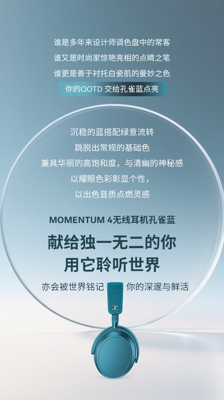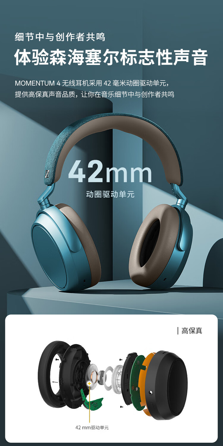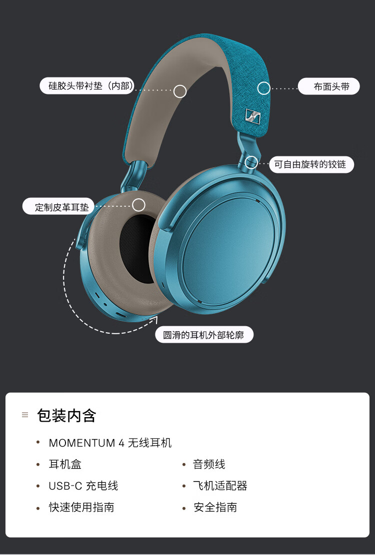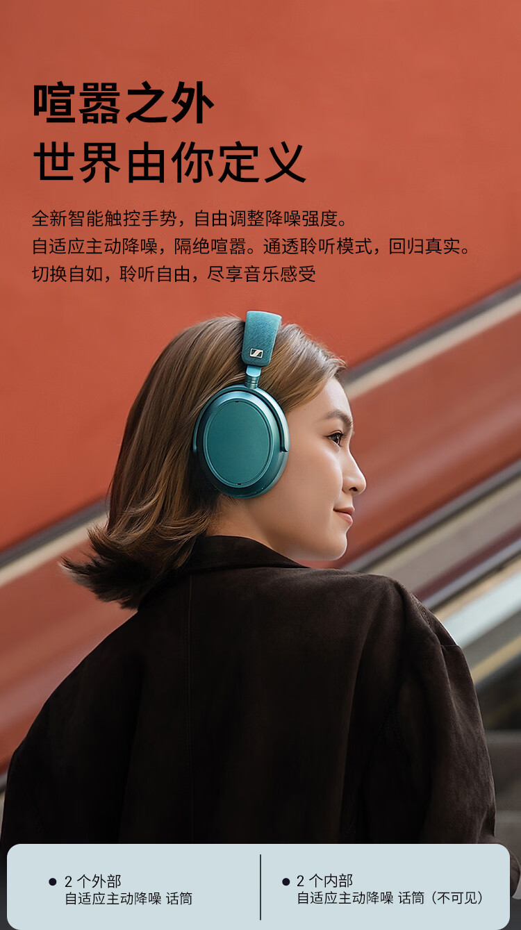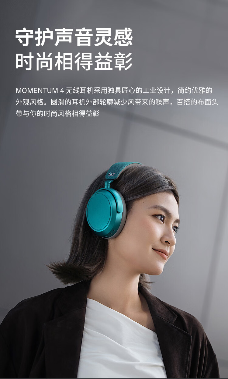 森海塞尔(Sennheiser)MOMENTUM 4 无线耳机 大馒头4蓝牙头戴耳机 主动降噪音乐耳机 孔雀蓝