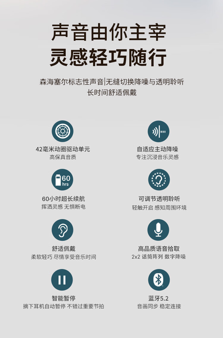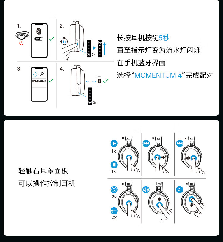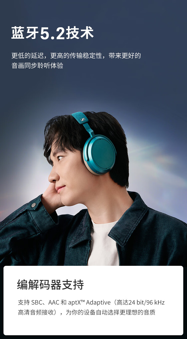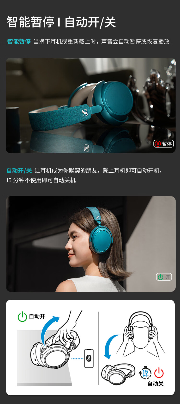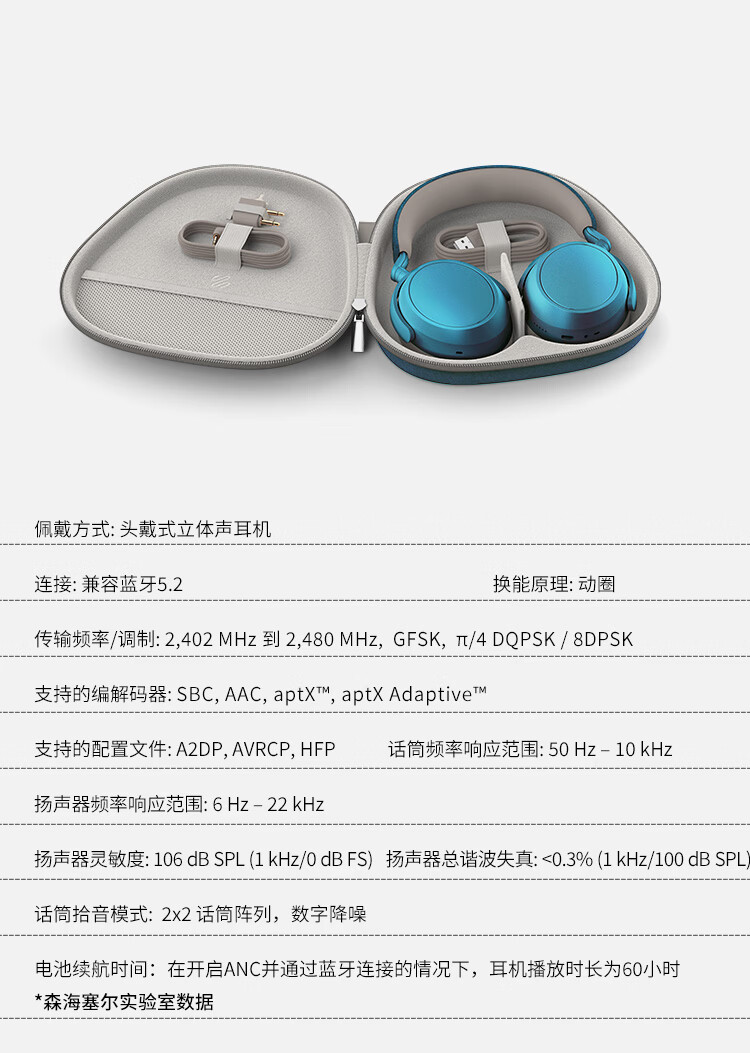森海塞尔(Sennheiser)MOMENTUM 4 无线耳机 大馒头4蓝牙头戴耳机 主动降噪音乐耳机 孔雀蓝