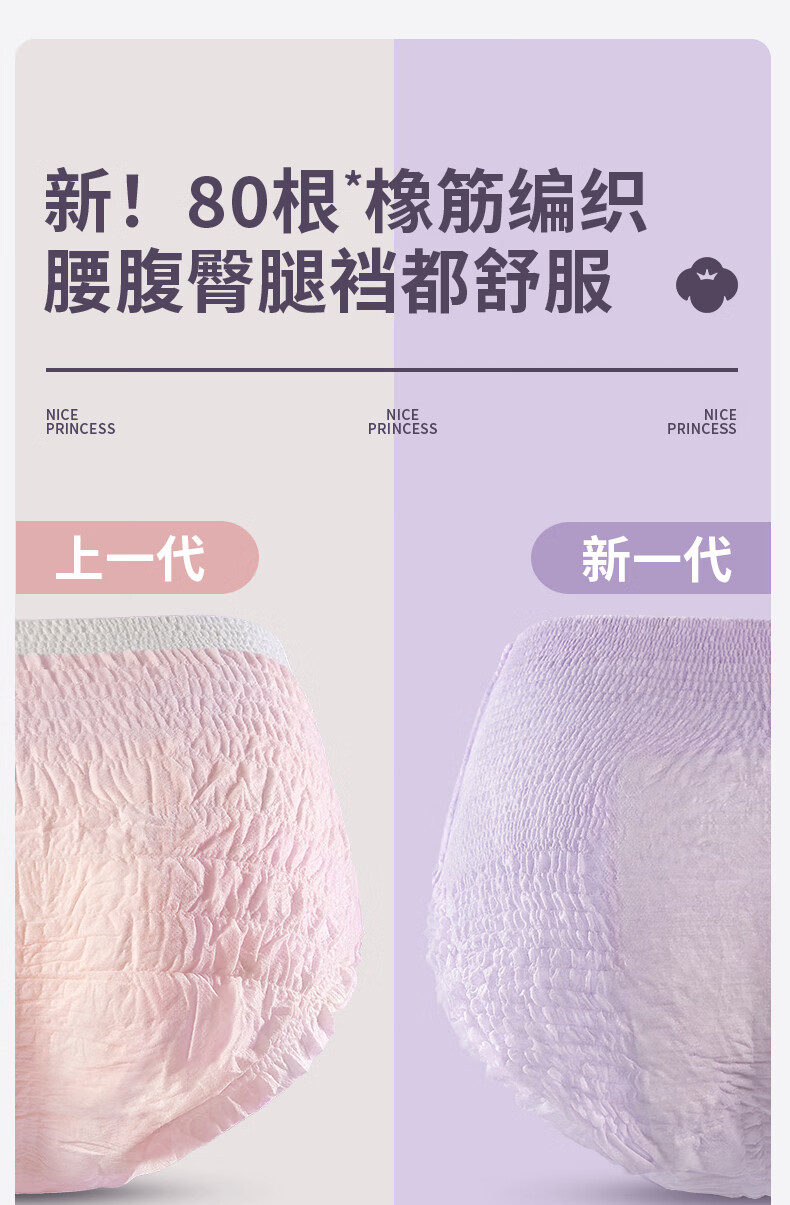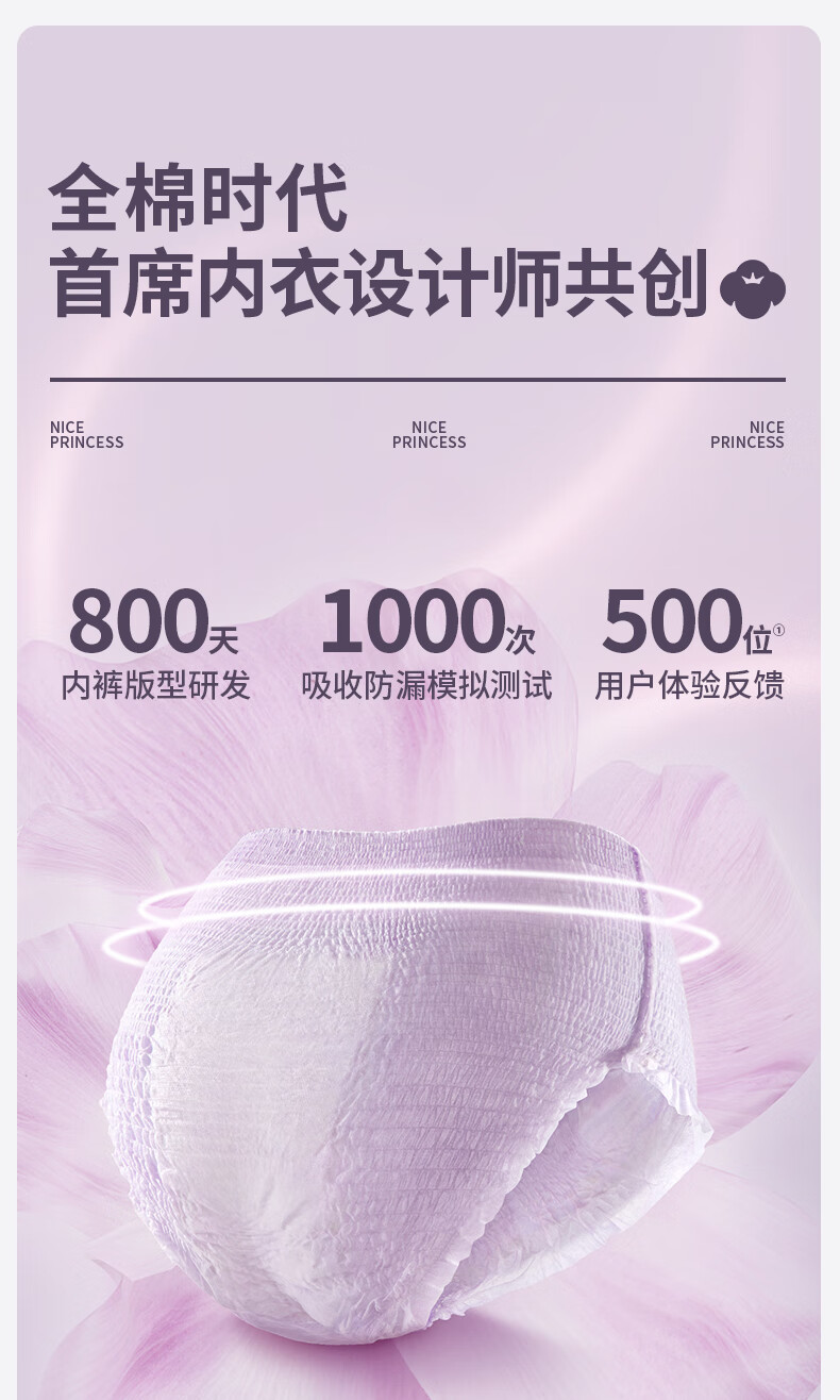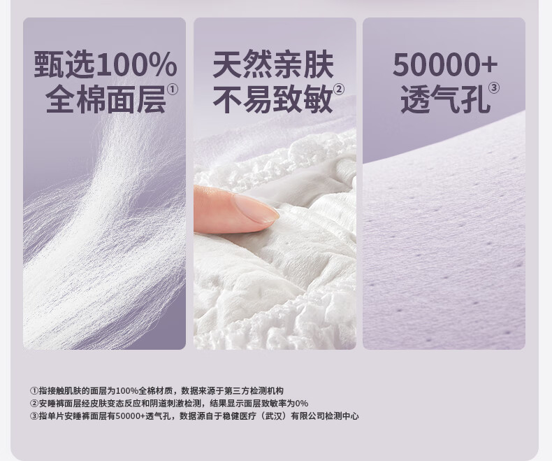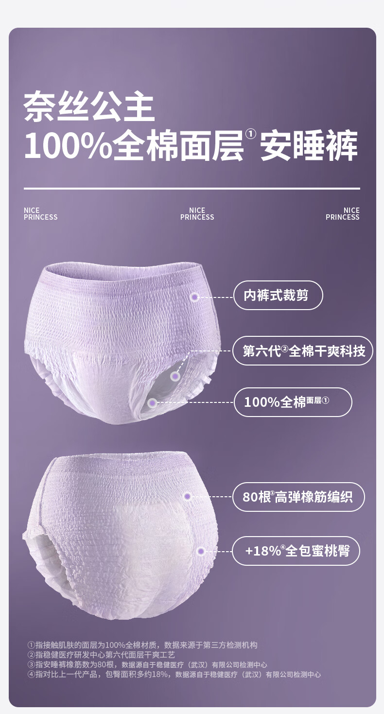 全棉时代奈丝公主医护级纯棉安心裤安睡裤裤型卫生巾ML 6条旅行装京东自营
