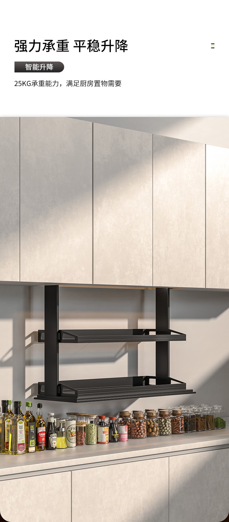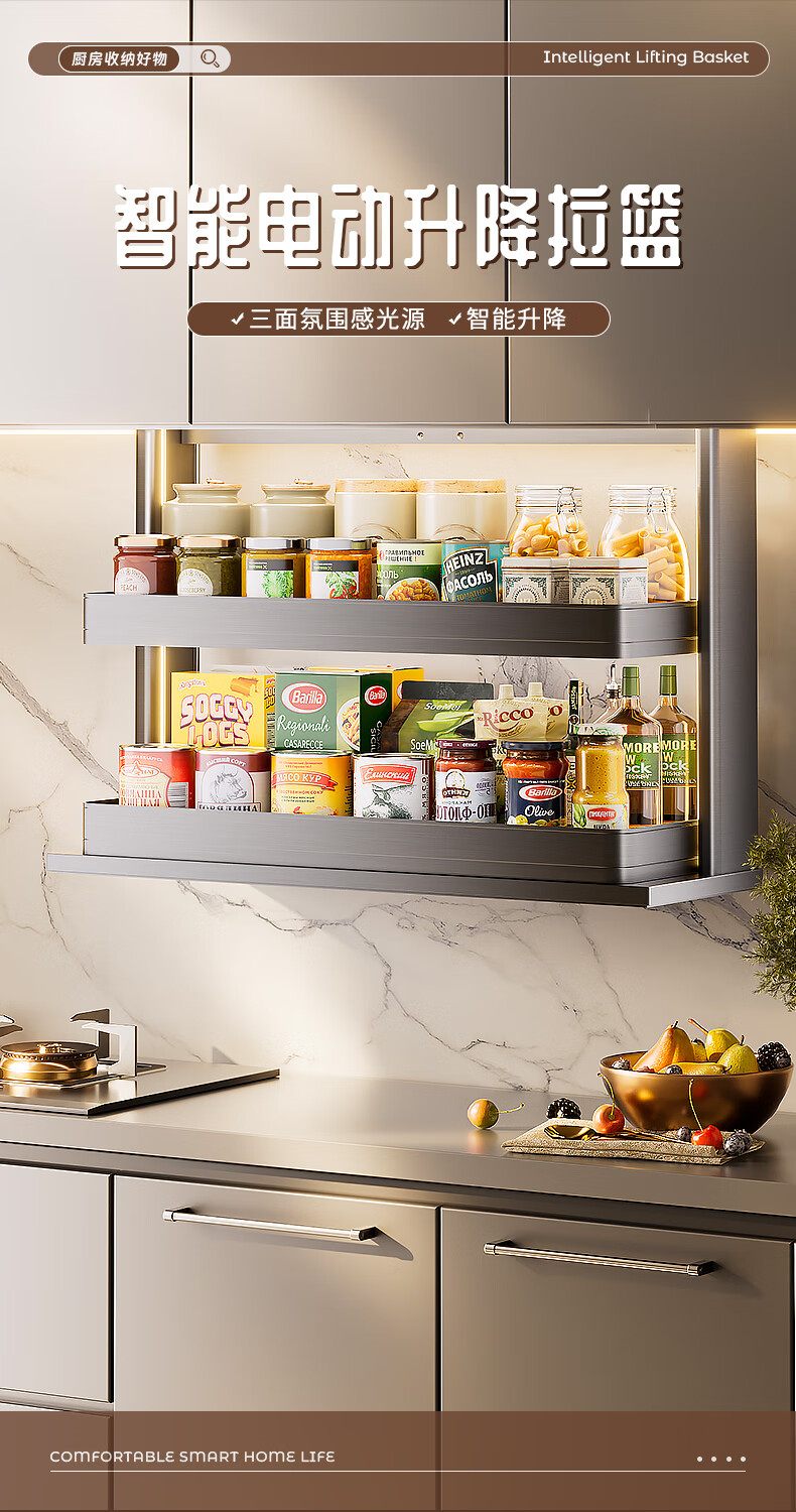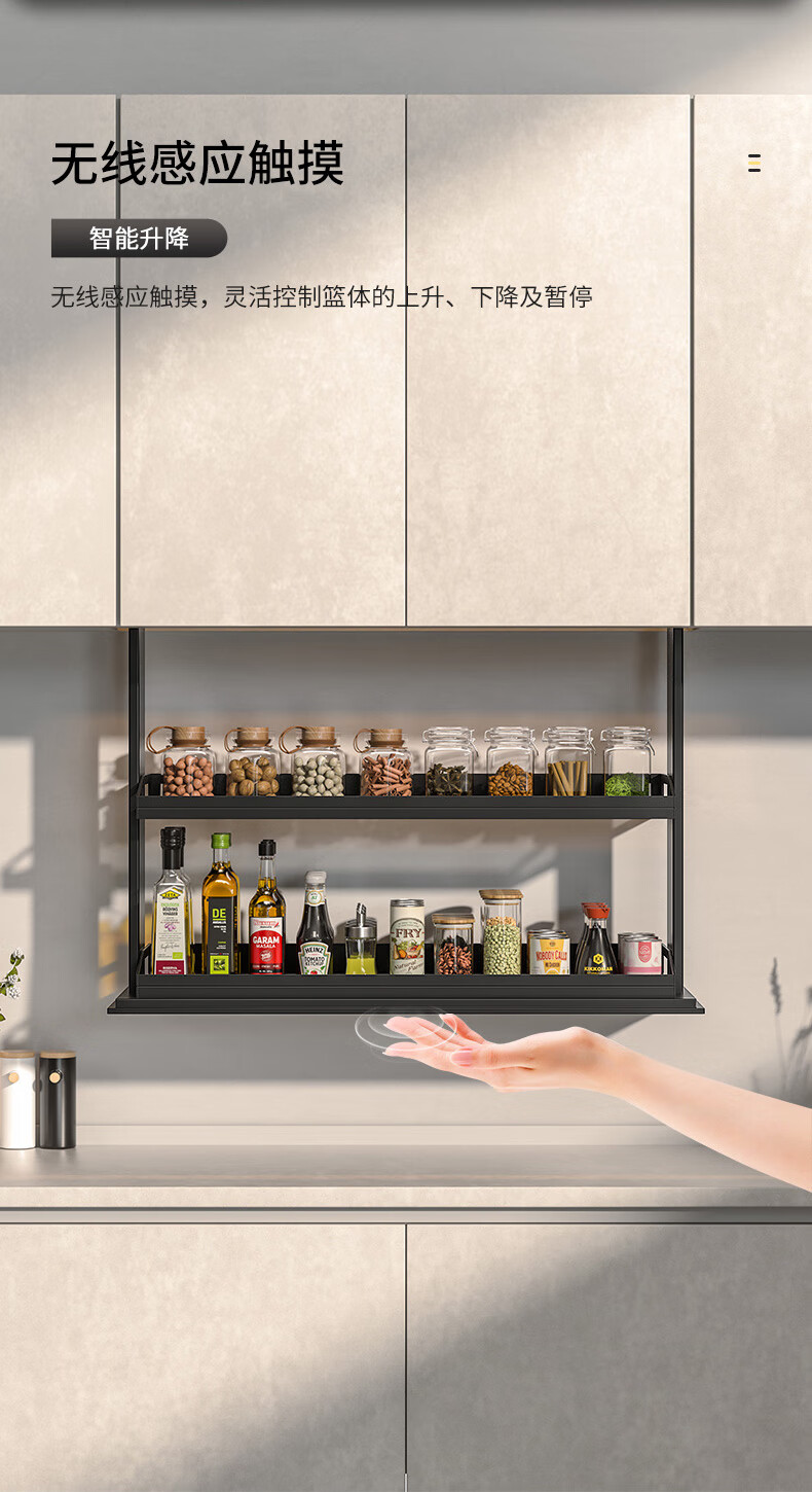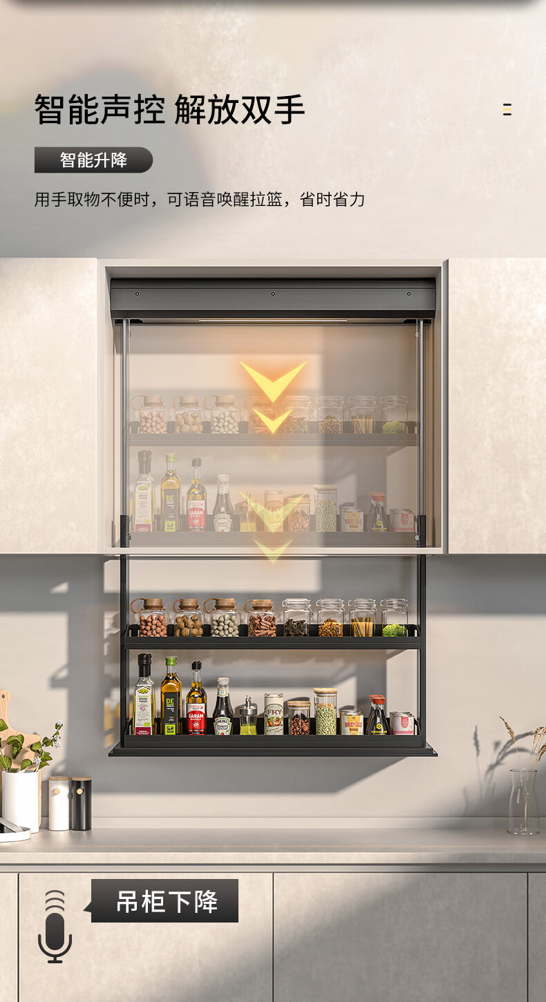 德米莫厨房吊柜垂直升降拉篮电动智能语音触摸控制自动调味拉篮柜 H款-350柜体-智能声控+按压+氛围灯+防夹手
