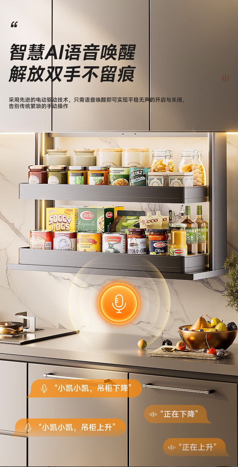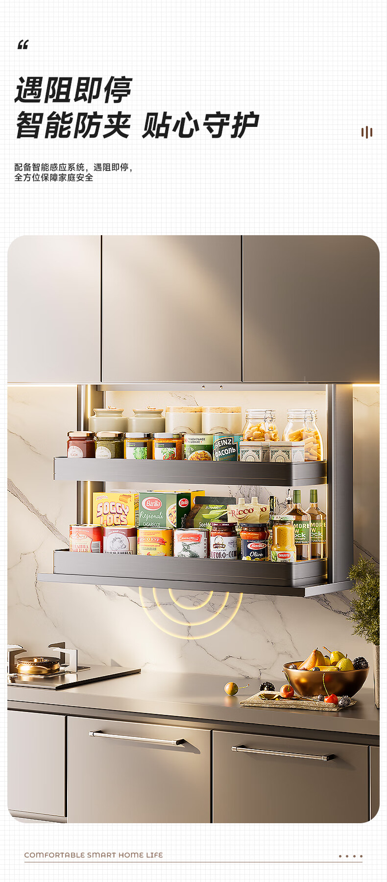 德米莫厨房吊柜垂直升降拉篮电动智能语音触摸控制自动调味拉 折弯350柜体-智能声控+按压+氛围灯+防夹手