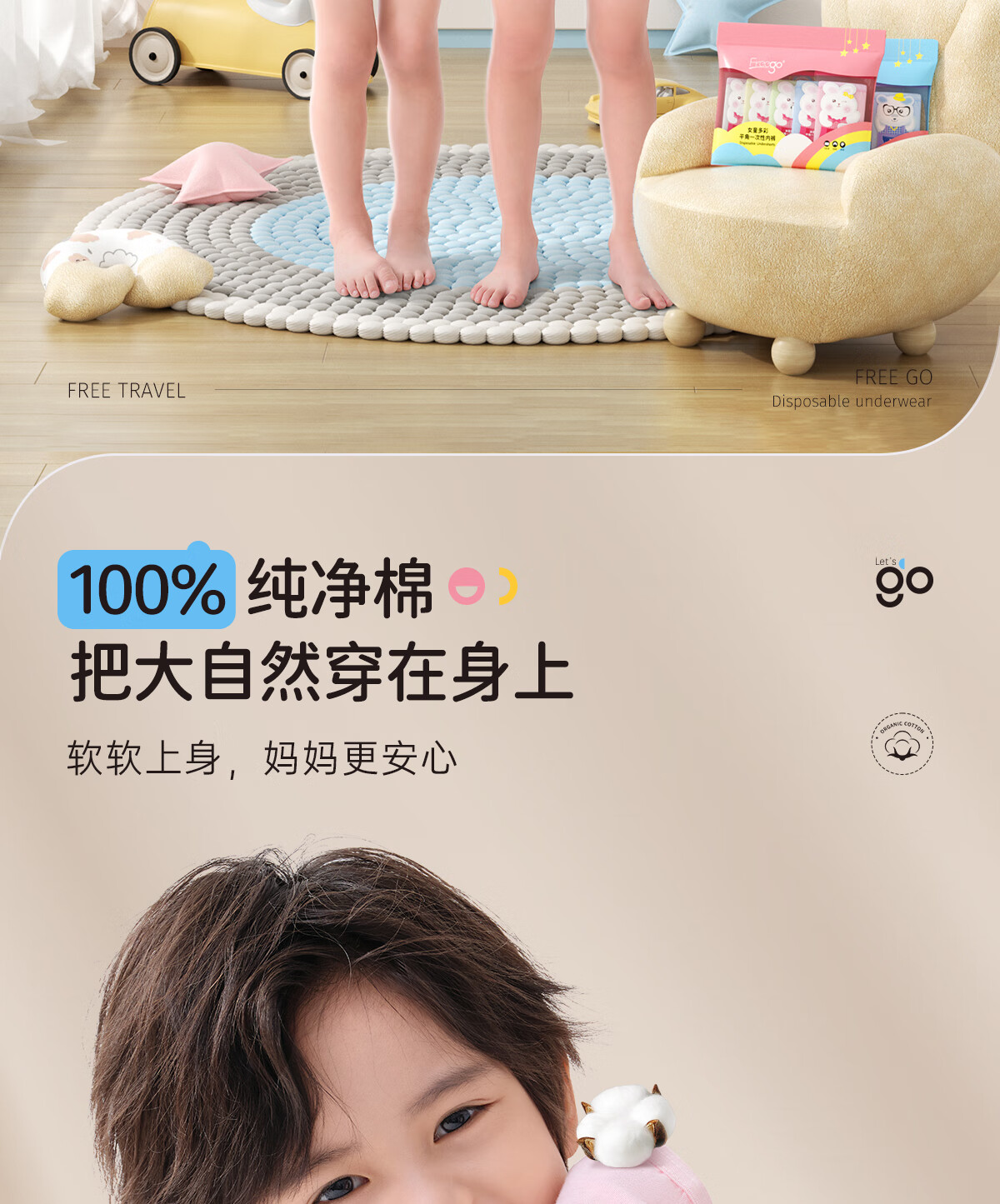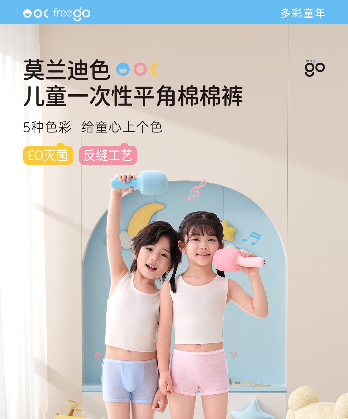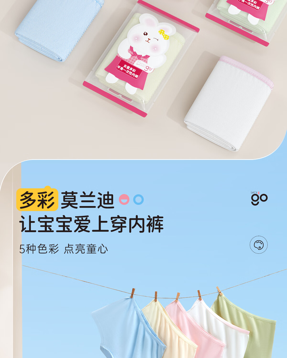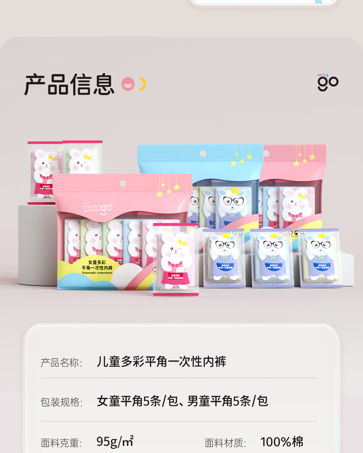 Freego儿童彩色纯棉平角一次性内裤EO灭菌免洗日抛旅游出行女童S码5条