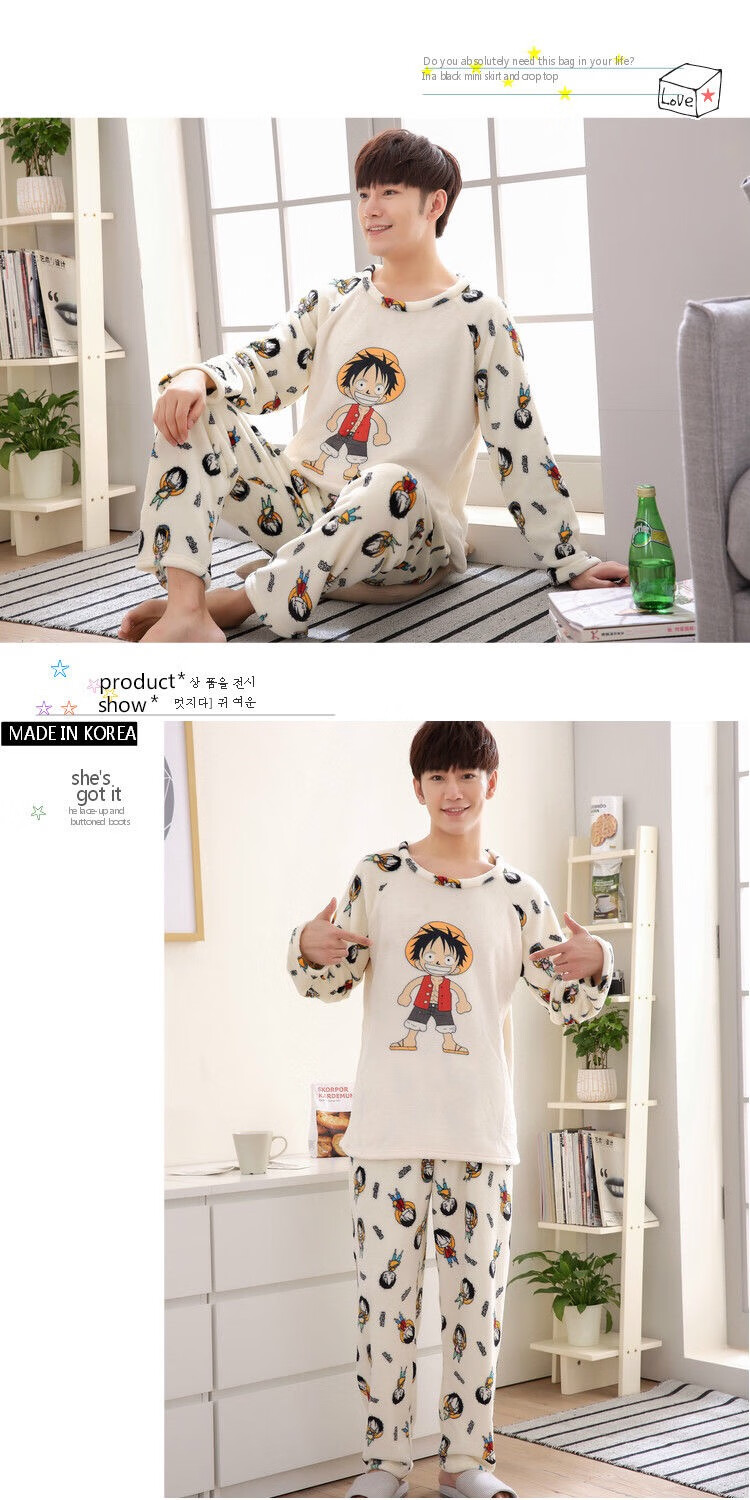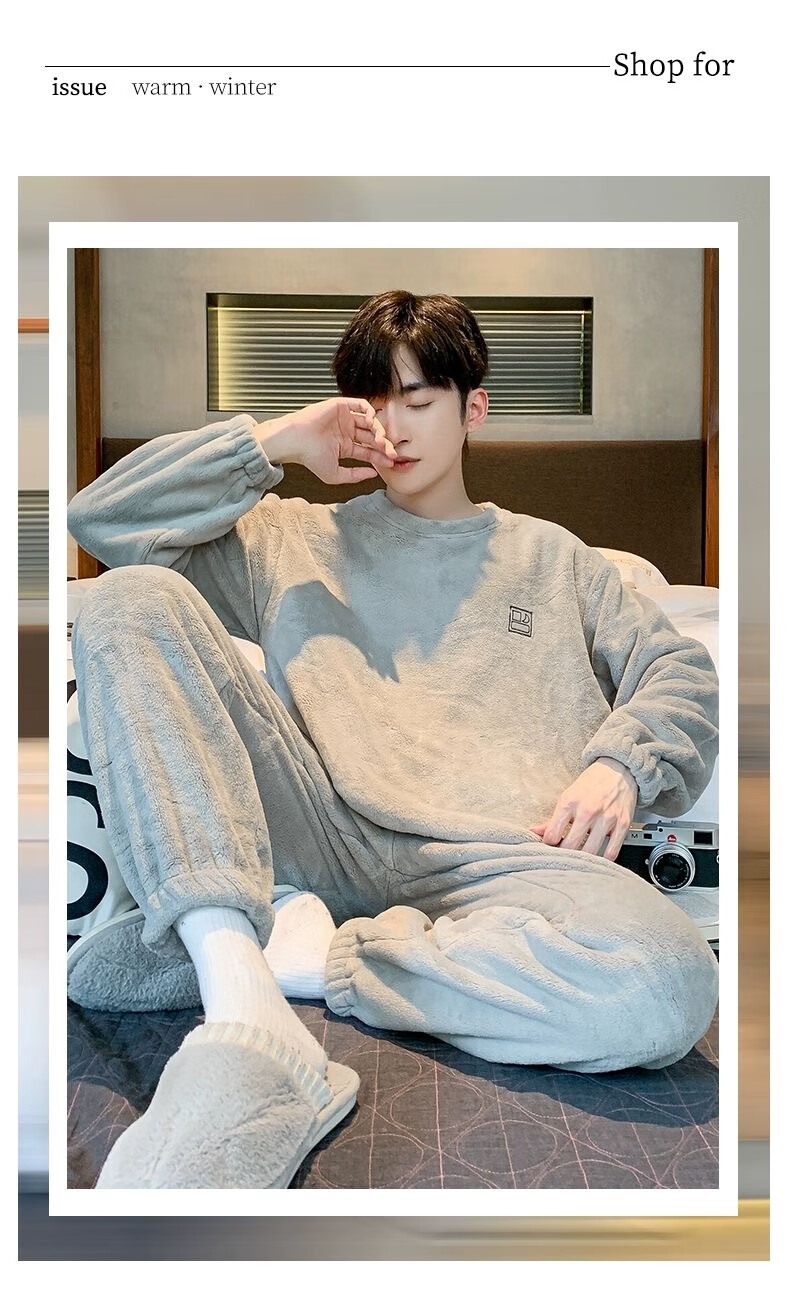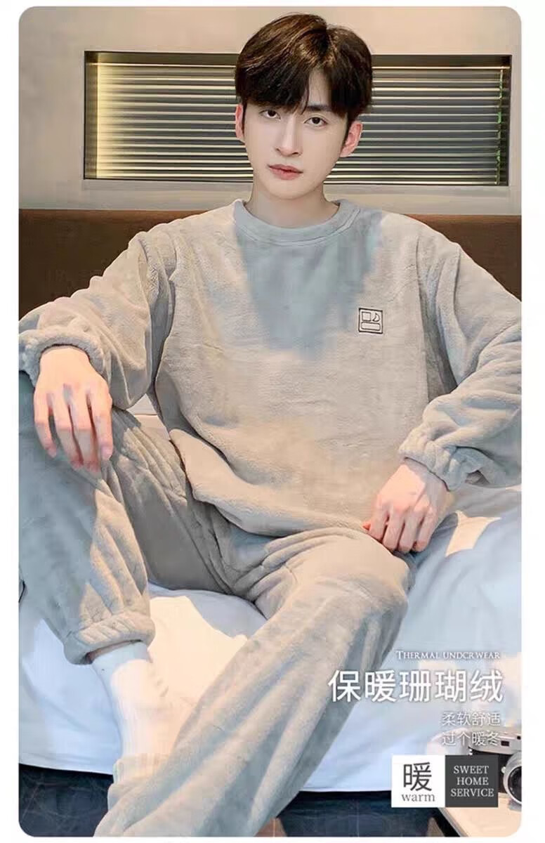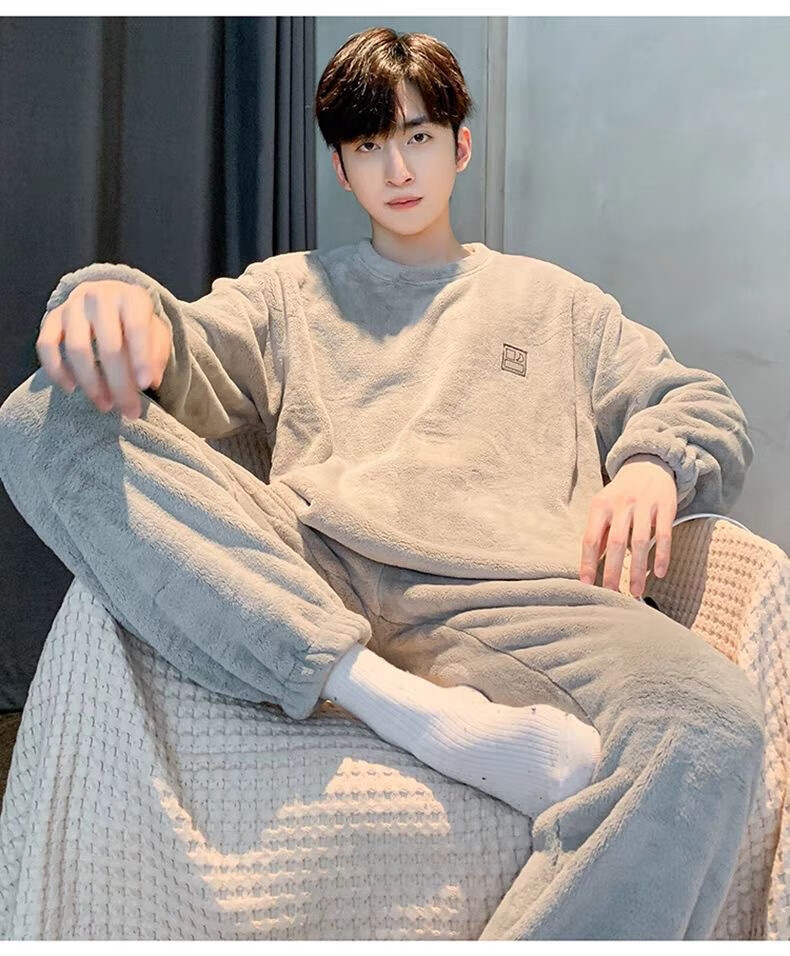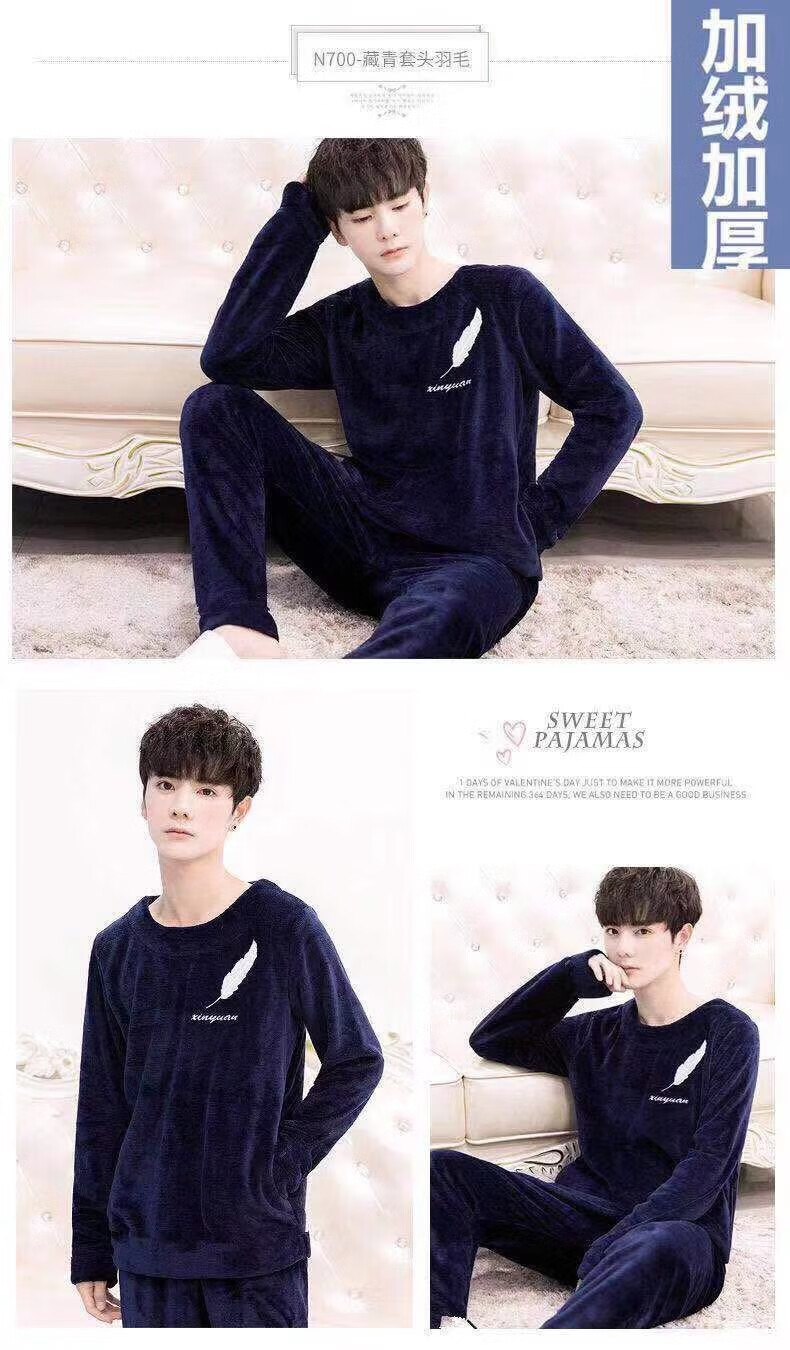 加绒加厚珊瑚绒睡衣男士秋冬款保暖条纹圆领学生可外穿家居服套装 JJL-YT1011深灰 XL 建议身高175左右,体重125-145斤