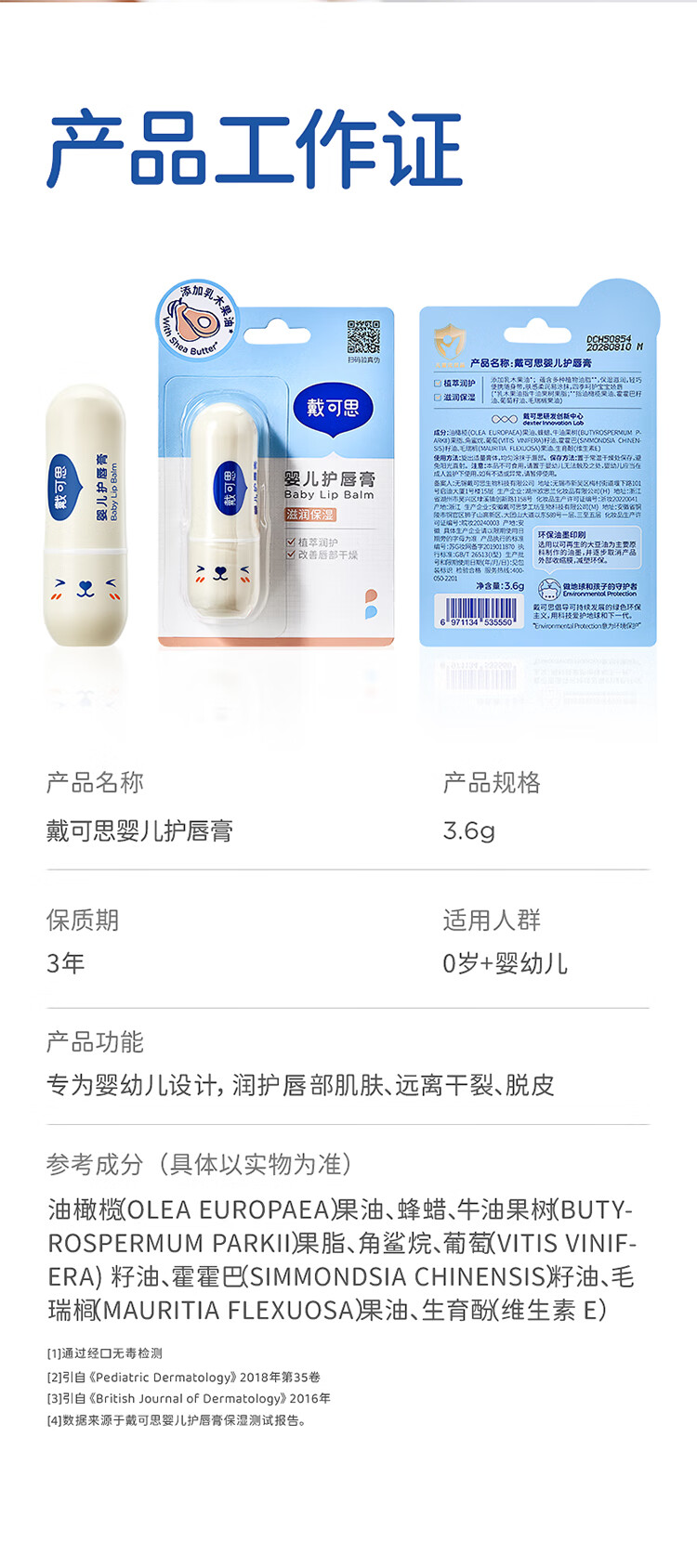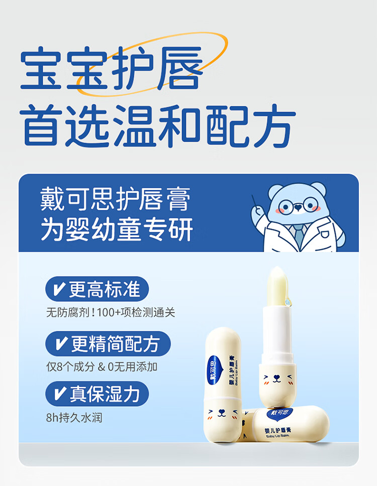 戴·可·思 婴儿护唇膏 儿童唇膏 宝宝润唇膏 持久保湿防干裂 3.6g