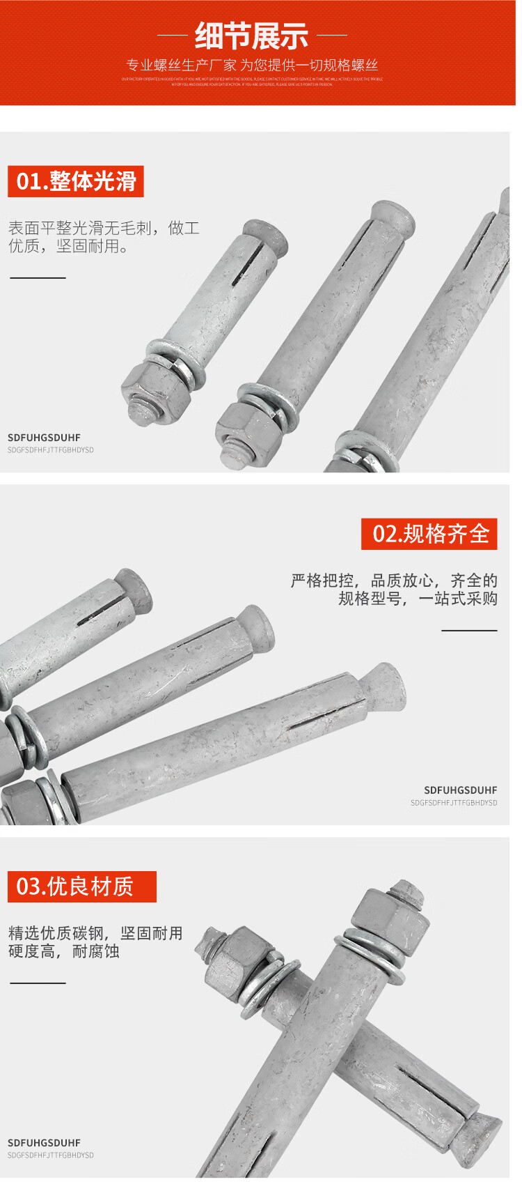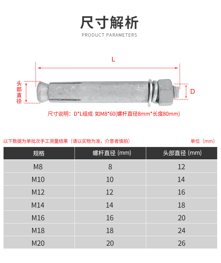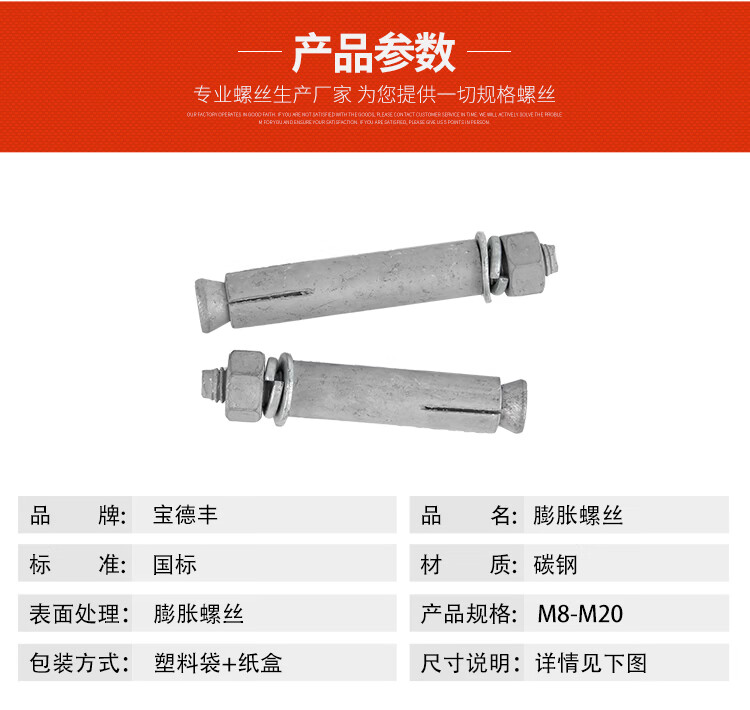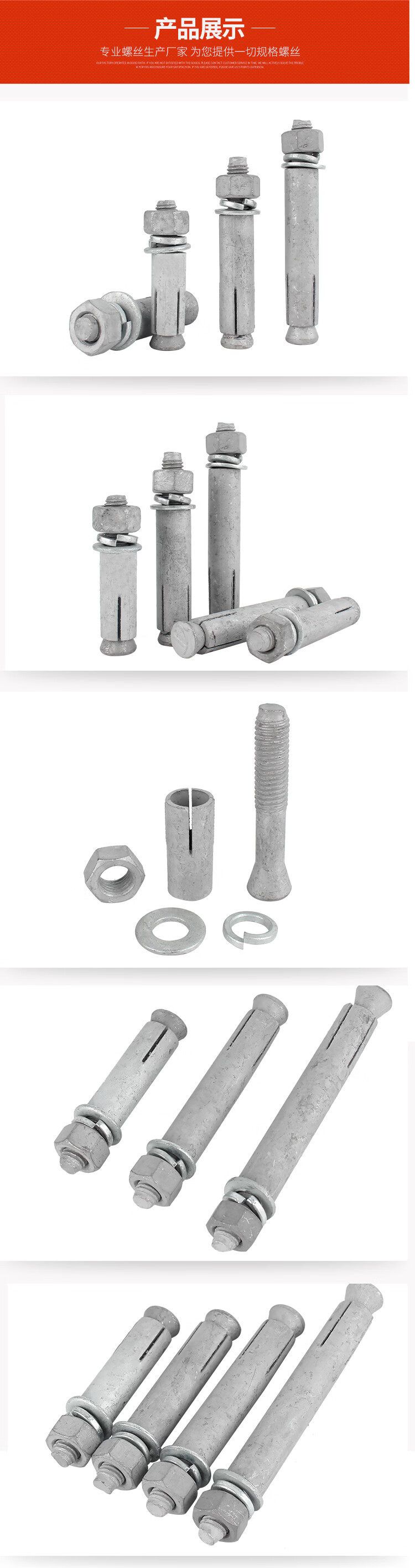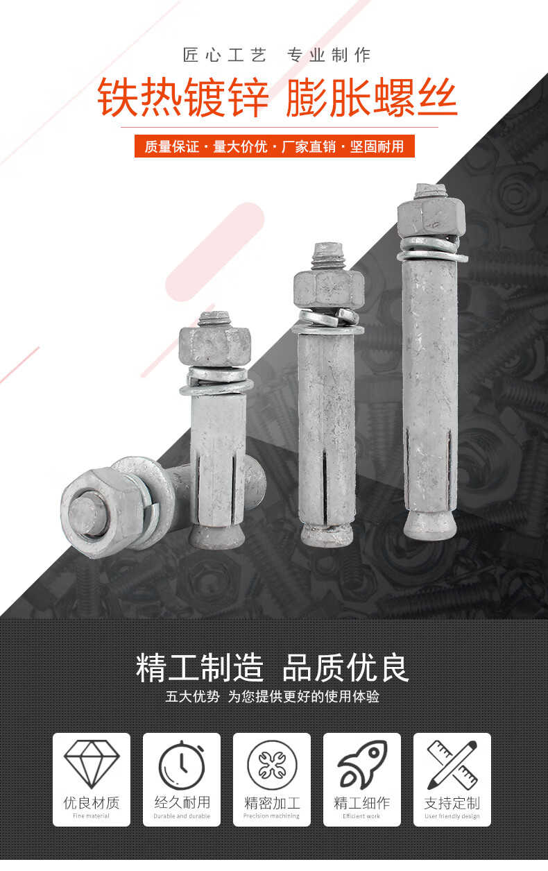 宝德丰热镀锌热浸锌膨胀螺丝304/201不锈钢膨胀螺栓拉爆炸螺钉配件大全 M8x60(5只-热镀锌)