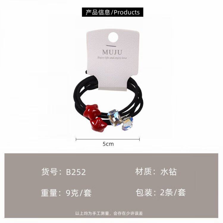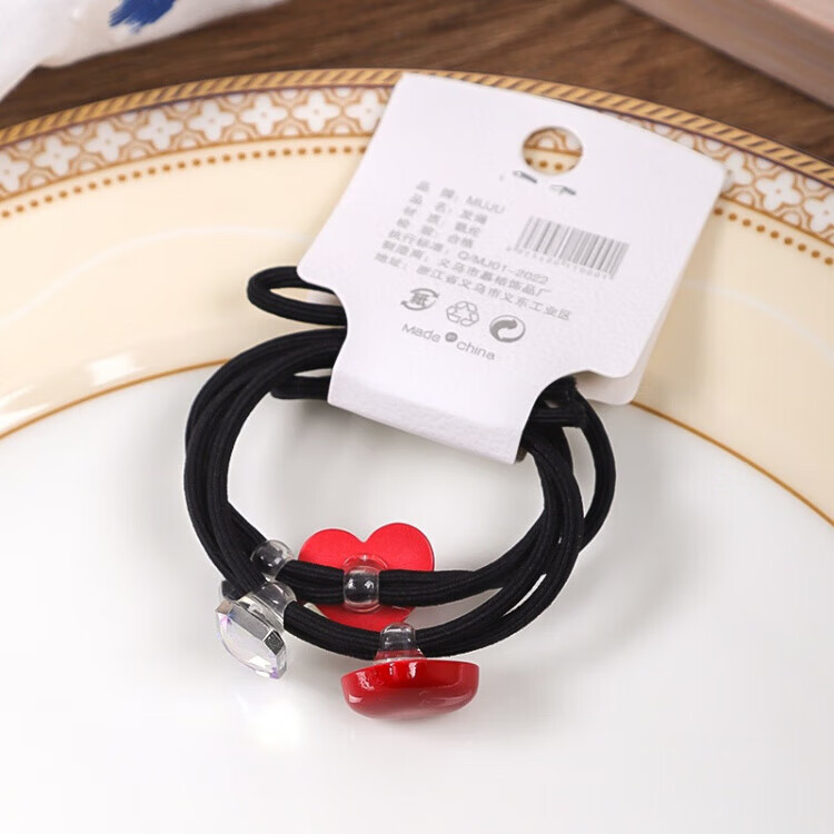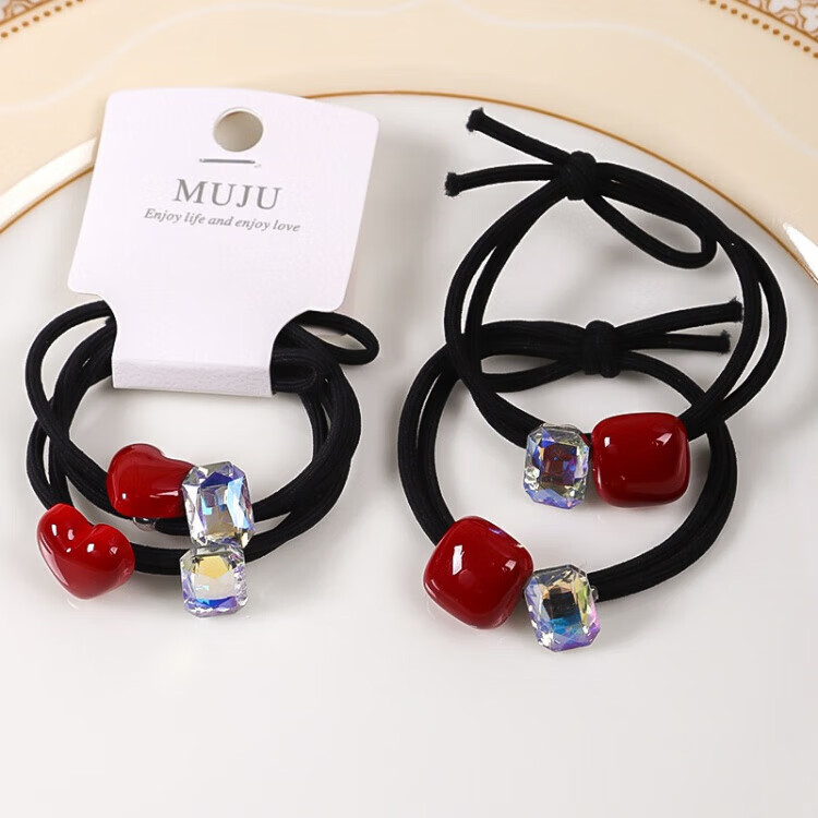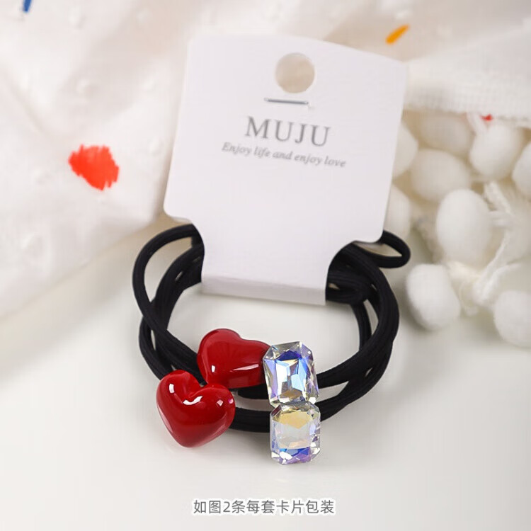 气质安可拉红发绳感2条卡装发圈闪亮水钻打结皮筋高马尾头绳 3#爱心(2条卡装)