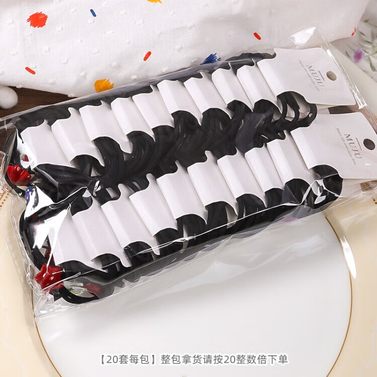 朋意韩式缎面高级感纯色大肠发圈高弹力丸子头头绳无痕护发头饰发饰品 大肠发圈-带内胆-黑色-1个