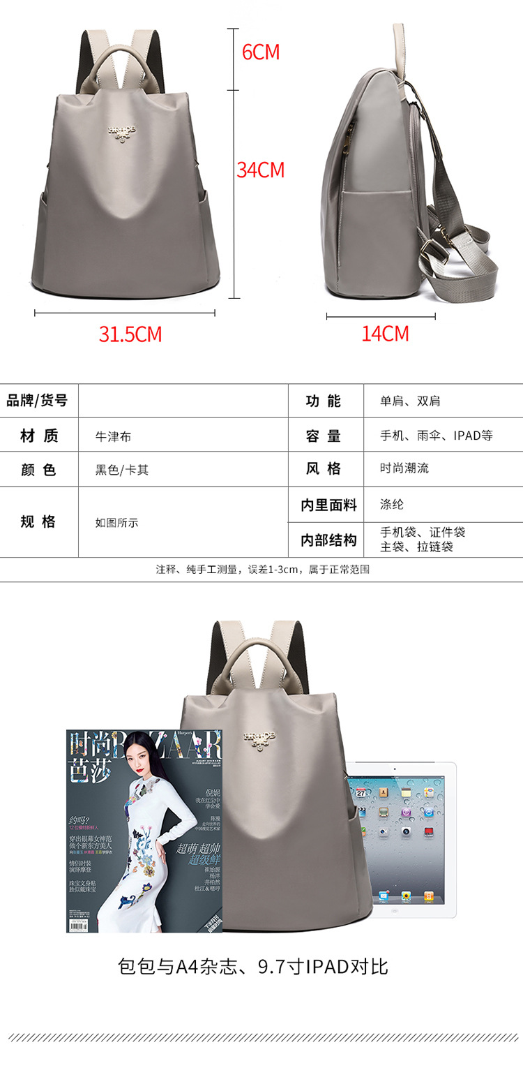 伊诗黛防盗双肩包女2025韩版牛津布防水背包女百搭时尚休闲潮流女包包 黑色