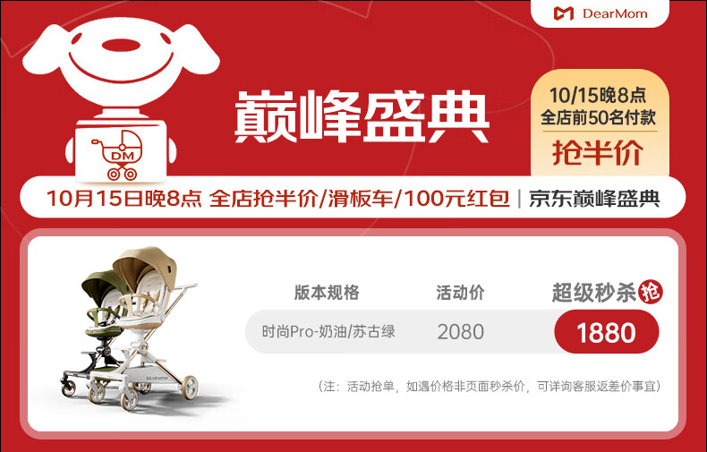 DearMom婴儿推车大白车高景观溜娃神器宝宝轻便双向可坐躺遛娃手推车 绿