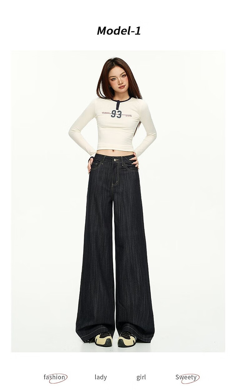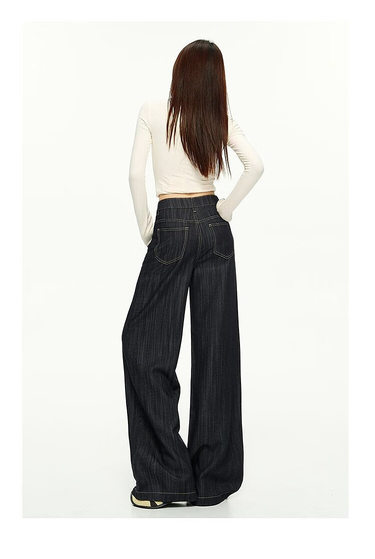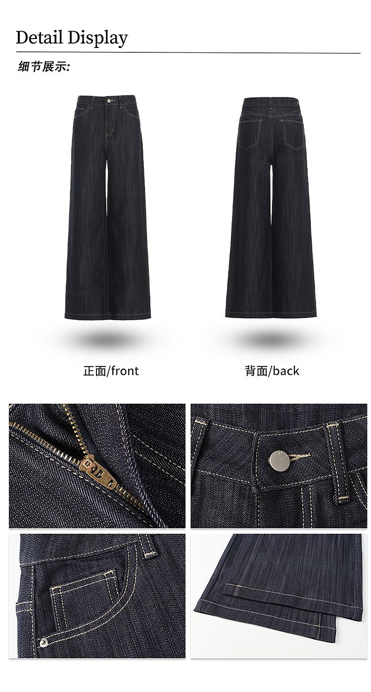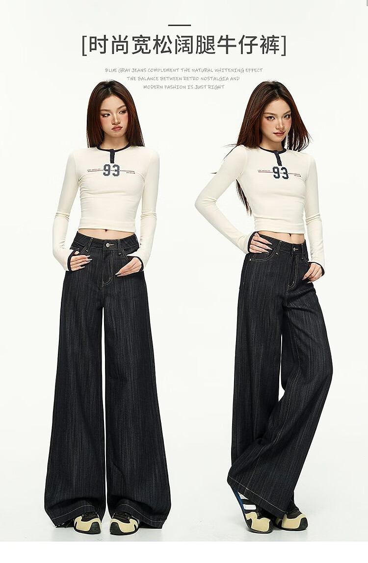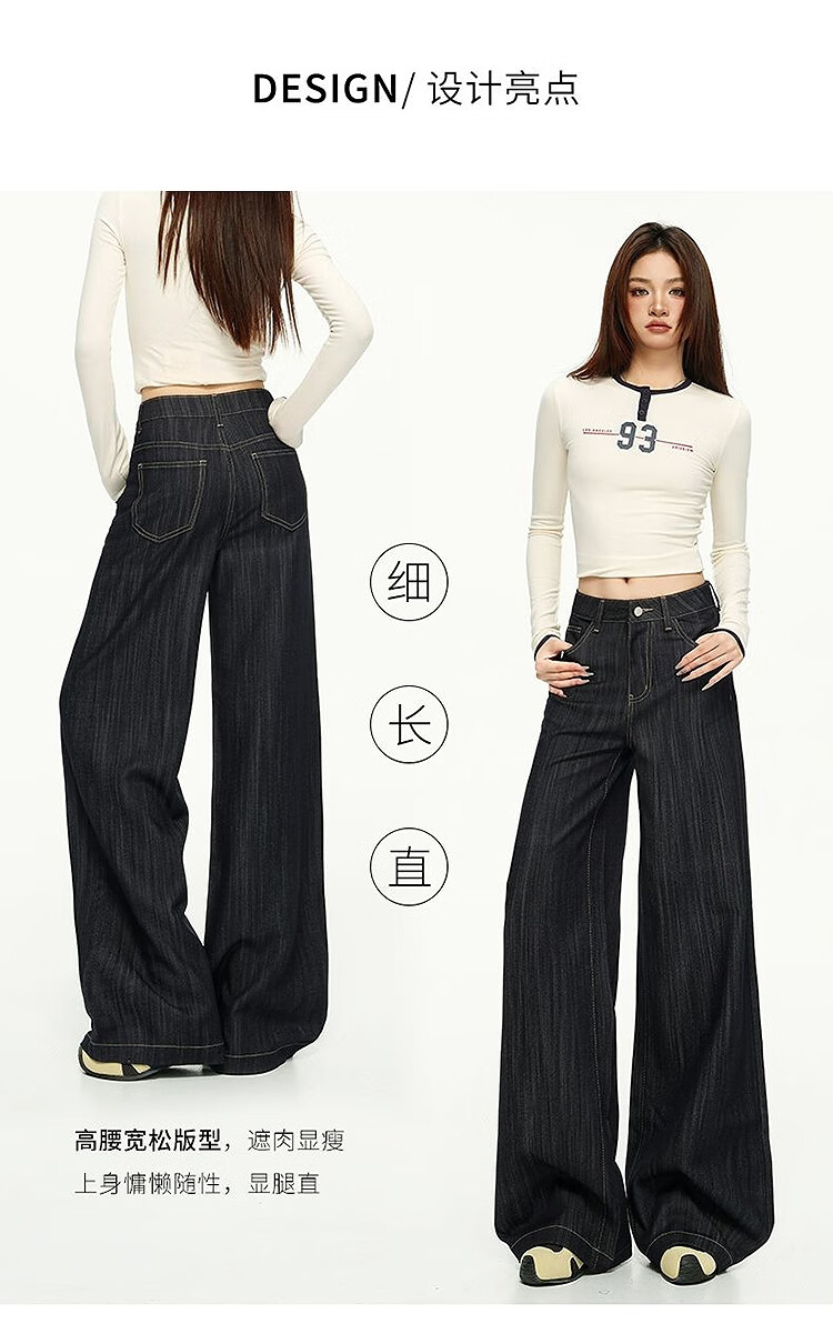西遇宽松阔腿牛仔裤女2025年秋季新款松弛感复古高腰拖地直筒裤 深蓝色 (预售15天) S (26)