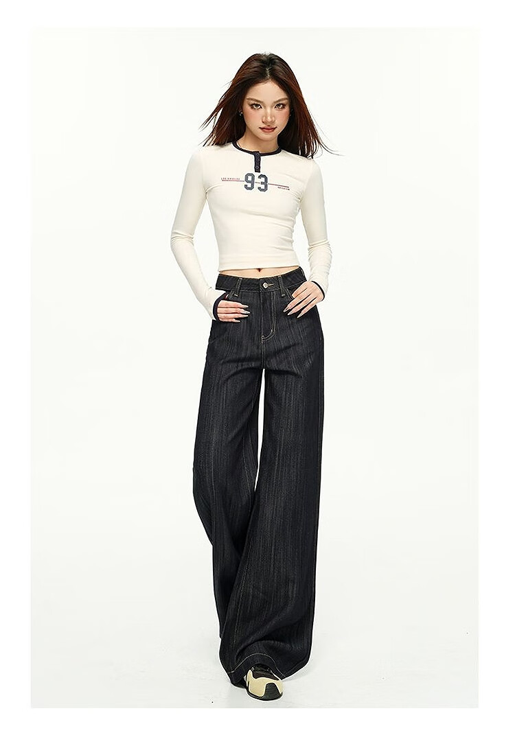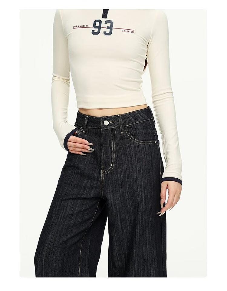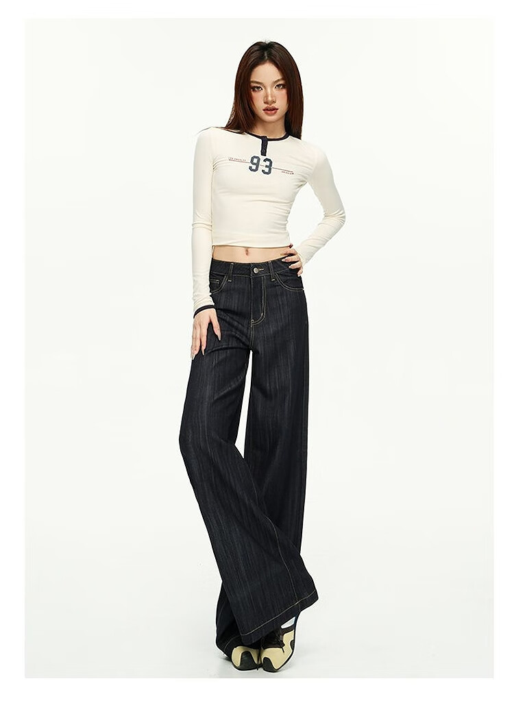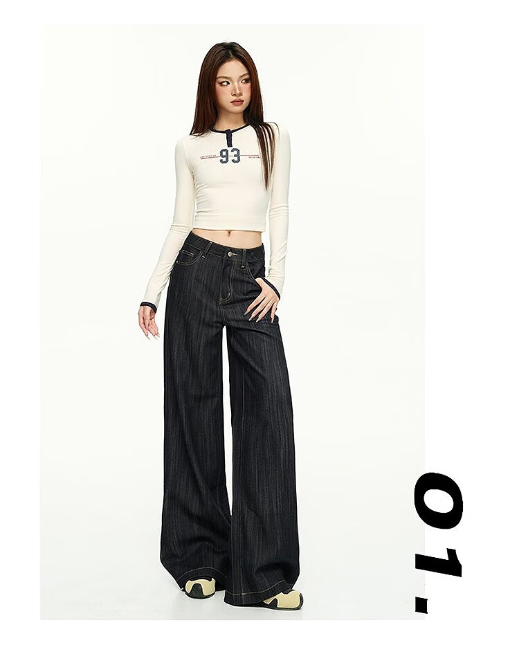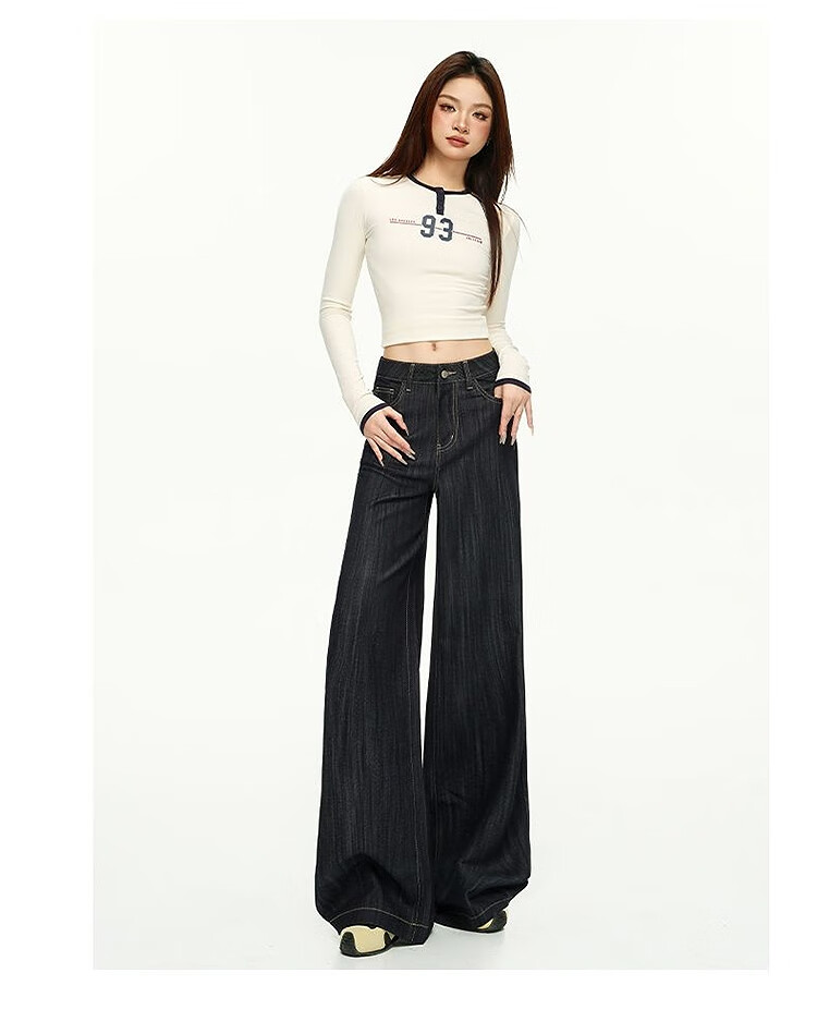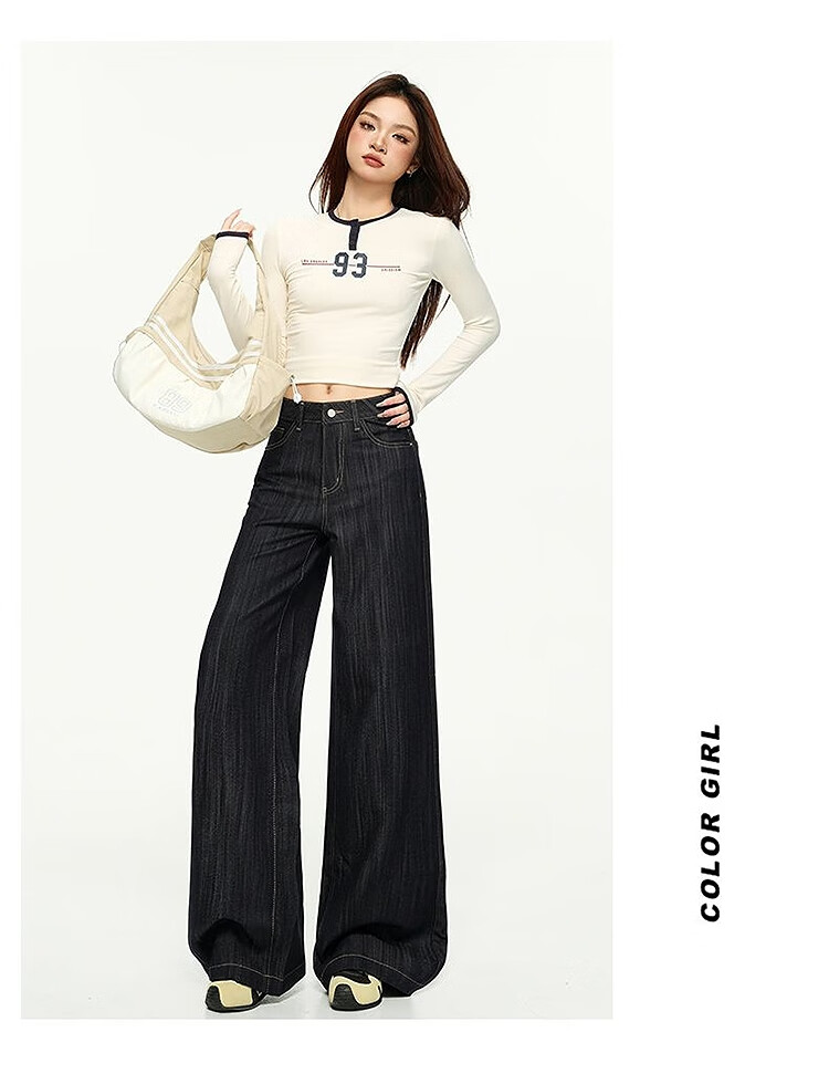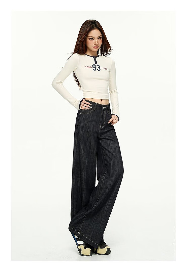 西遇宽松阔腿牛仔裤女2025年秋季新款松弛感复古高腰拖地直筒裤 深蓝色 (预售15天) S (26)