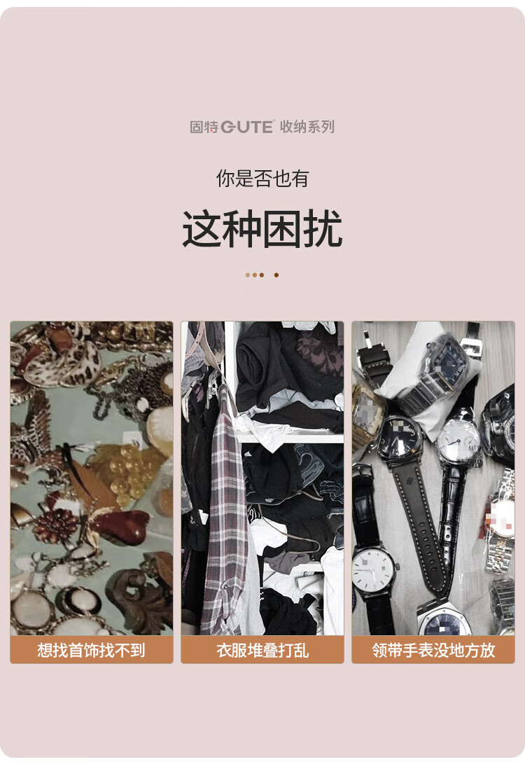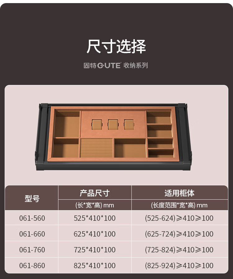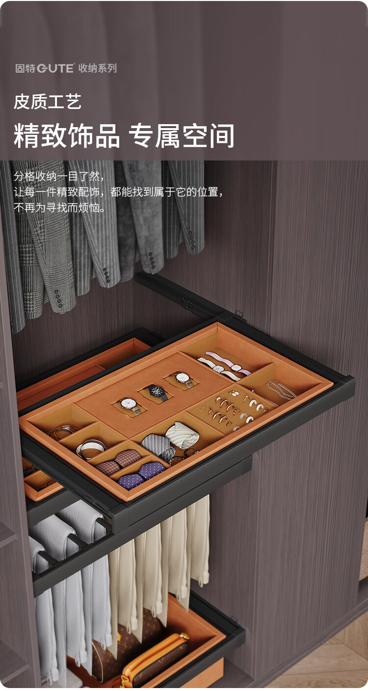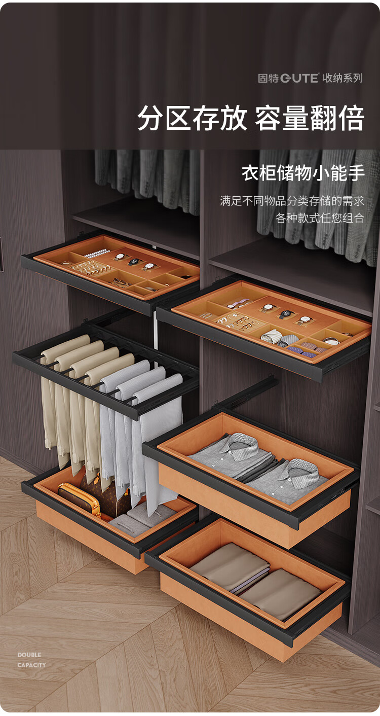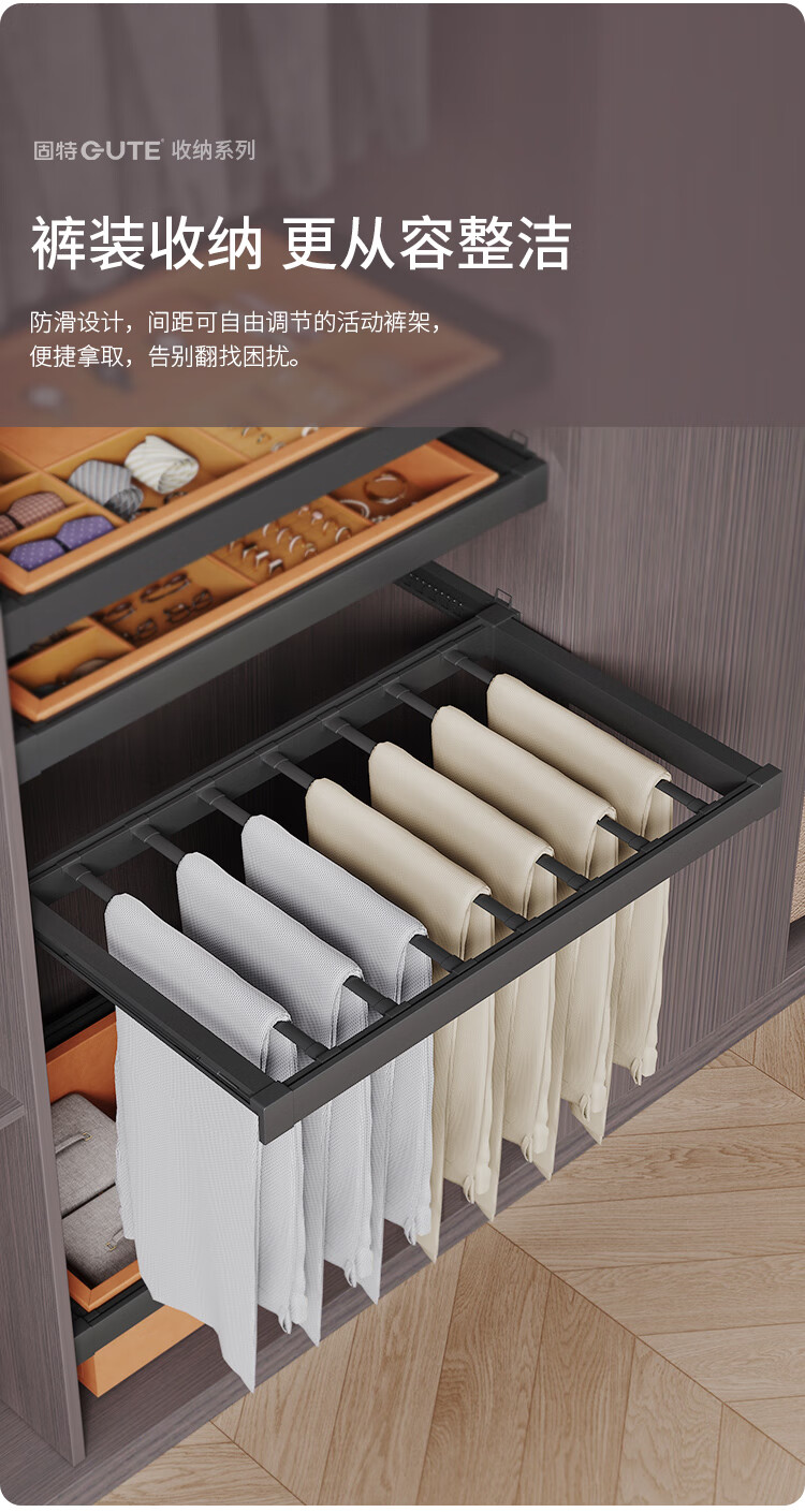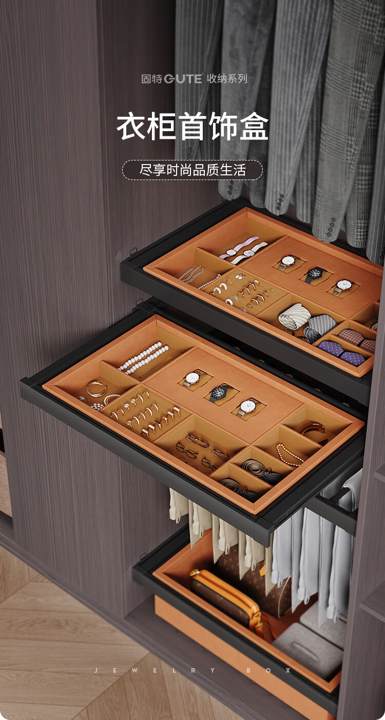 固特(GUTE)裤架抽拉伸缩架衣柜首饰盒阻尼缓冲多功能储物收纳盒篮子多宝盒子 首饰盒560柜(宽525-624)高≥100 深≥41