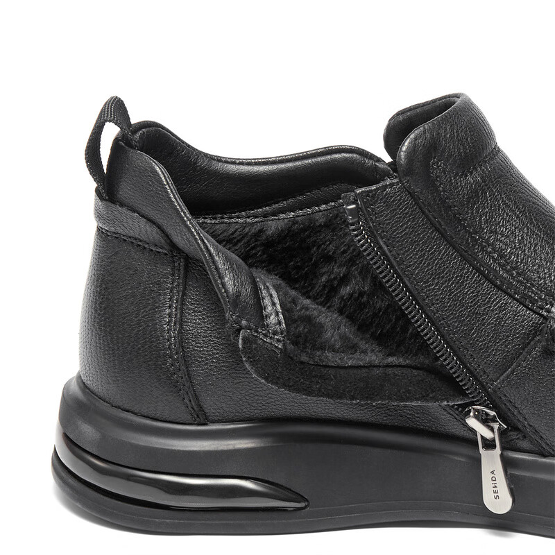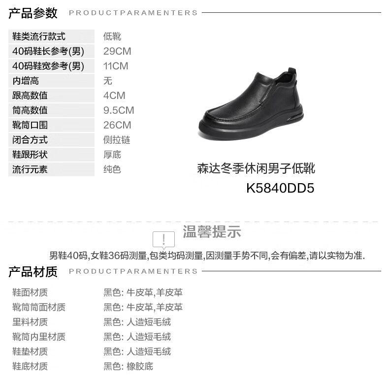 森达皮靴男2025冬季新款商场同款简约户外舒适短靴K5840DD5 黑色 38