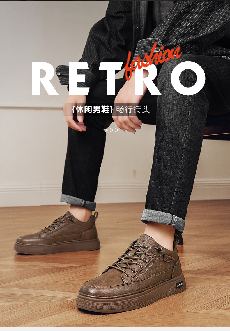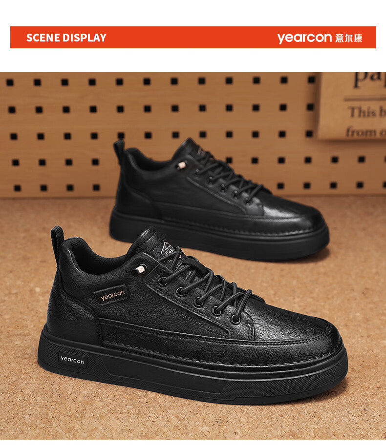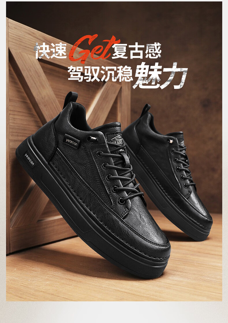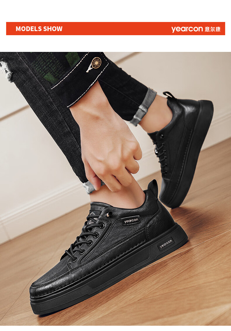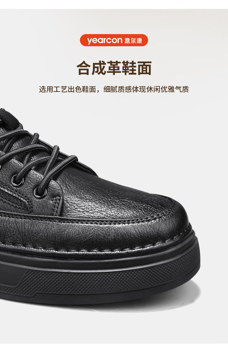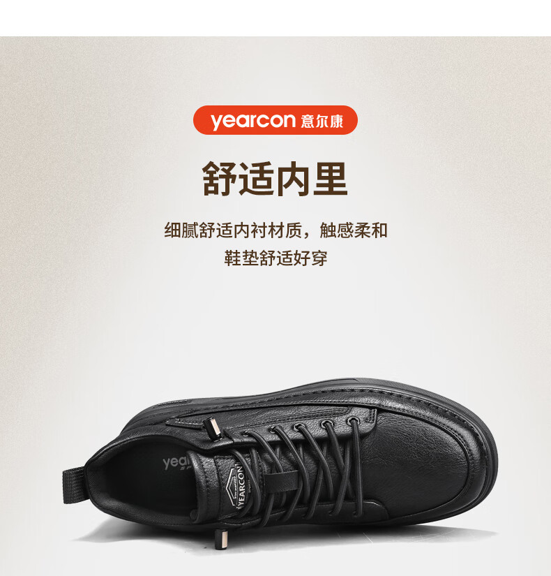 意尔康男士秋季新款经典复古简约板鞋皮面商务轻便气质男鞋