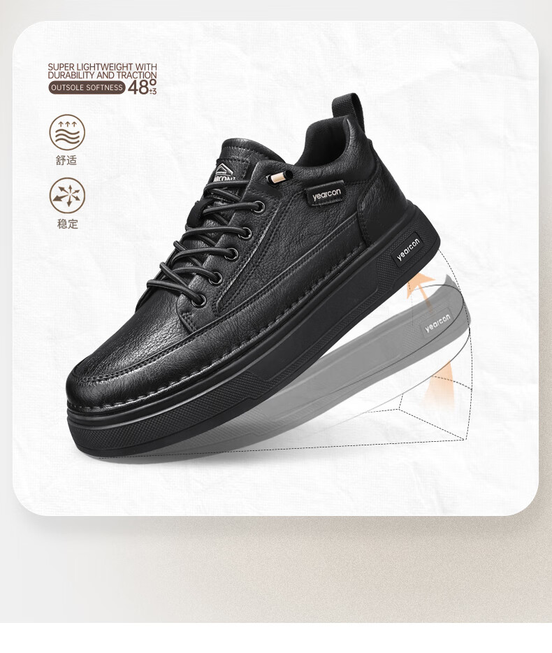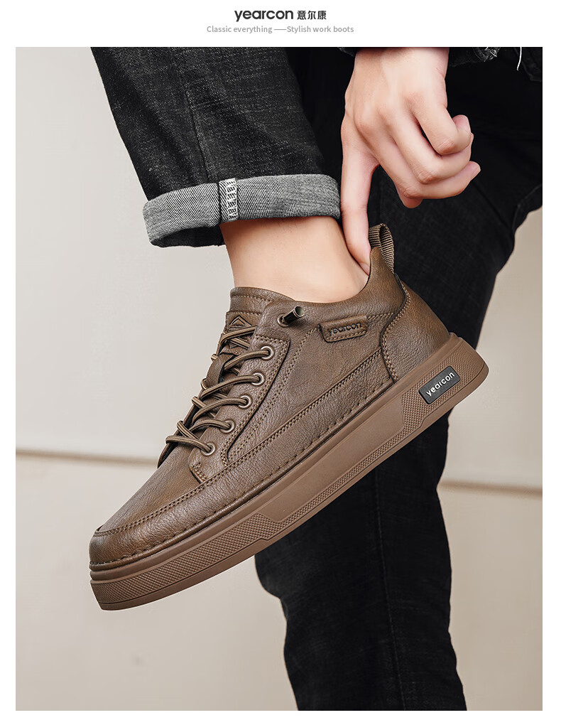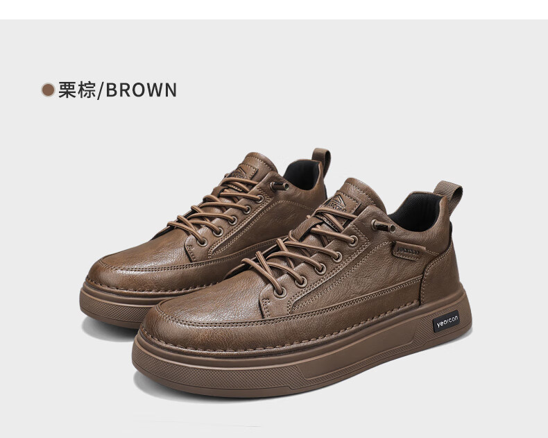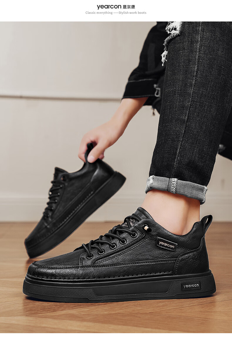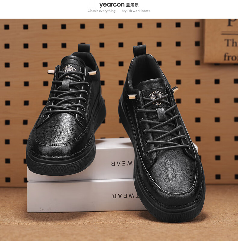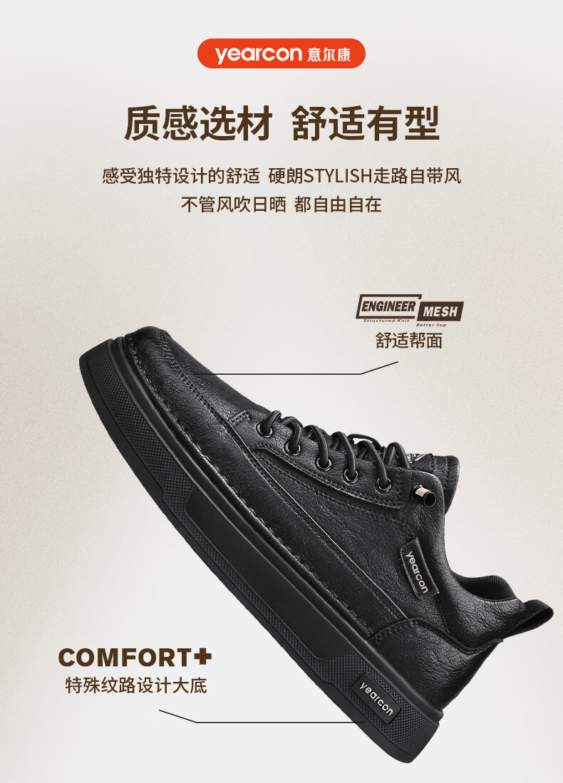 意尔康男士秋季新款经典复古简约板鞋皮面商务轻便气质男鞋