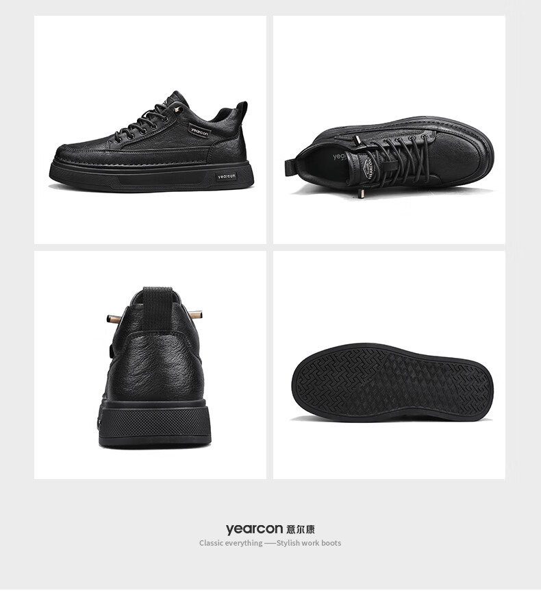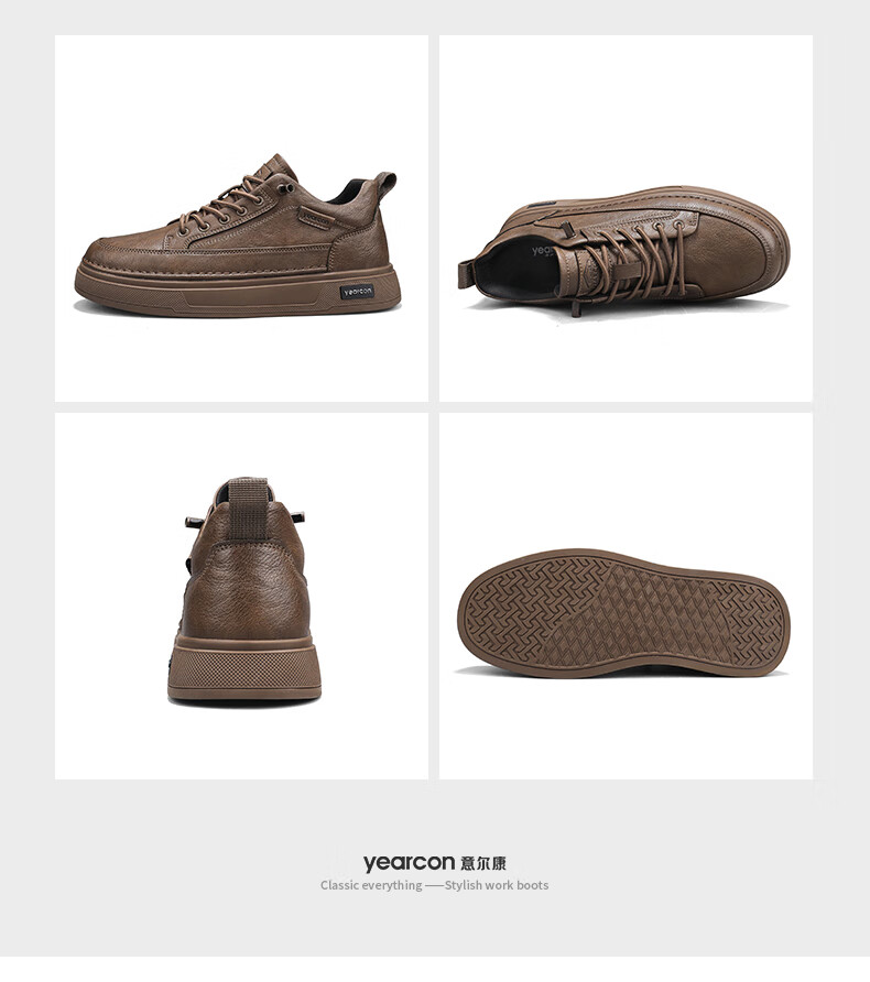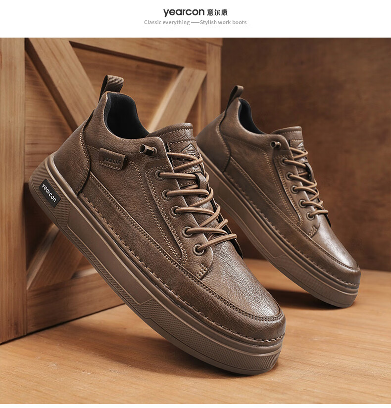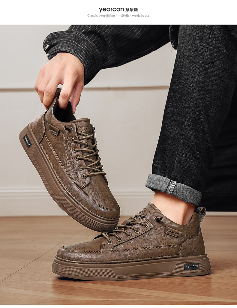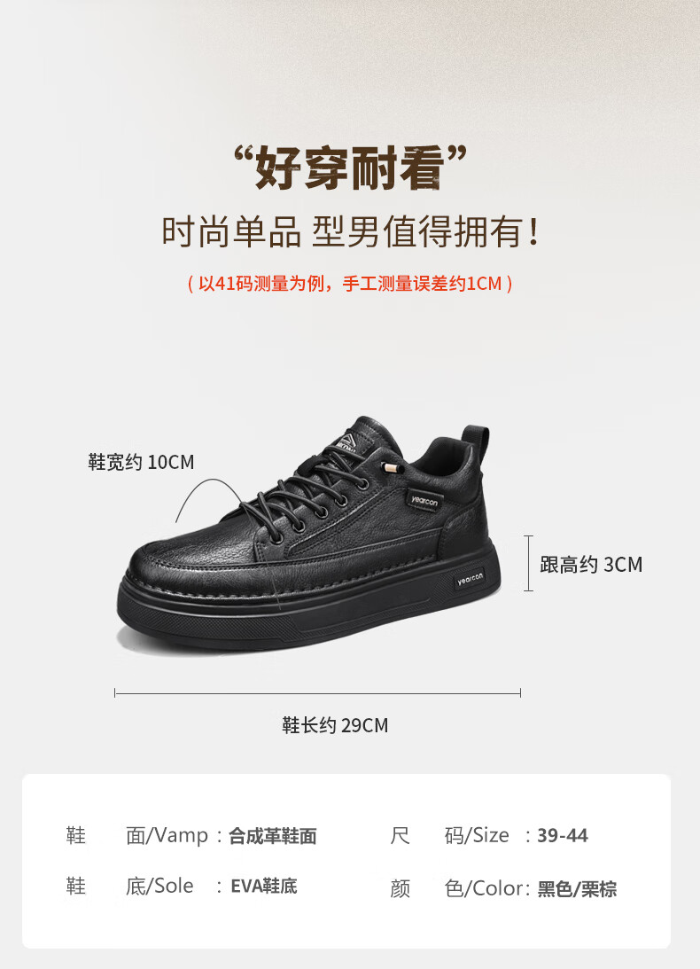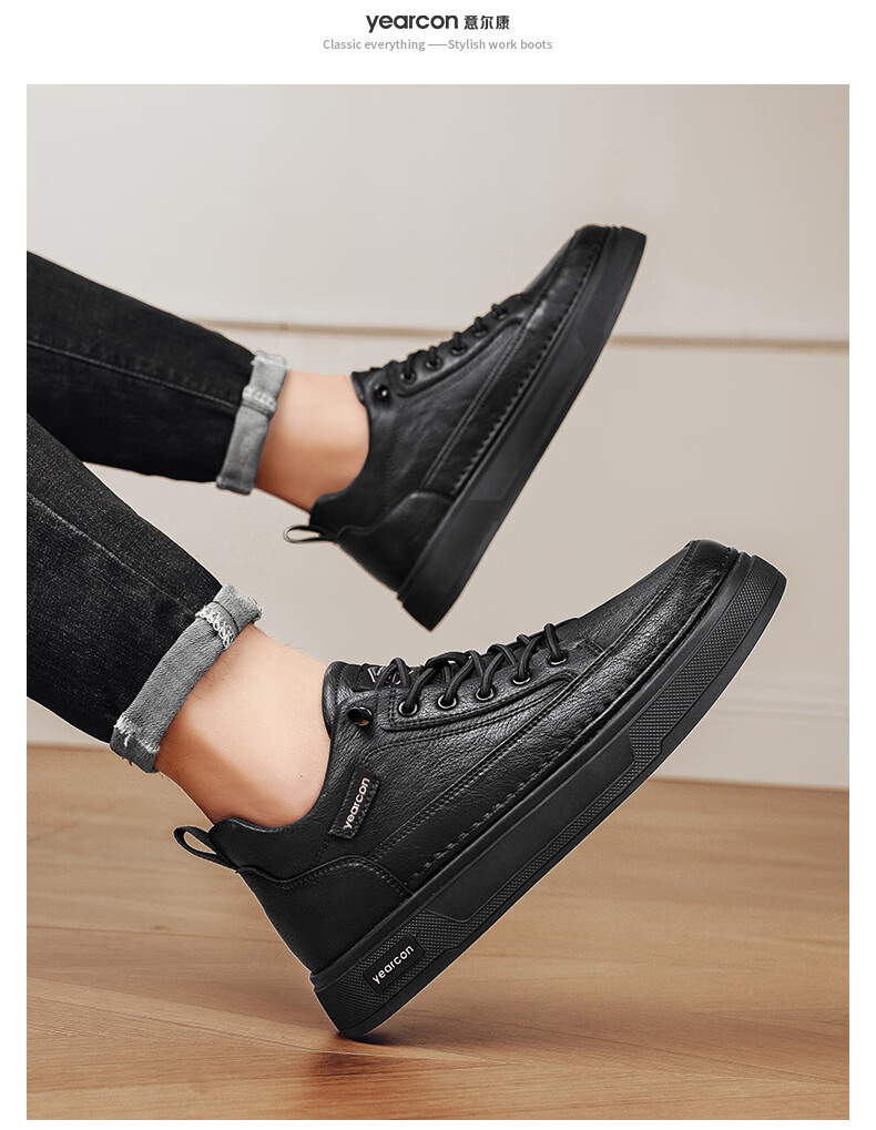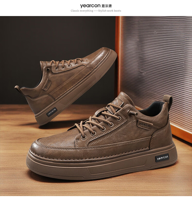 意尔康男士秋季新款经典复古简约板鞋皮面商务轻便气质男鞋