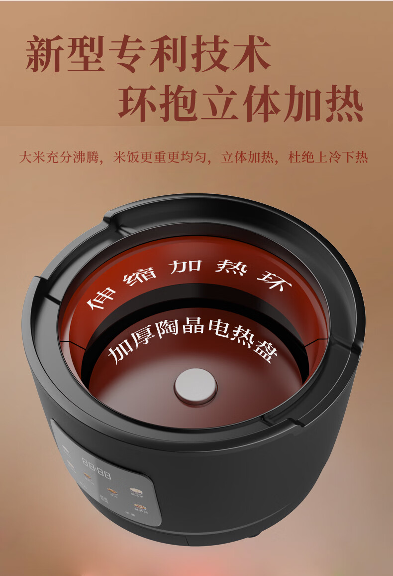 新创埼0涂层天然紫砂锅电饭煲家用多功能柴火饭煲仔饭砂锅3L煮粥煲汤无涂层电饭锅预约定时无水炖肉3L 黑色 3L 双套胆 (共:真紫砂内胆2个+真紫砂盖4个)