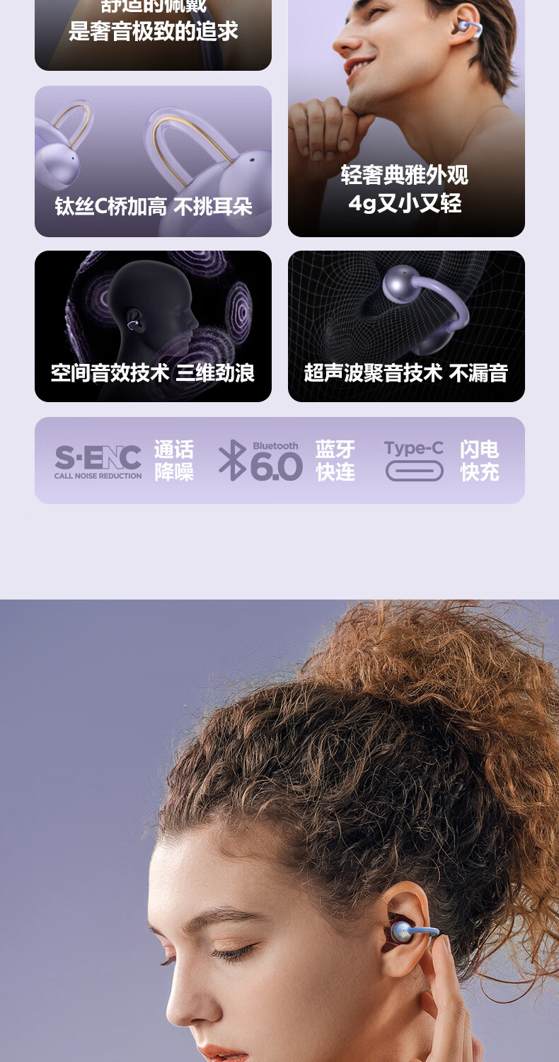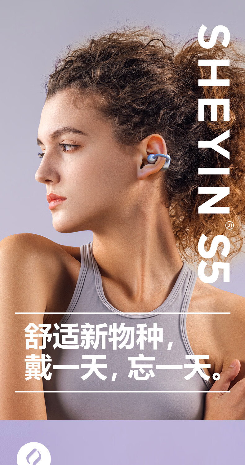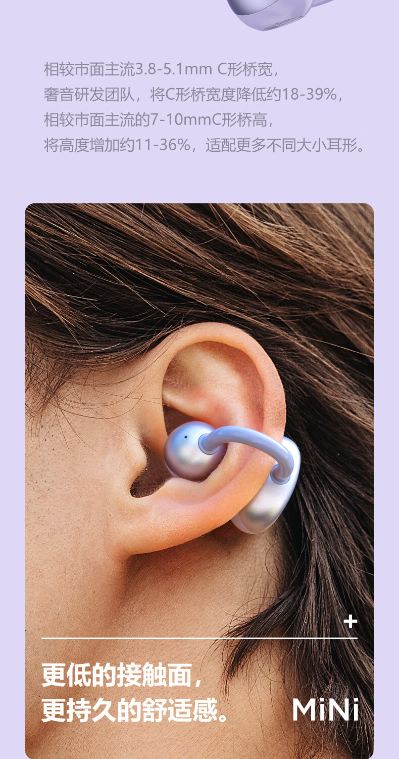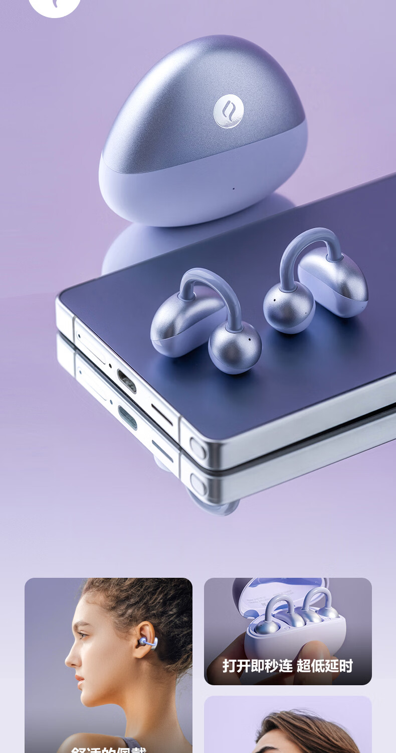 奢音(SHEYIN)S5耳夹式蓝牙耳机开放式气传导概念不入耳挂耳式运动通话久戴不痛适用于苹果华为手机 流光紫
