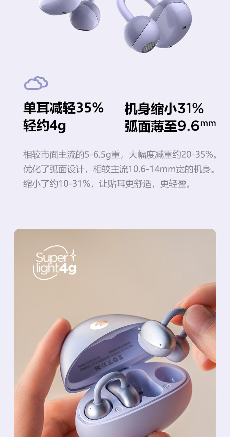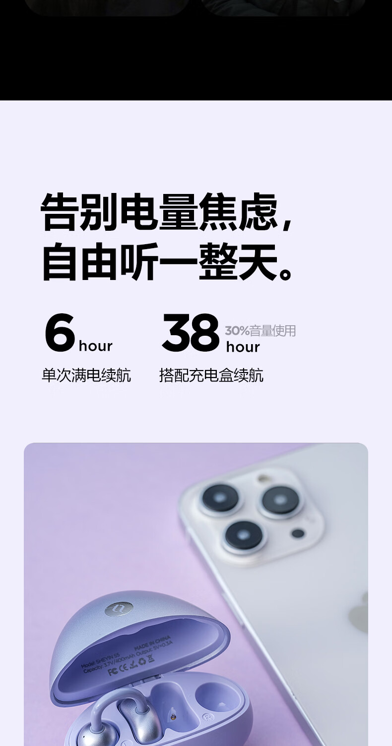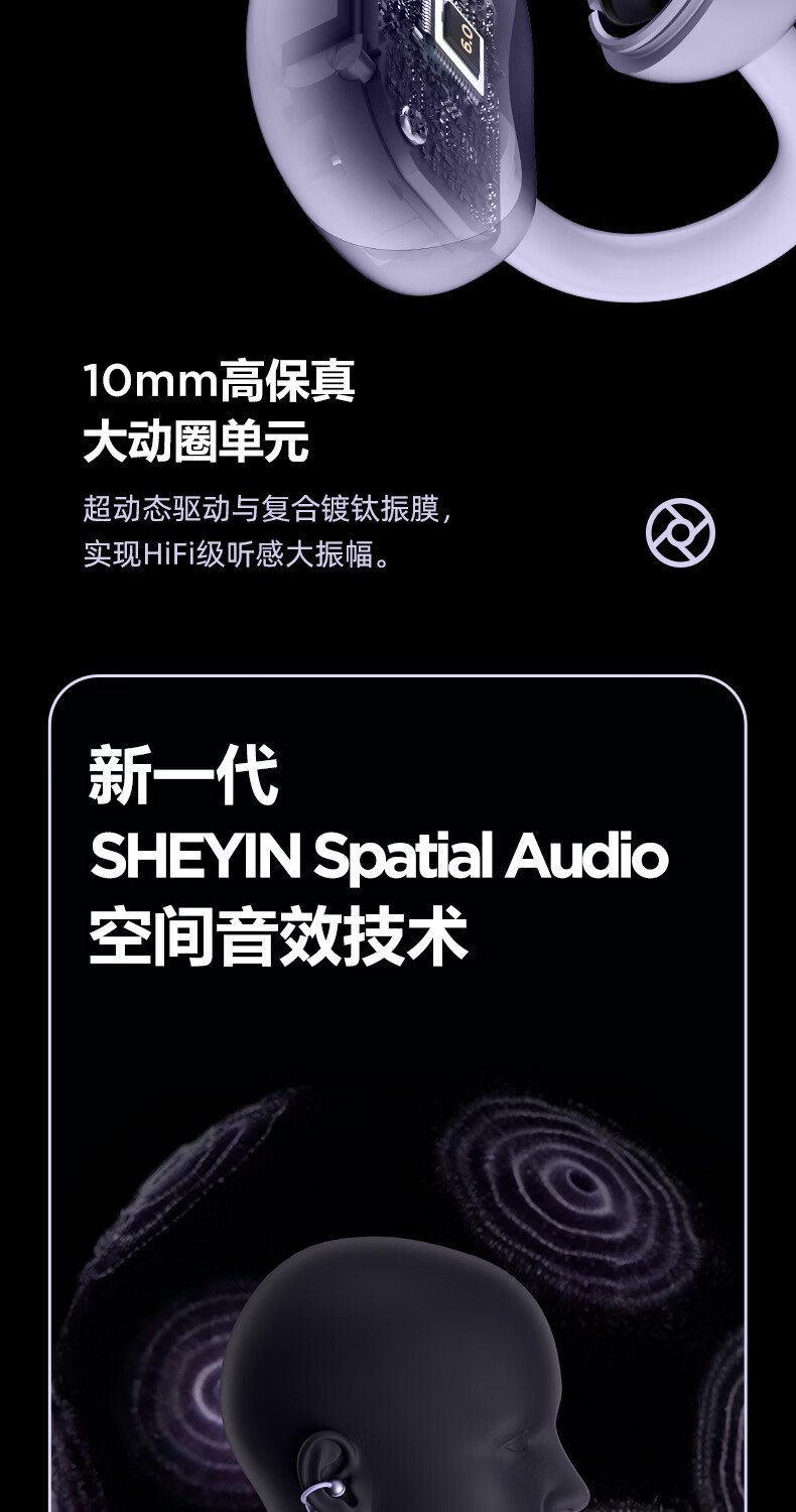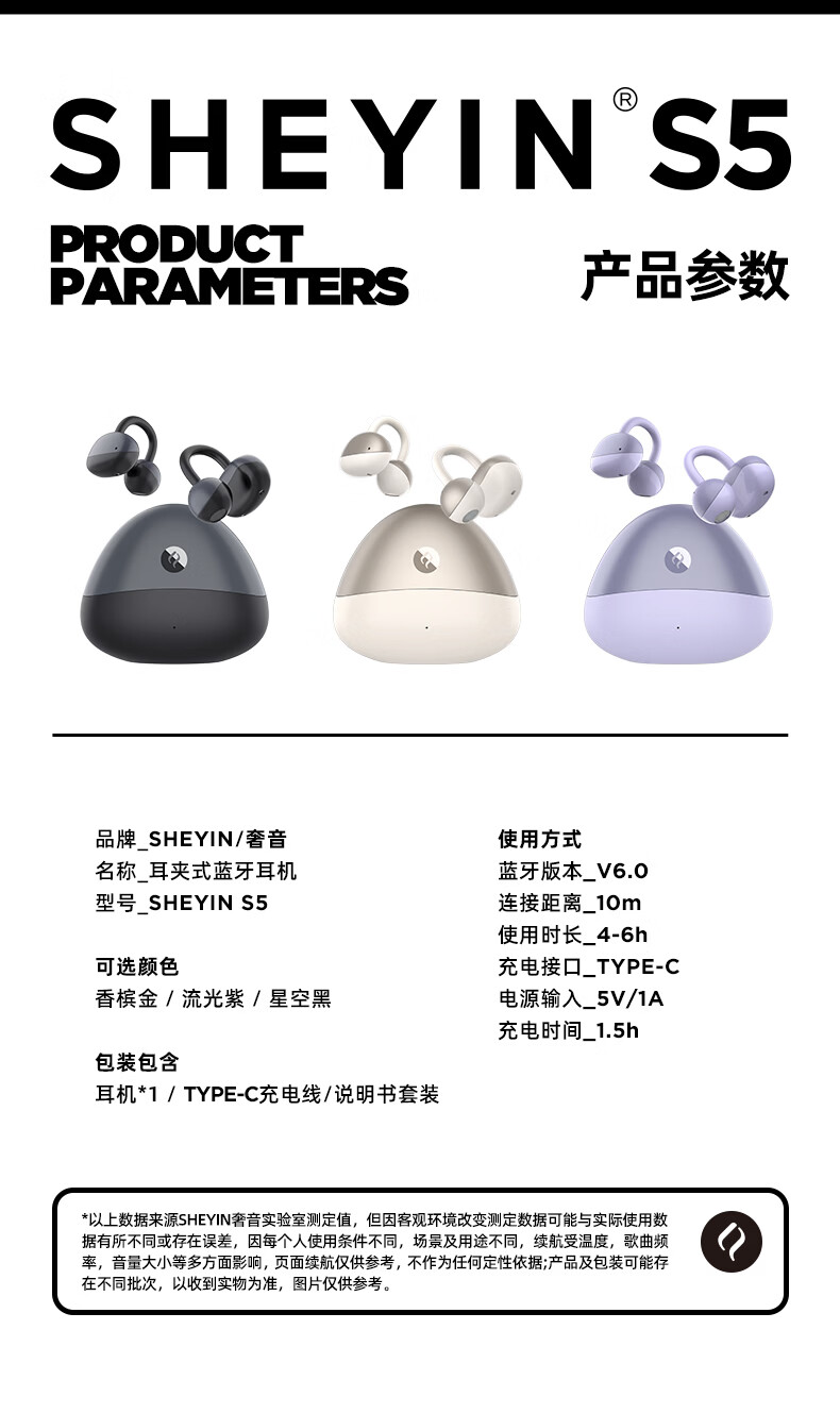 奢音(SHEYIN)S5耳夹式蓝牙耳机开放式气传导概念不入耳挂耳式运动通话久戴不痛适用于苹果华为手机 流光紫