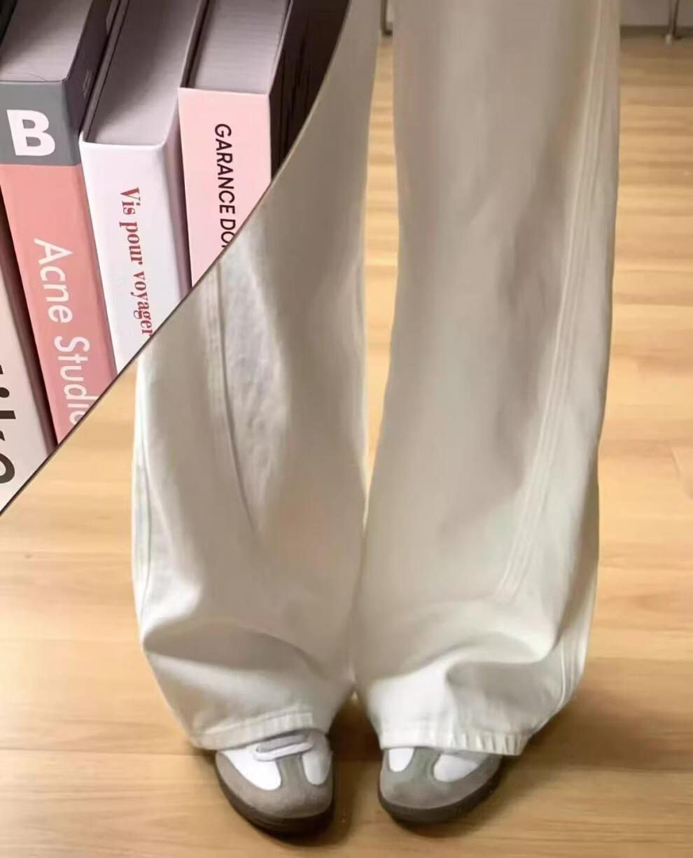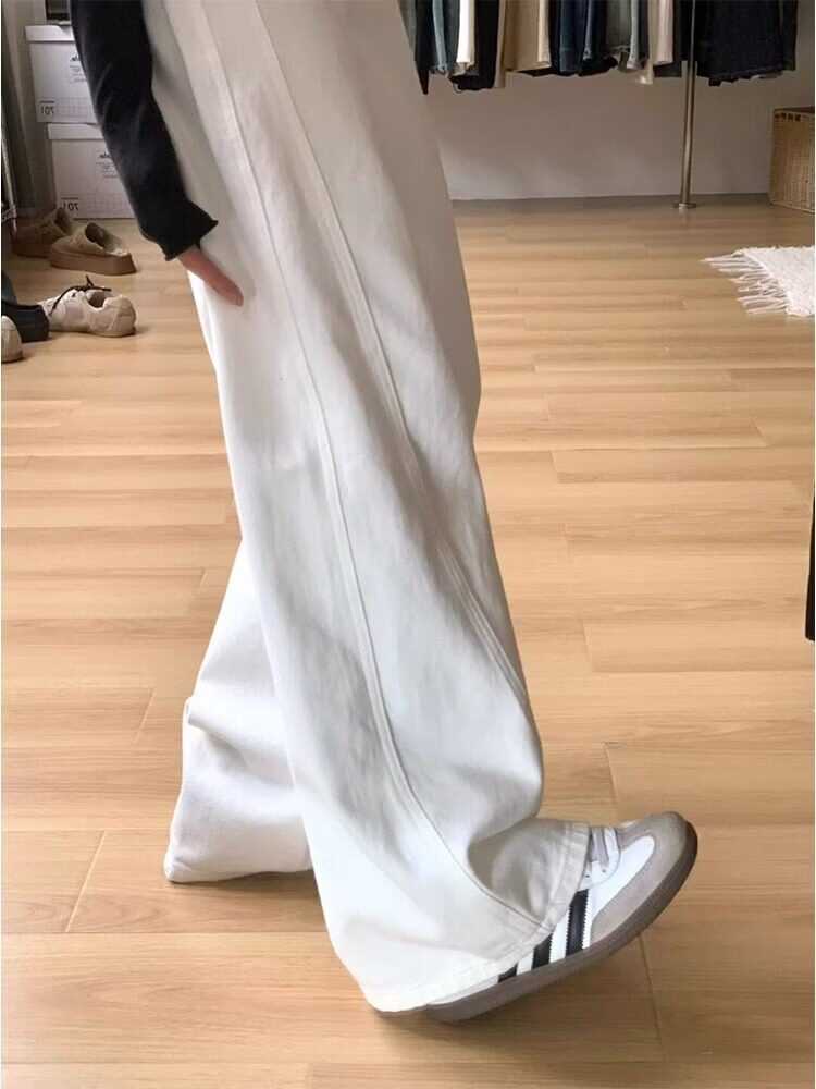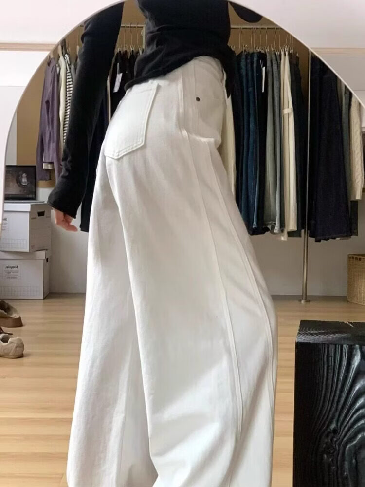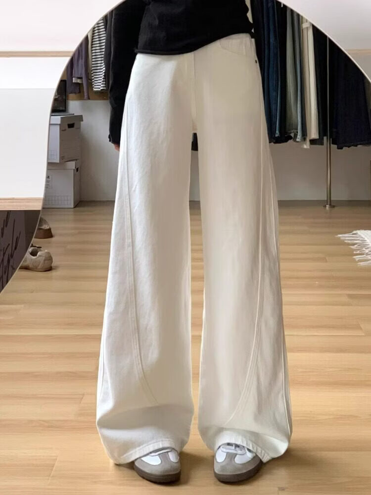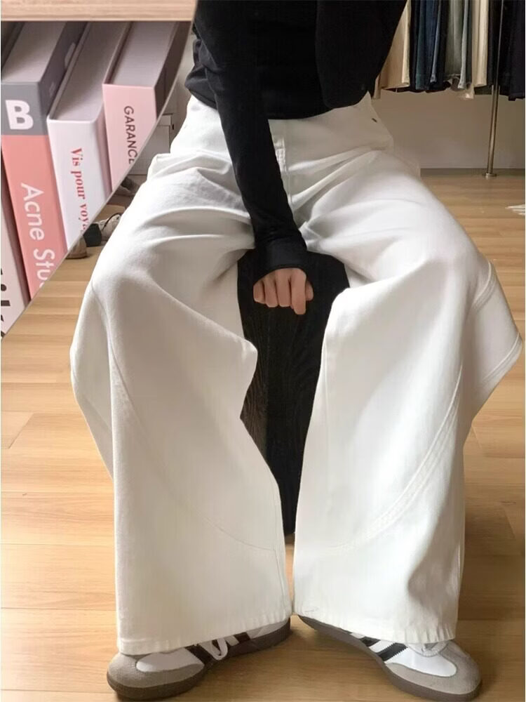 MODX大码弯刀裤白色高腰牛仔裤女2026春季新款胖宽松垂感直筒阔腿裤 白色 S