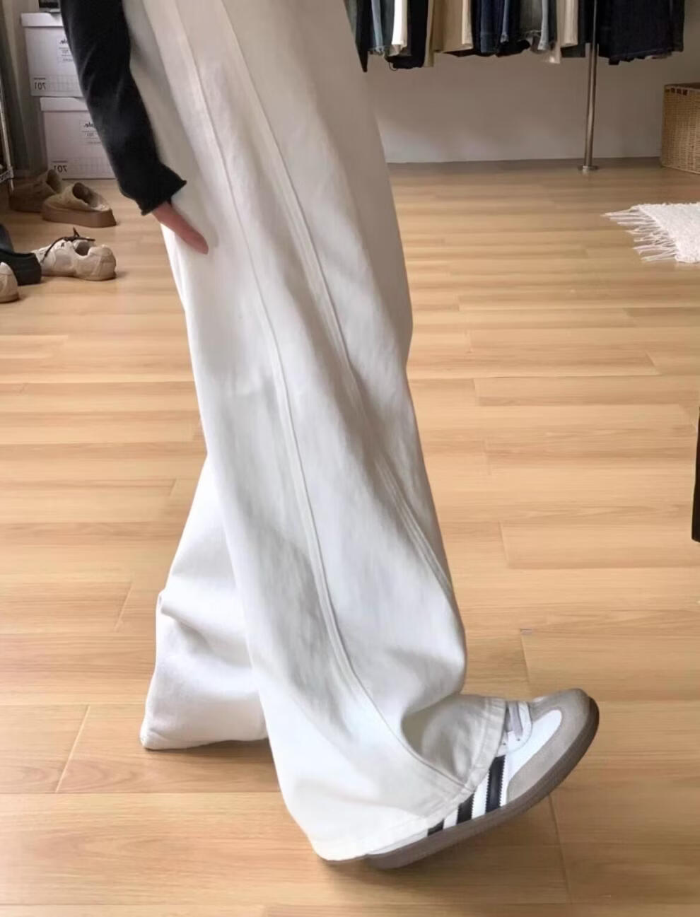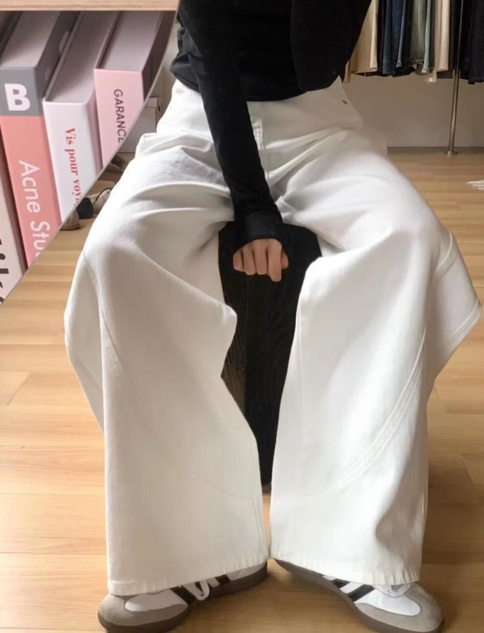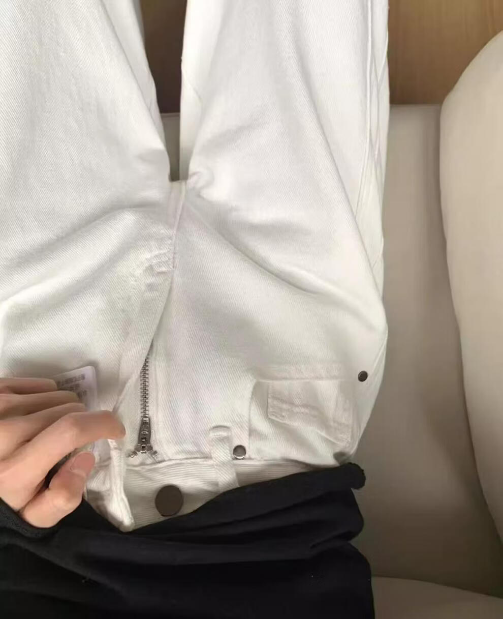 MODX大码弯刀裤白色高腰牛仔裤女2026春季新款胖宽松垂感直筒阔腿裤 白色 S