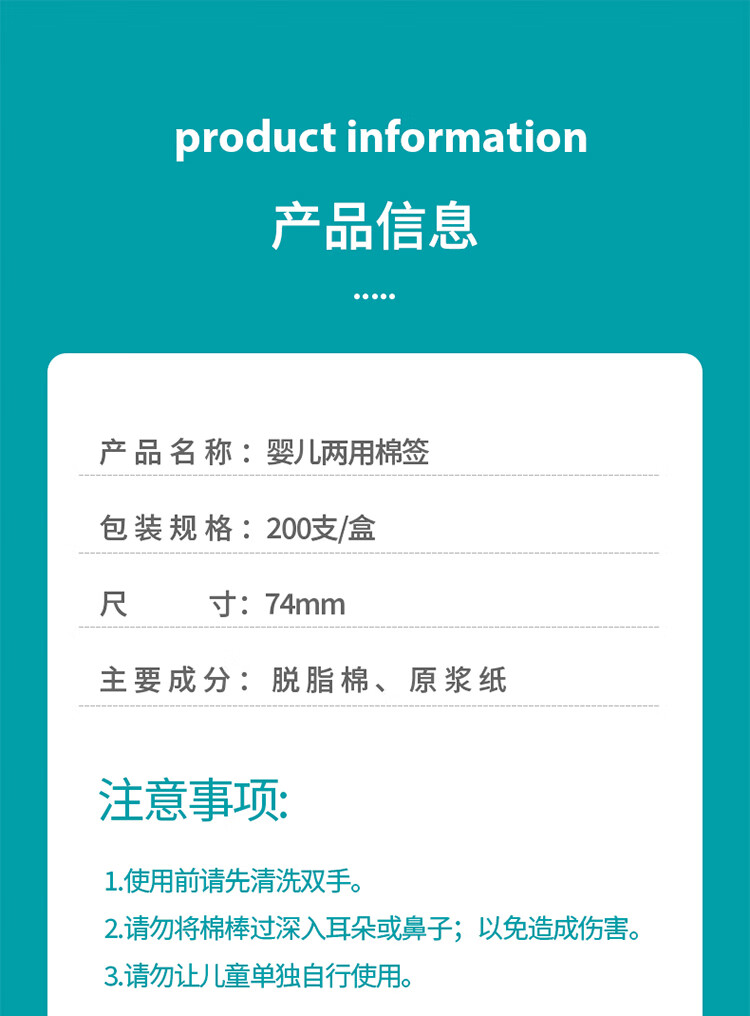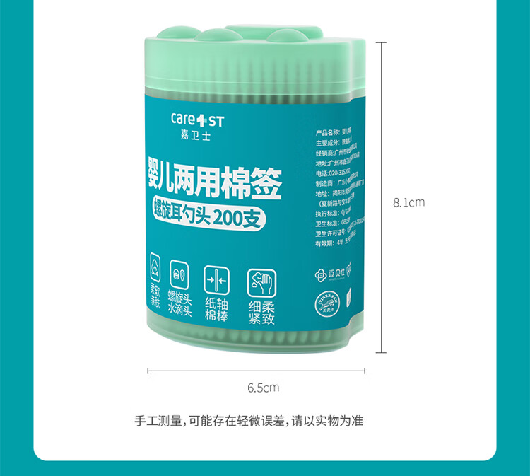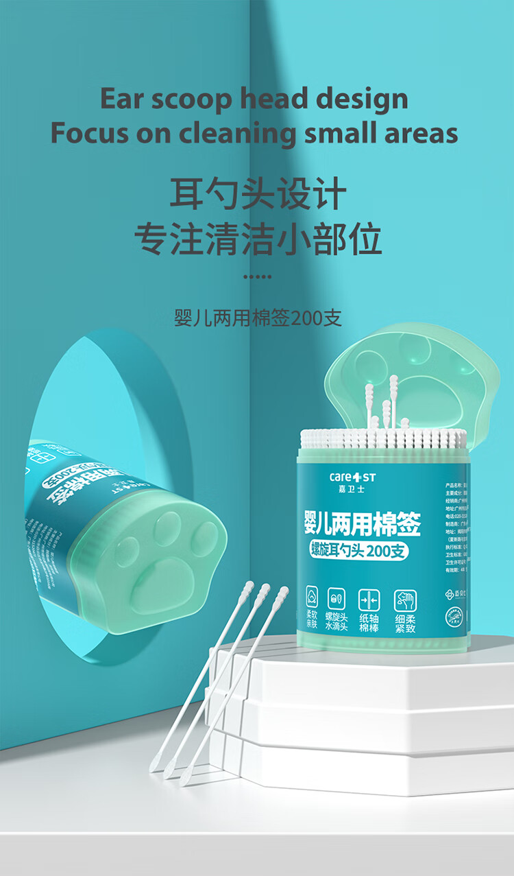 Care1st婴儿两用棉签 耳勺双头新生儿清洁细轴棉棒宝宝专用200支