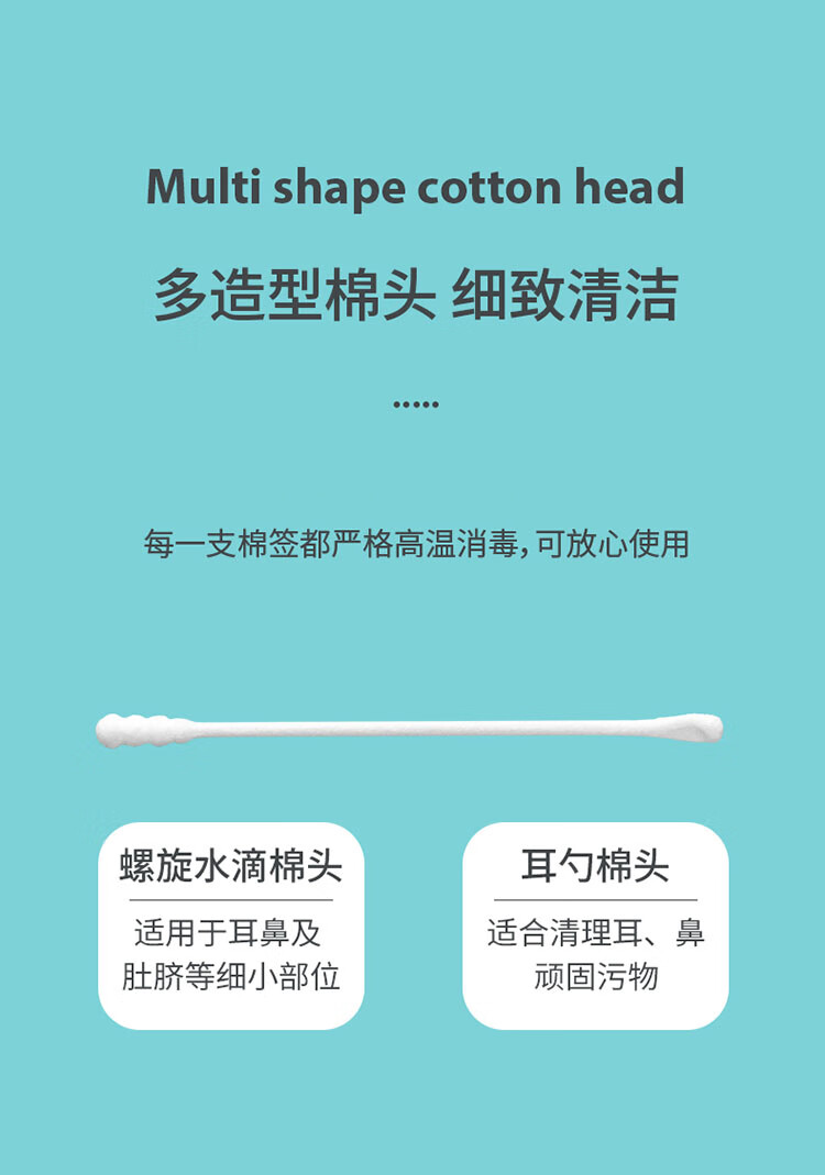 Care1st婴儿棉签800支一次性棉签耳勺头两用宝宝超细棉棒鼻屎掏耳朵肚脐