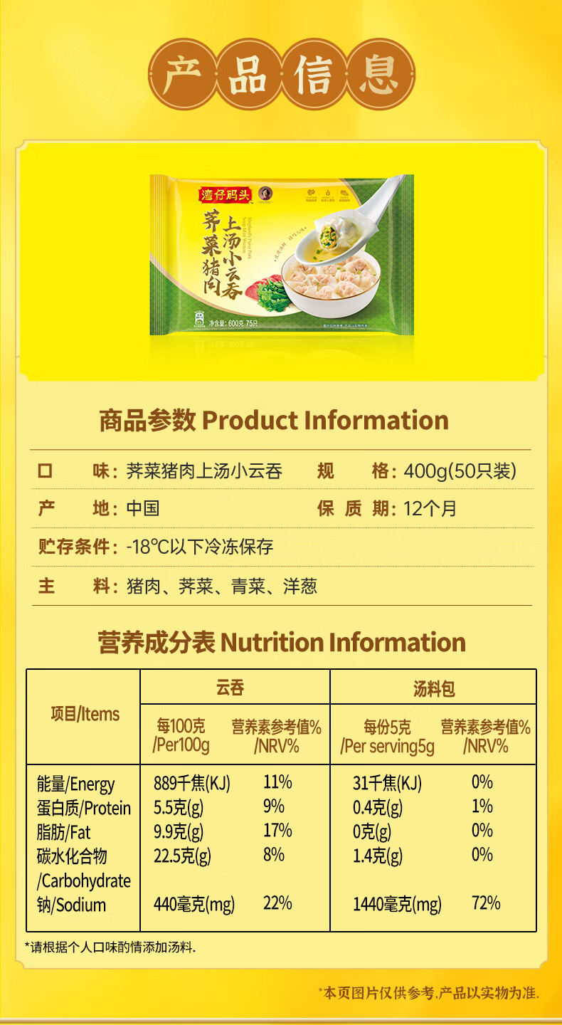 湾仔码头上汤小云吞荠菜猪肉600g75只馄饨早餐夜宵速食冷冻混沌