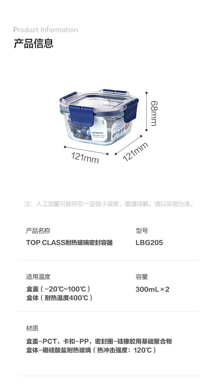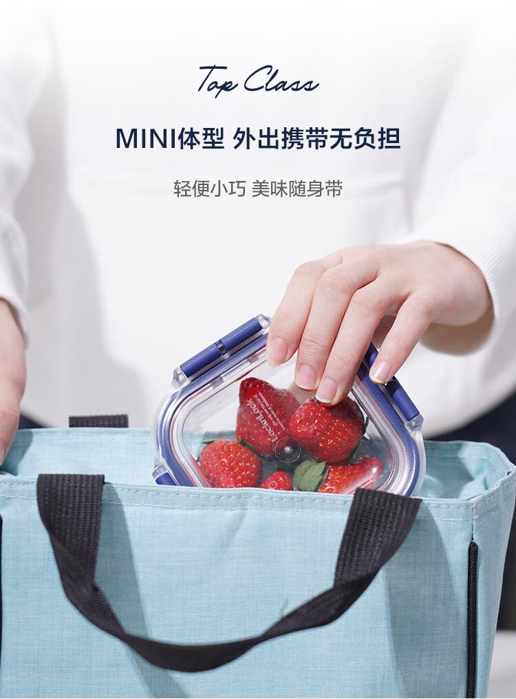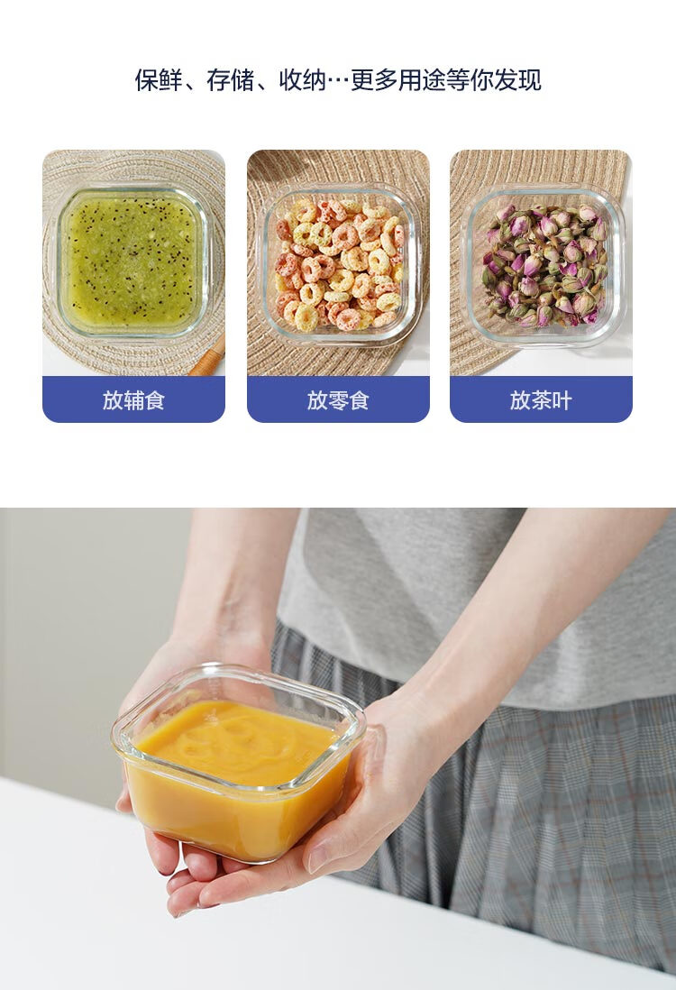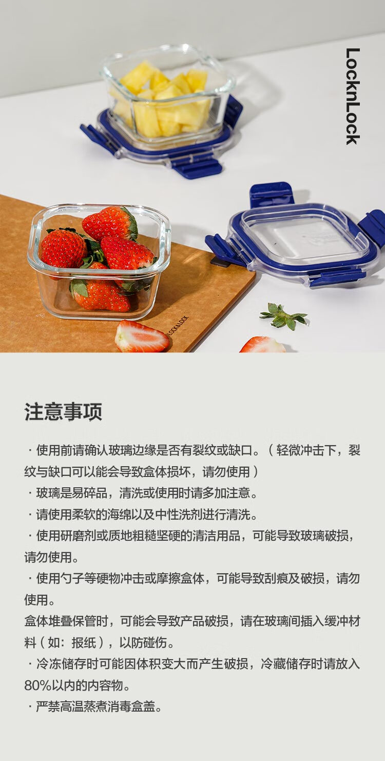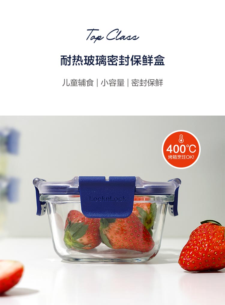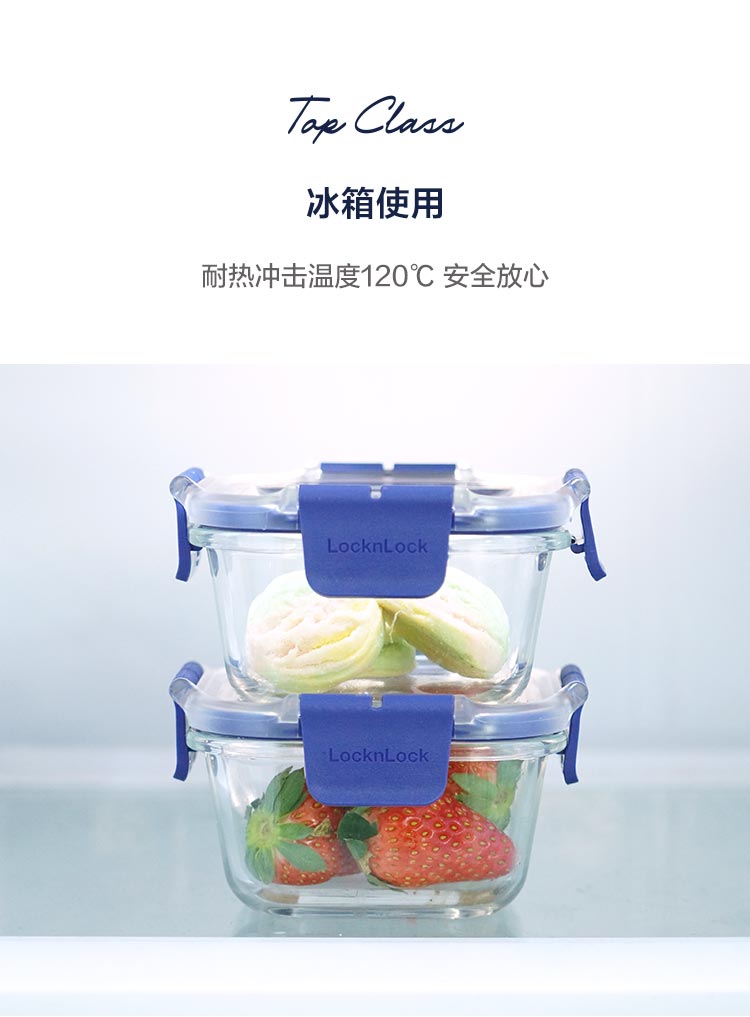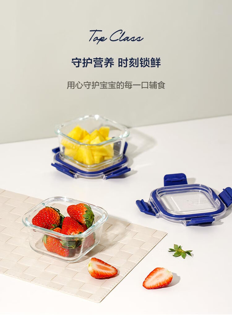 乐扣乐扣(LOCK&LOCK)婴儿耐热玻璃辅食盒宝宝儿童辅食碗可冷冻保鲜盒300ML*2蓝色方形