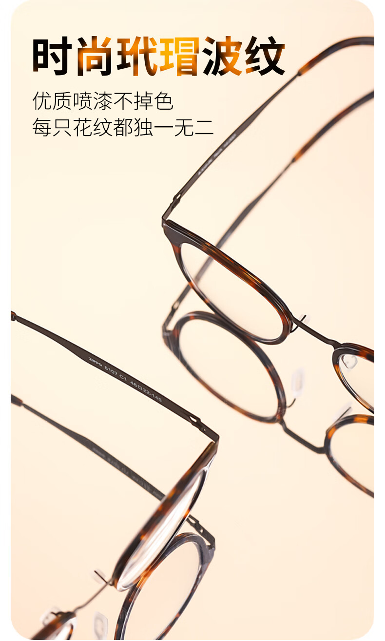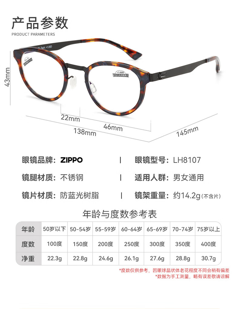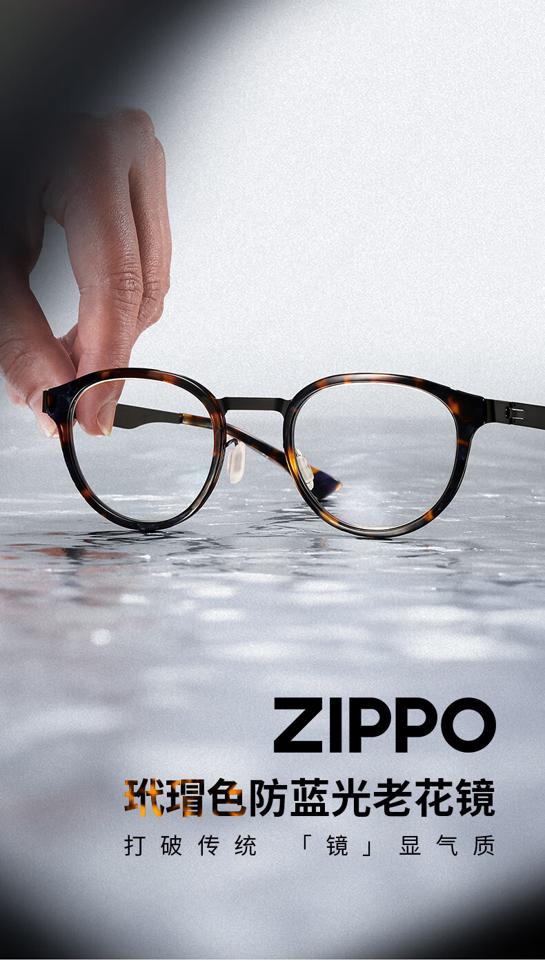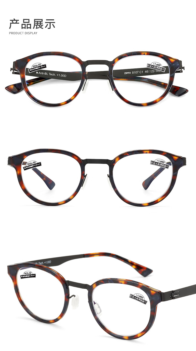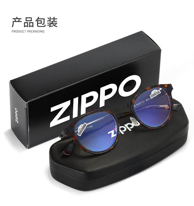 ZIPPO美国高清防蓝光老花镜进口镜片超轻复古圆框耐用男女8107 200度