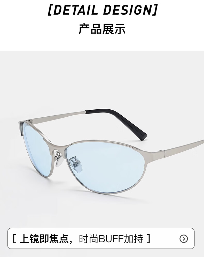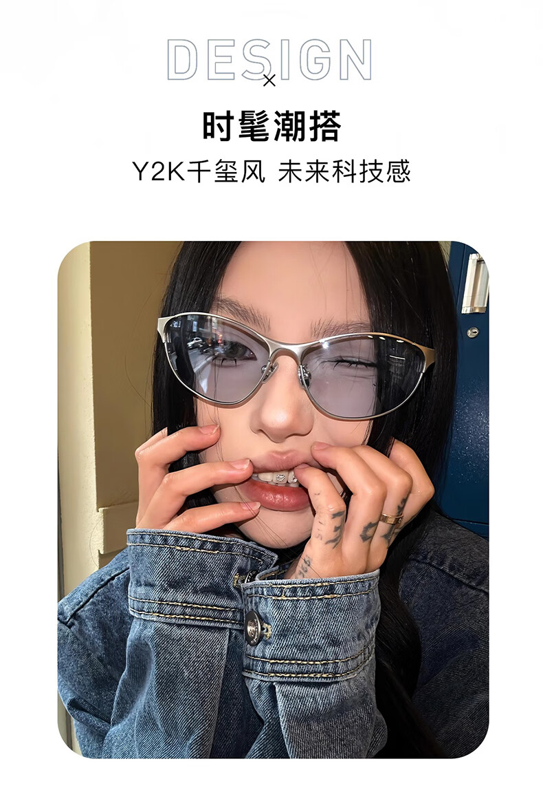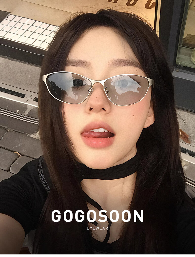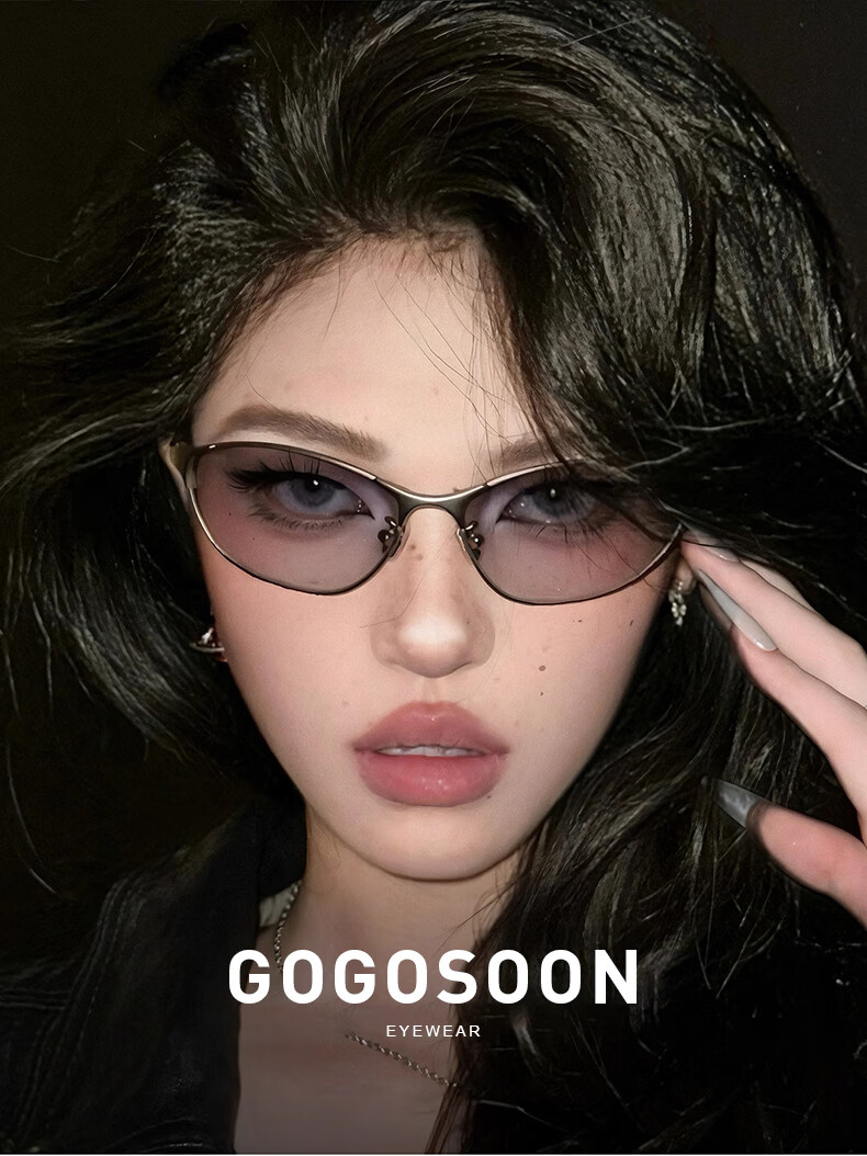 GOGOSOON新款Y2k复古猫眼高级感金属墨镜女未来骑行感防晒紫外线太阳眼镜